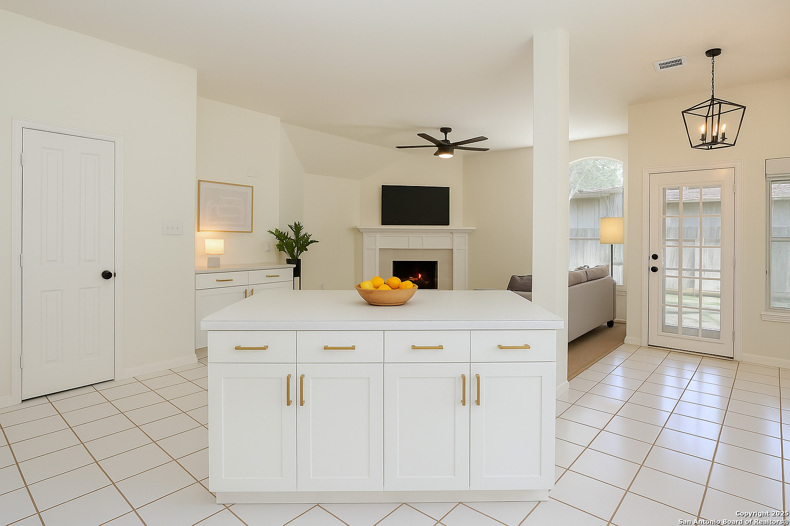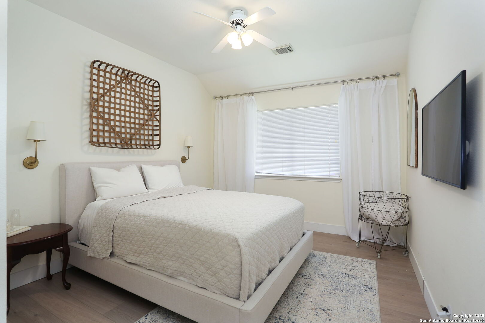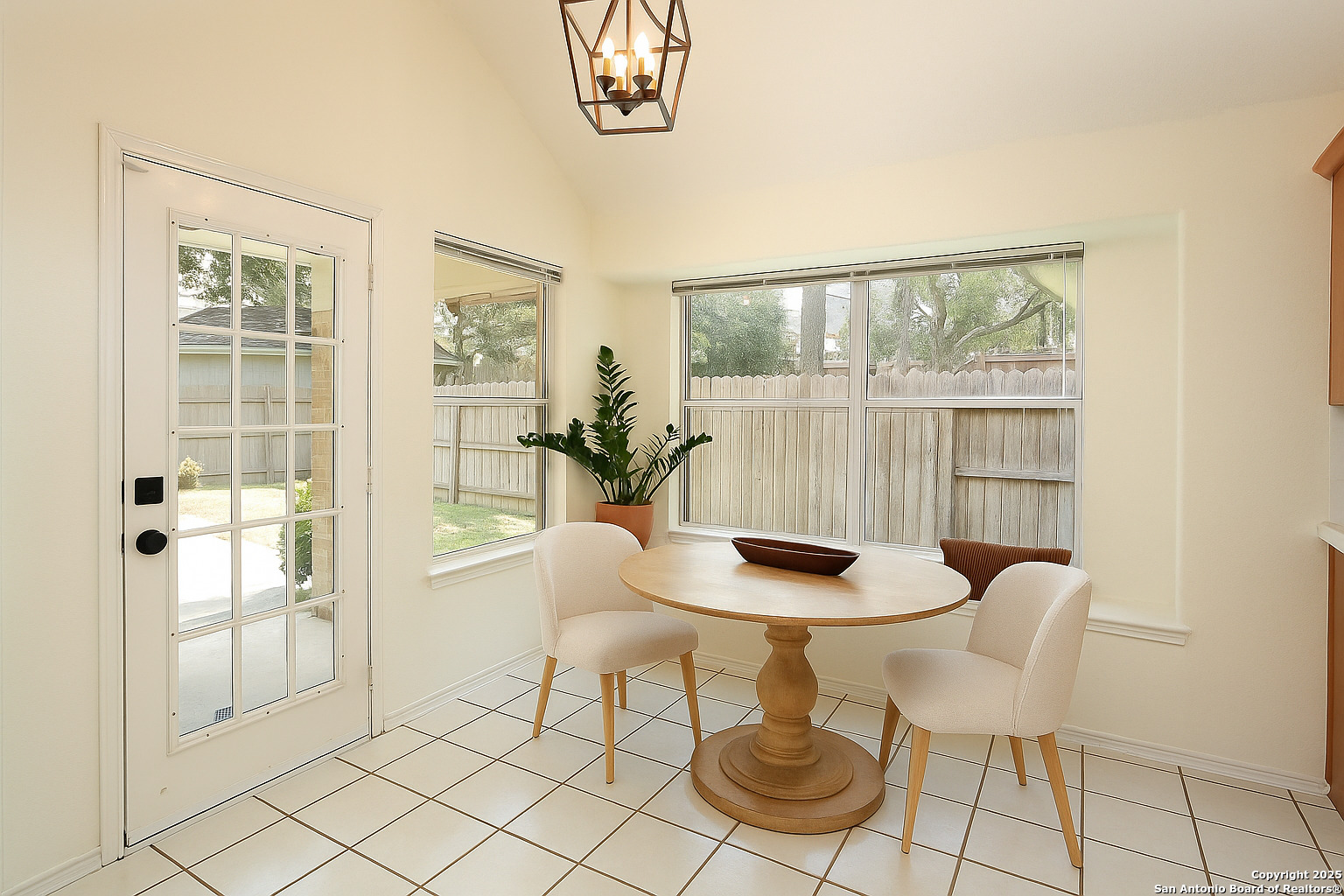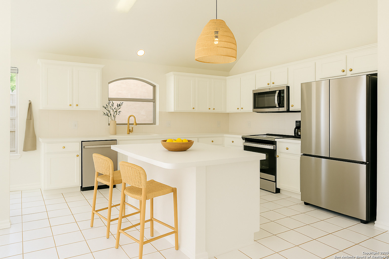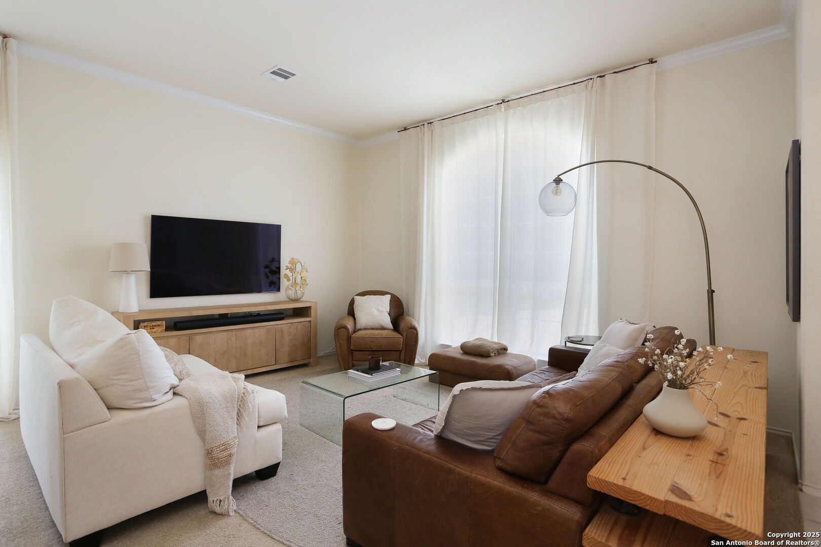 SELLER OFFERING $10K ALLOWANCE FOR UPDATES/RATE BUY DOWN. Beautifully maintained one-story in Deer Creek featuring thoughtful upgrades and major system improvements. This 3-bedroom, 2-bath home offers 2,124 sq ft of living space on a 0.25-acre lot with mature trees, four sides masonry, and a side-entry garage. The layout includes high ceilings, crown molding, and abundant natural light, with two living and dining areas ideal for entertaining. The open kitchen offers a center island, new appliances, and a cozy breakfast nook with window seat overlooking the backyard. The primary suite includes a sitting area, private exterior access, and a luxurious spa-style bathroom with zero-entry shower, freestanding tub, handmade cement dual-sink vanity, no-steam mirrors, and a large walk-in closet. Upgrades include a new HVAC system with upgraded ductwork, new windows, attic insulation, new city water/sewer lines, recessed lighting with dimmers, 8-ft solid core doors, updated fixtures, and a tiled guest bath. Outside, enjoy the extended covered patio, rock seating area, recent fencing, and drainage enhancements. Located near Randolph AFB, The Forum, major highways, and top SCUC ISD schools.