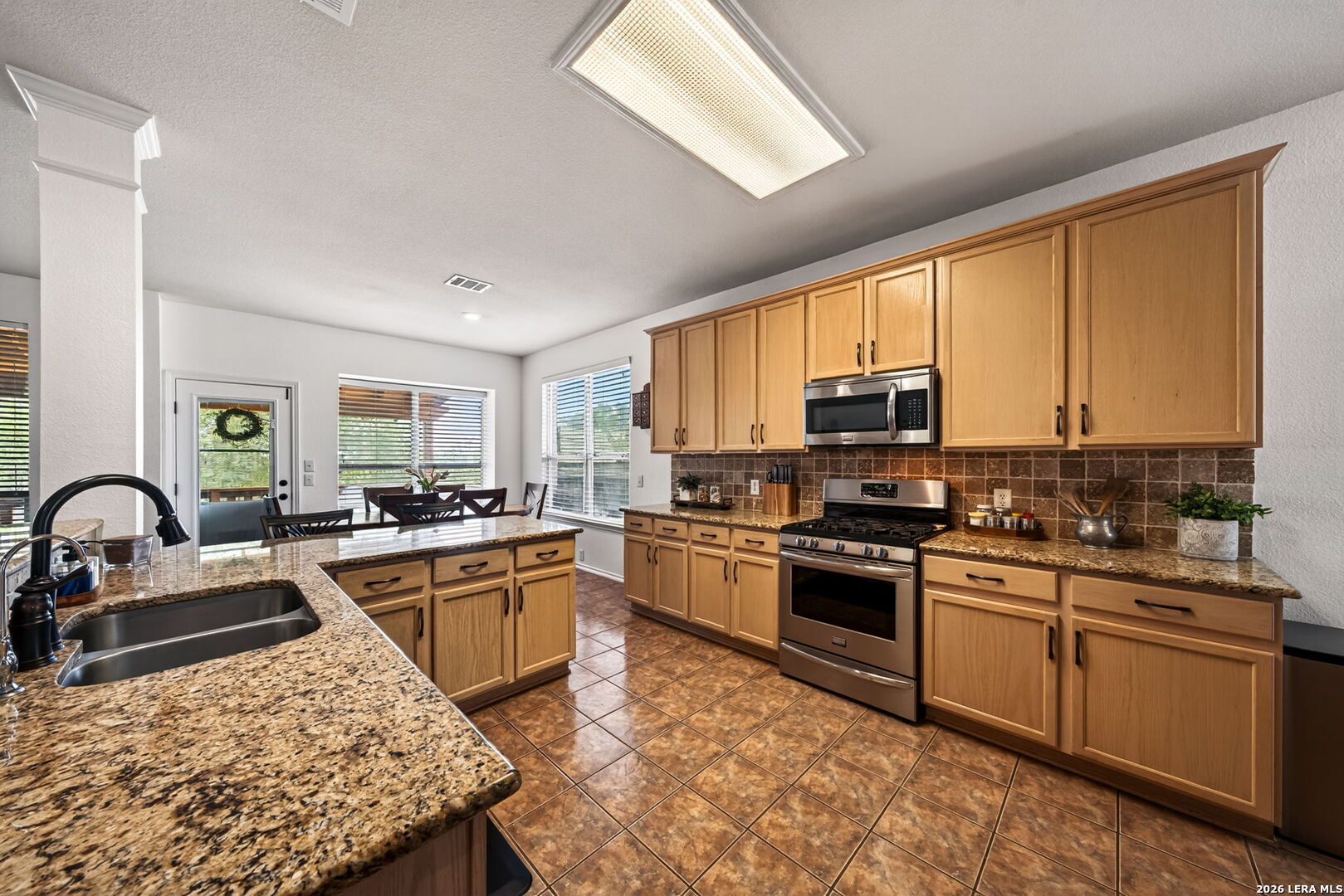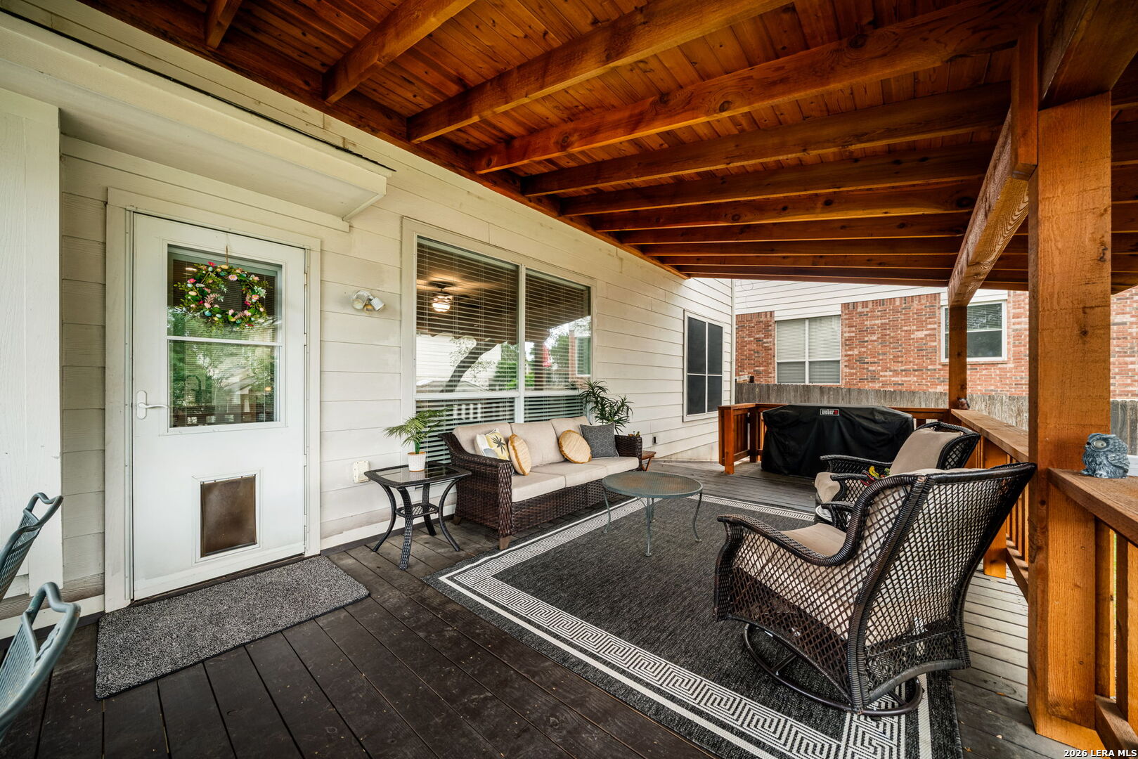 Welcome to this stunning home located in the highly sought-after gated community Village at Encino Park. Situated on a desirable corner lot within a quiet cul-de-sac, this spacious 5-bedroom, 3-bathroom home offers the perfect blend of comfort, style, and functionality. Step inside to an open-concept living area filled with natural light, seamlessly connecting to a modern kitchen featuring stainless steel appliances, granite countertops, and abundant cabinet space-perfect for both everyday living and entertaining. The thoughtfully designed layout includes all bedrooms upstairs, along with a large game room ideal for family fun or relaxation. Downstairs, you'll find a private mother-in-law suite with a full bathroom-perfect for guests or multi-generational living. Recent updates include fresh interior paint (April 2026) and brand-new carpet (March 2026), making this home truly move-in ready. Enjoy outdoor living in the spacious backyard, complete with a large elevated covered deck patio-perfect for BBQs and gatherings. The fully fenced yard also includes a wooden storage shed, this home is shaded by beautiful mature oak trees. Additional Highlights: Energy-saving solar panels significantly reduce electricity costs, Corner lot in a cul-de-sac, Gated community and Located in a desirable school district.