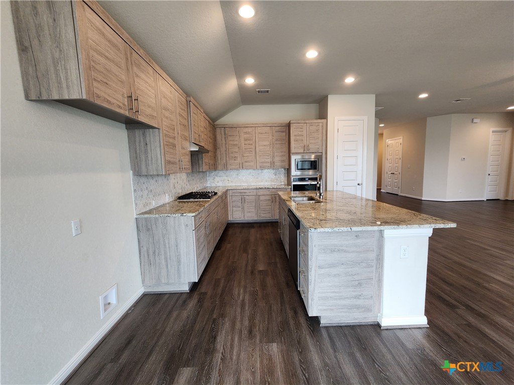 Large 3/2.5/2 with a Study / Bonus Room in Veramendi. Walk to a Pocket Park (Bennett Park). Corner lot. Community has a large pool, sundeck, splash pad, BBQ grills. Mix of carpet/ wood/ ceramic tile. Open floorplan with split bedrooms. Kitchen Features: gas cook top, built in oven, built in microwave, dishwasher, large island with breakfast bar, & granite countertops. Other Features: interior washer/dryer connections, primary bathroom has a walk in shower, double vanities, and 2 walk in closets, water softener, ceiling fans, recessed lighting, covered back patio with ceiling fan, sprinkler system, fenced in yard, garage door opener. NBISD Schools. (2 Pets Allowed, 50 lb max). **Fridge, Washer & Dryer were left by previous tenant. Owner will not repair or replace**