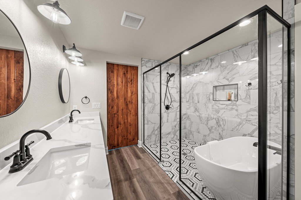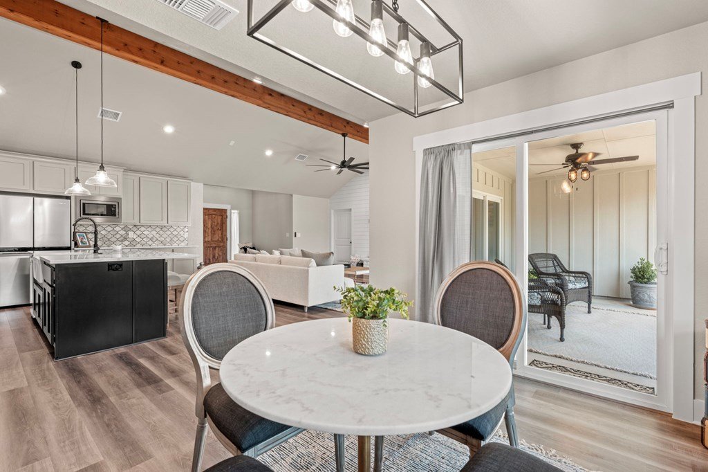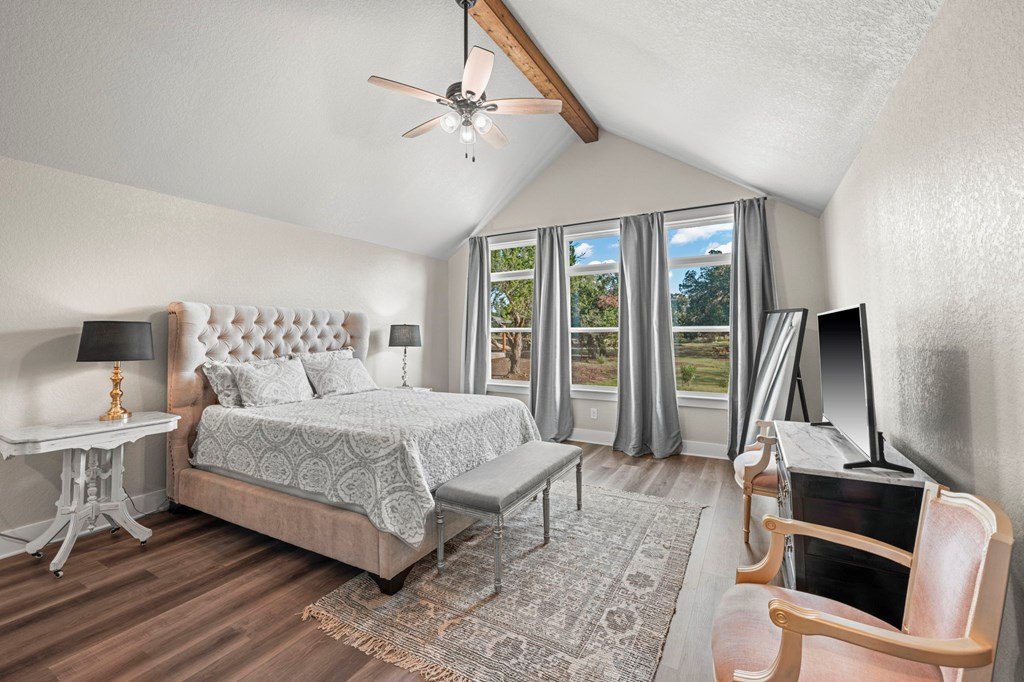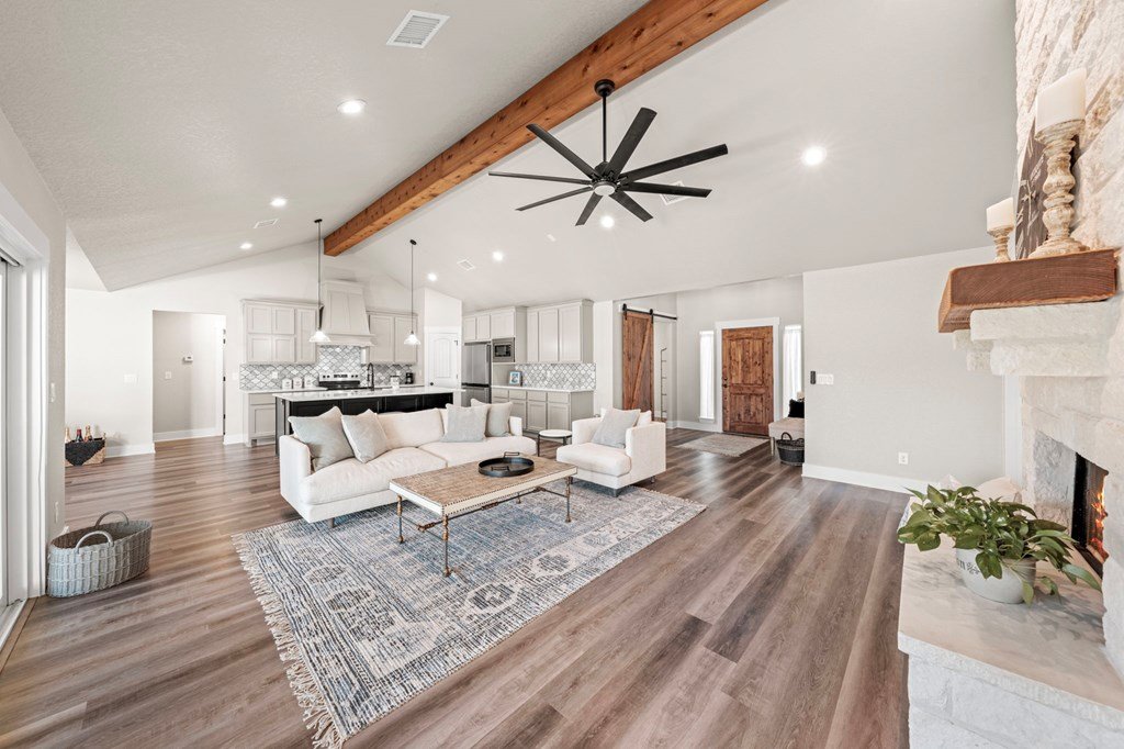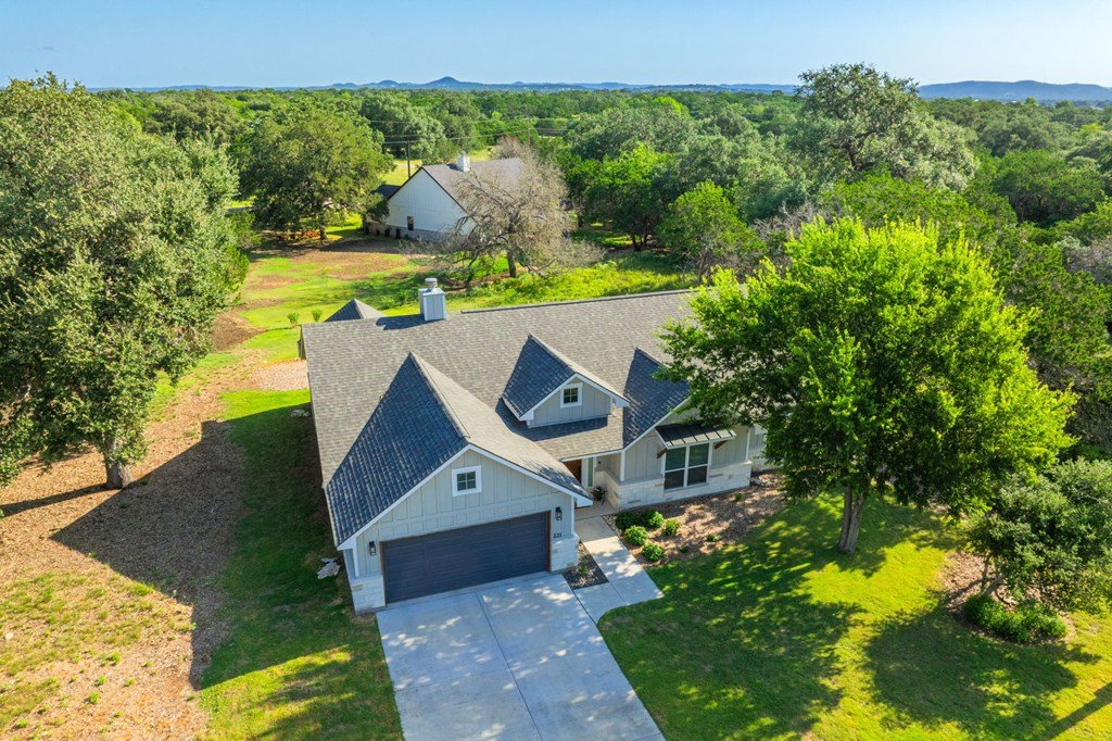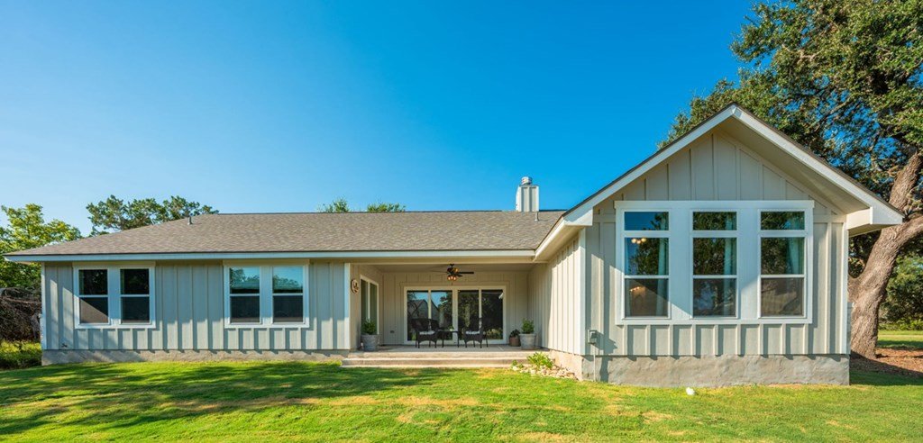 Welcome home to the lifestyle of Bandera's historic Flying L Ranch subdivision with its laid-back suburban-ranch atmosphere. This custom home, built in 2022, blends thoughtful Hill Country architecture with high-end upgrades and rustic touches. It is a well-maintained one-owner property, sited on a wide-open lawn perfect for leisurely backyard gatherings and barbeques. The front door of Knotty Alder leads into a double-height entry. A front-facing study/flex room opens to the entry with a sliding barn door. Anchored by a wood-burning fireplace, the open-concept heart of this home feels spacious and inviting with an eye toward both large gatherings and holiday coziness. The high-end finishes in the kitchen with quartz countertops and stainless-steel appliances beckon you for all your gourmet adventures or quick breakfasts. And you can feel an added sense of convenience with the ample storage space in the kitchen island and the spacious pantry. Take time to retreat into the primary suite with its own bathroom offering a unique shower space that includes the freestanding soaking tub. Another upgrade to this home is the open-cell foam insulation in the walls and rafters that helps maintain a comfortable ambient air temperature during Texas summers. The Flying L Ranch offers community membership opportunities for year-round recreation with a pool, tennis courts, volleyball courts, clubhouse, and golf course designed by John Bredemus for all skill levels. This home fits the bill for those seeking a quiet back-porch country ambience.