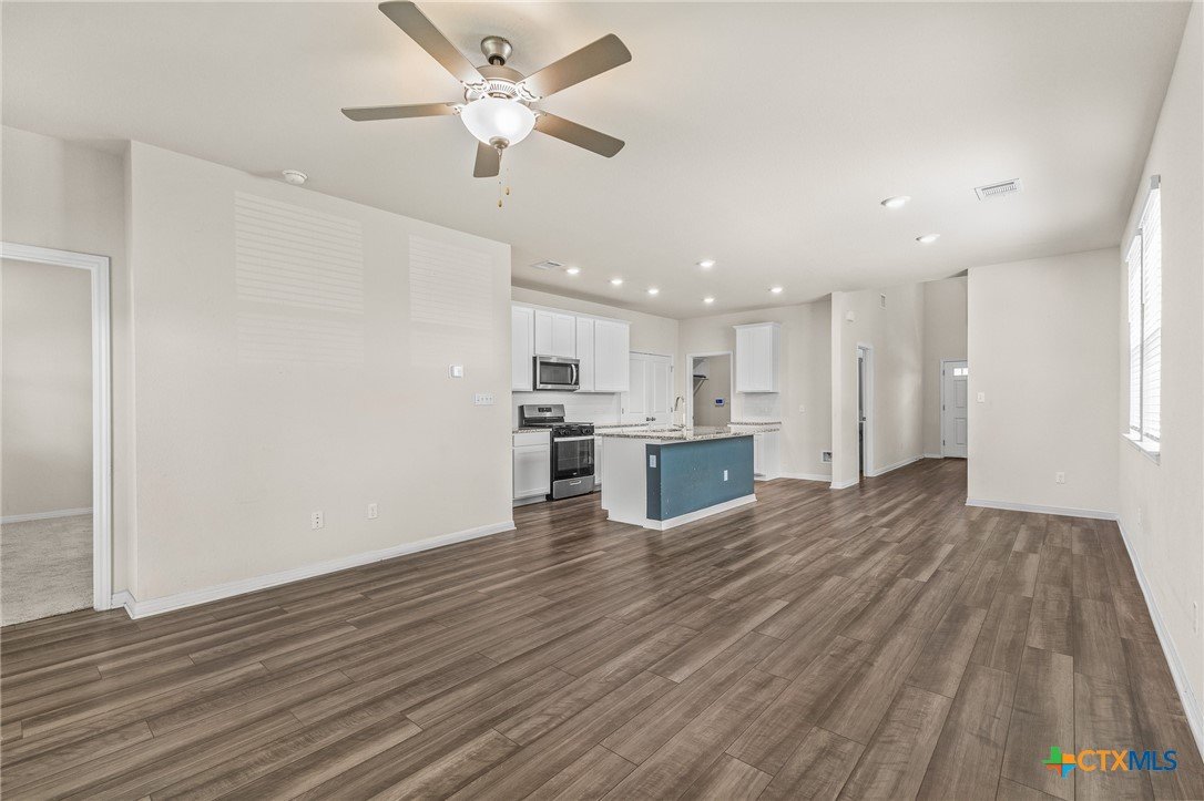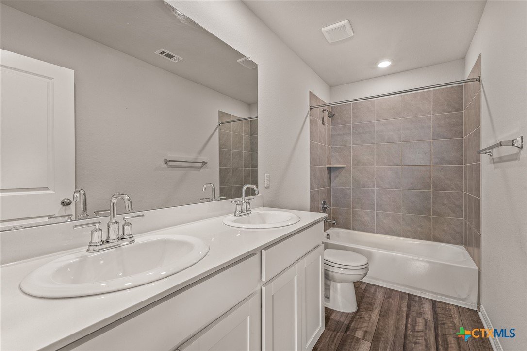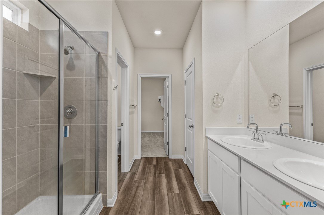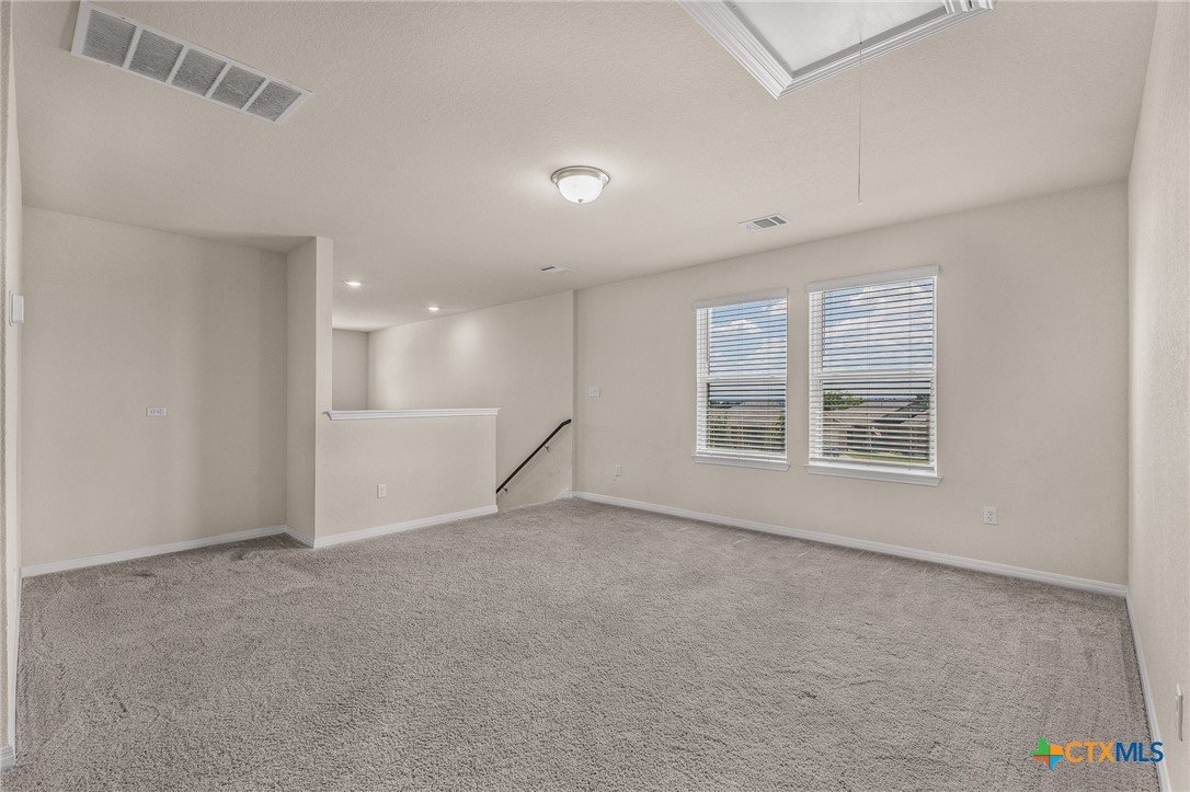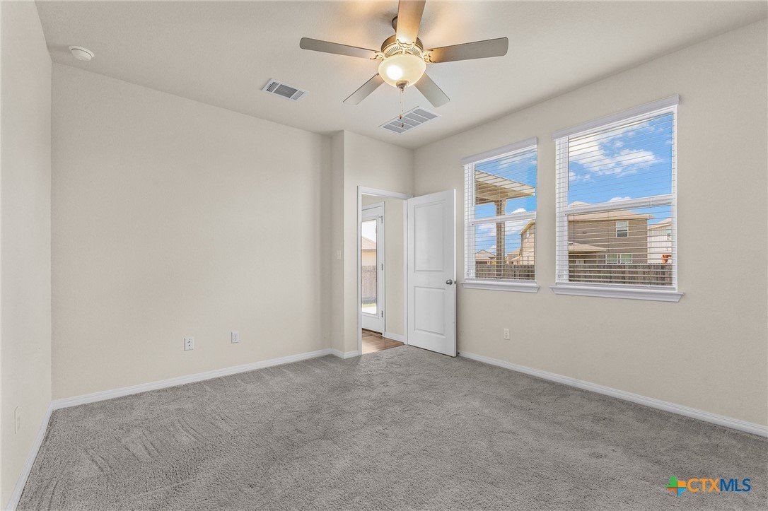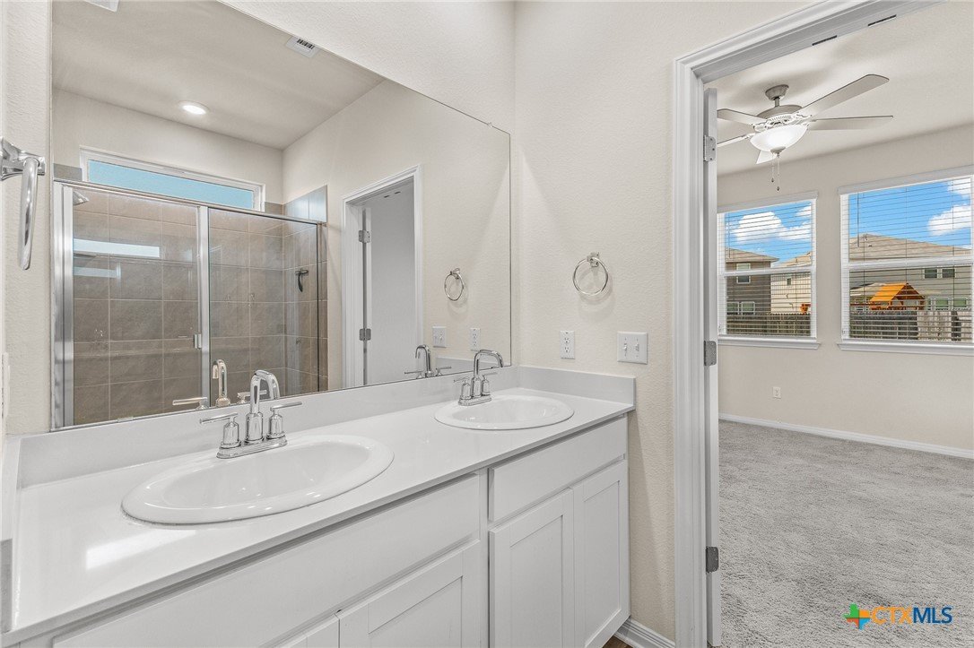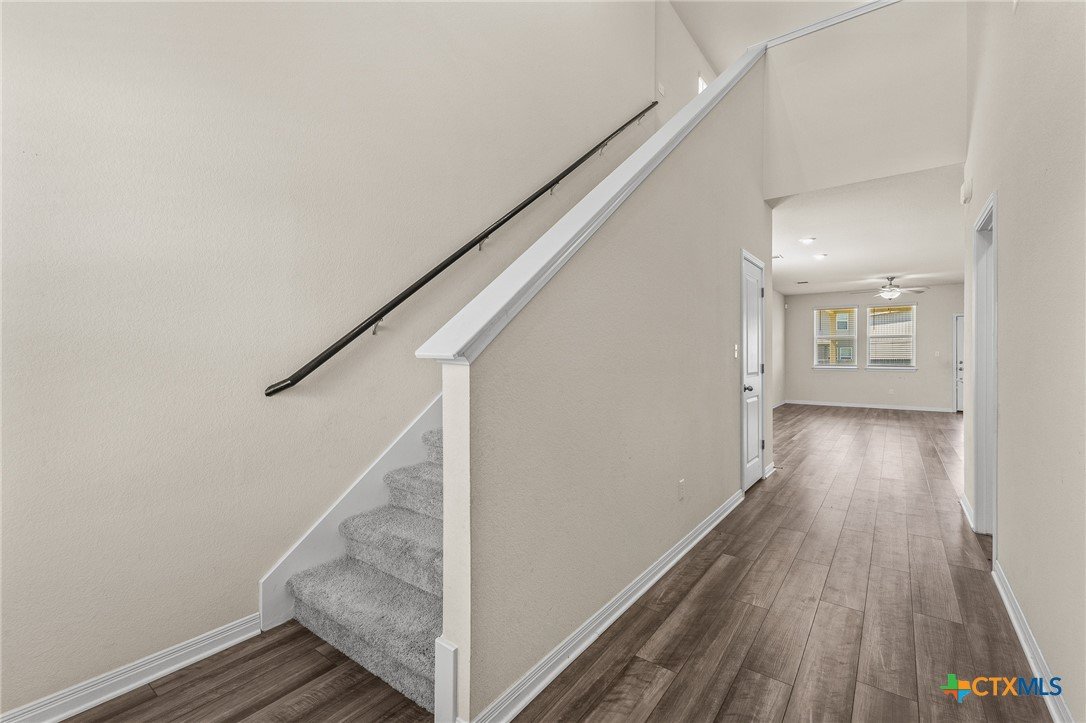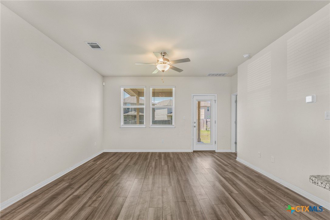 Just listed in Liberty Hill, this beautiful four-bedroom, two-and-a-half-bath home in the desirable Butler Farms community offers 2,047 square feet of modern living space. Built in 2023, it features an open-concept layout with granite countertops, stainless steel appliances, and a spacious kitchen island perfect for gatherings. The downstairs includes vinyl wood-look flooring, a bright living area, and a private primary suite with double vanities and a walk-in shower, while upstairs provides a large game room or loft ideal for entertaining or relaxing. Outside, enjoy evenings under the covered patio overlooking a large fenced backyard with plenty of space for pets or play. Located in Liberty Hill ISD with convenient access to Highway 29 and 183, this move-in ready home offers the perfect blend of comfort and convenience.