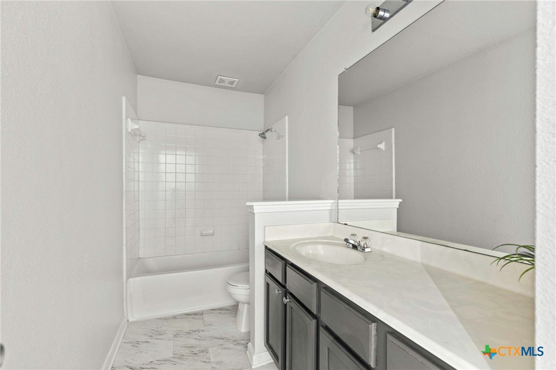This 3-bedroom, 2.5-bath beauty offers 1,919 sq. ft. of comfortable living space. From the mature trees in the front yard, to the inviting entryway, this home instantly feels welcoming. Inside, you’ll find stylish laminate flooring, two dining areas perfect for gathering, and a kitchen with a spacious pantry. The cozy gas fireplace anchors the main living area, while the convenient half bath downstairs makes hosting easy. Upstairs, a versatile second living space or den gives you room to relax or play. All three bedrooms are generously sized with walk-in closets and new carpet. The primary suite is a true retreat, featuring vaulted ceilings and a spacious bathroom with dual vanities, a separate shower, and a soaking tub. The neighborhood offers a playground and park area to enjoy the outdoors—all with no HOA. Lockhart, a town known for its legendary barbecue, charming historic square, and welcoming small-town spirit. With its central location and warm community feel, this is the perfect place to call home.