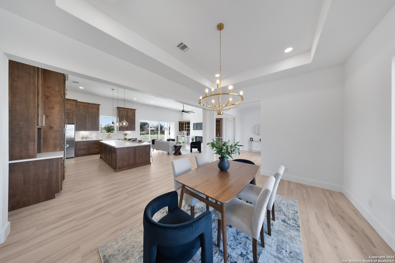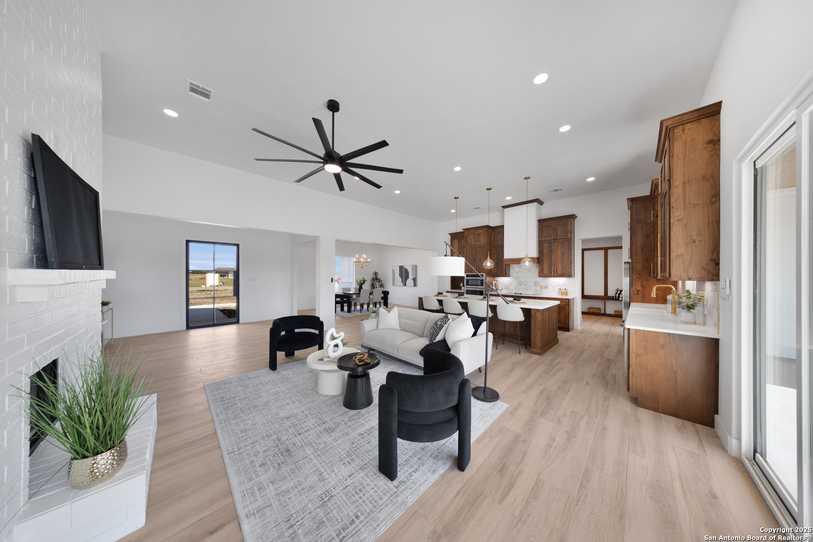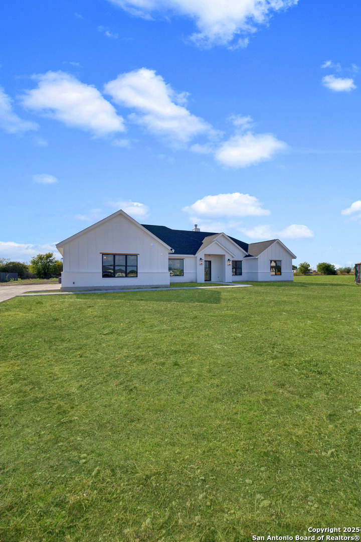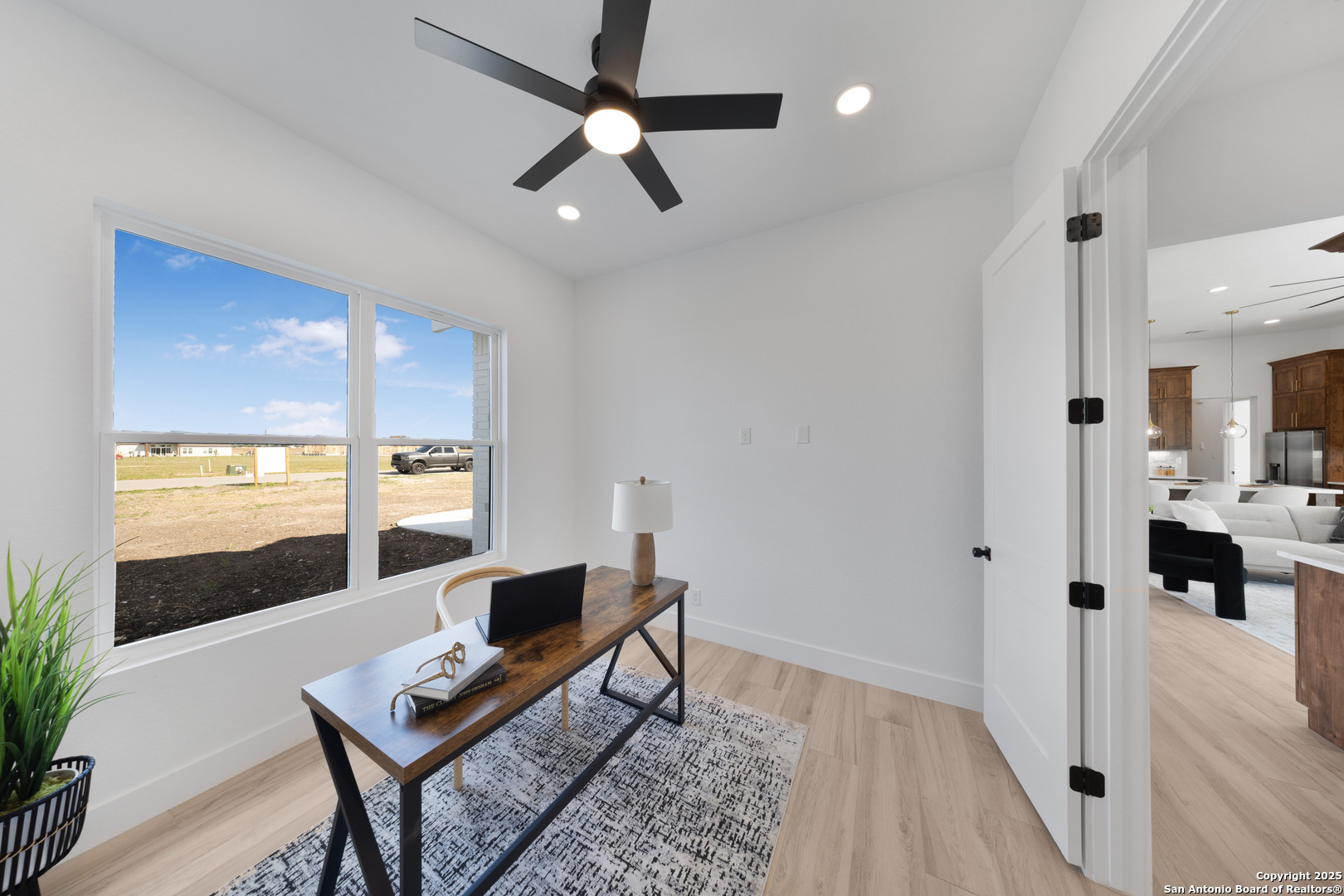 This thoughtfully designed residence features 4 spacious bedrooms, including two primary suites, 3.5 baths with a convenient Jack & Jill setup, and a dedicated home office. The open-concept layout showcases soaring 10-ft ceilings throughout, with 12-ft ceilings in the living room and primary suite, filling the home with natural light and an airy, elegant feel. At the heart of the home, the chef's kitchen boasts an oversized island, walk-in pantry, and plenty of space for cooking and entertaining. Both primary suites provide private retreats with spa-inspired finishes, while the secondary bedrooms offer comfort and versatility. Enjoy evenings on the covered patio, already designed for your future outdoor kitchen, with plenty of room in the backyard for a pool, garden, or playscape. A 3-car garage offers ample storage and parking. Zoned to the highly sought-after Navarro ISD, this home offers an excellent education option for families while being ideally located with easy access to Seguin's amenities and just a short drive to New Braunfels and San Antonio.