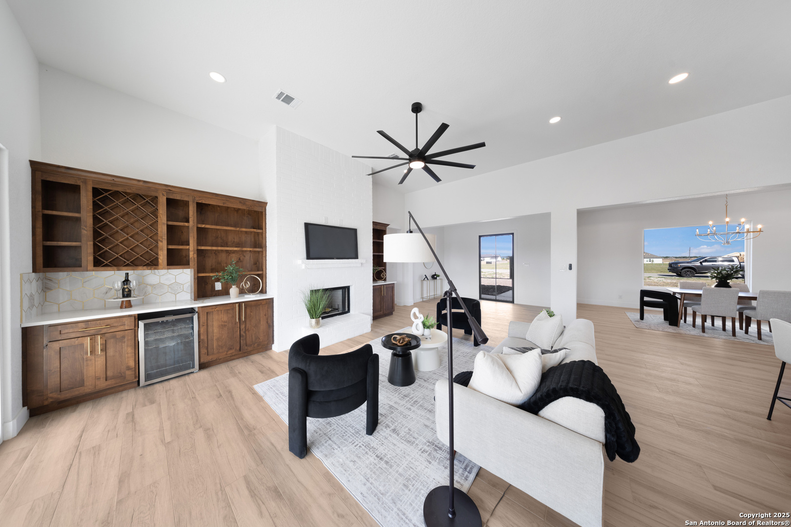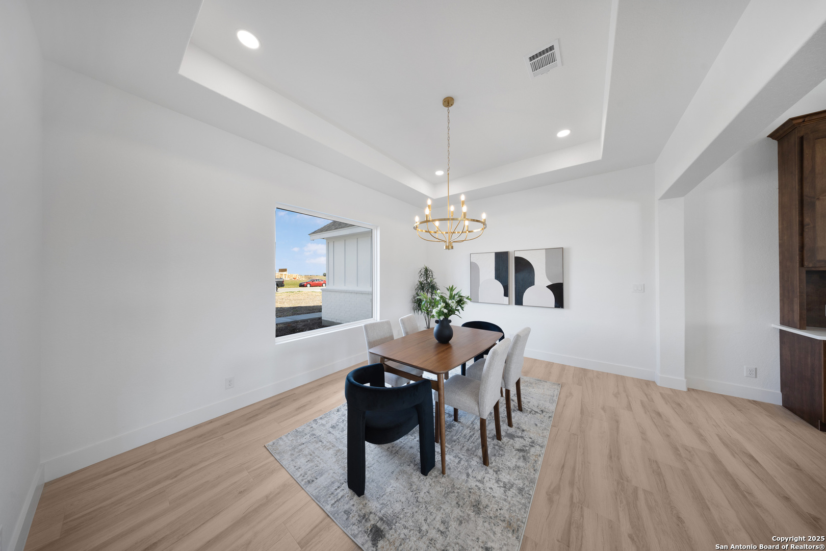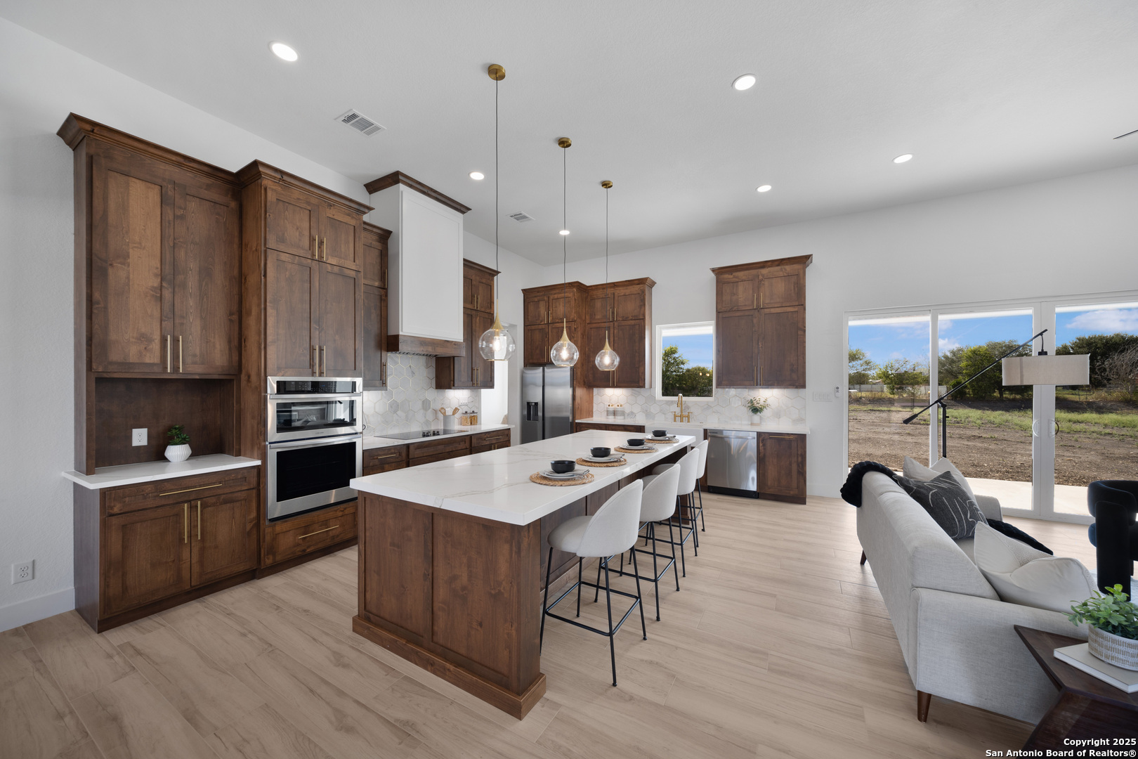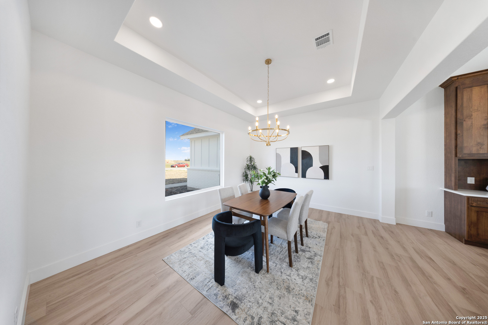 This thoughtfully designed residence features 4 spacious bedrooms, including two primary suites, 3.5 baths with a convenient Jack & Jill setup, and a dedicated home office. The open-concept layout showcases soaring 10-ft ceilings throughout, with 12-ft ceilings in the living room and primary suite, filling the home with natural light and an airy, elegant feel. At the heart of the home, the chef's kitchen boasts an oversized island, walk-in pantry, and plenty of space for cooking and entertaining. Both primary suites provide private retreats with spa-inspired finishes, while the secondary bedrooms offer comfort and versatility. Enjoy evenings on the covered patio, already designed for your future outdoor kitchen, with plenty of room in the backyard for a pool, garden, or playscape. A 3-car garage offers ample storage and parking. Zoned to the highly sought-after Navarro ISD, this home offers an excellent education option for families while being ideally located with easy access to Seguin's amenities and just a short drive to New Braunfels and San Antonio.