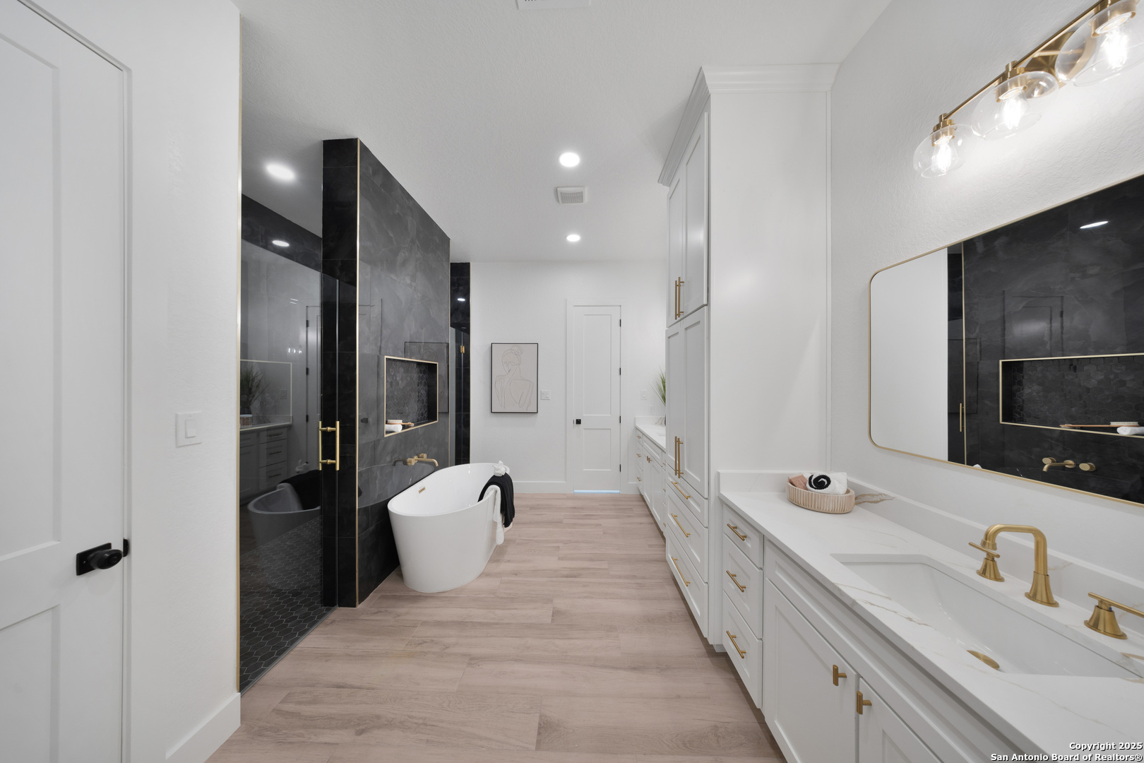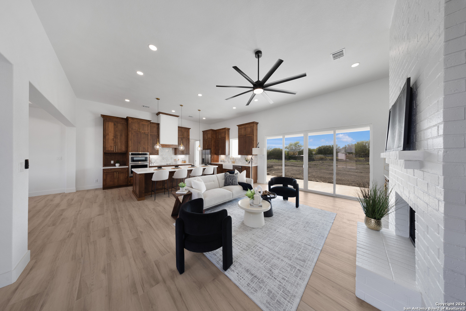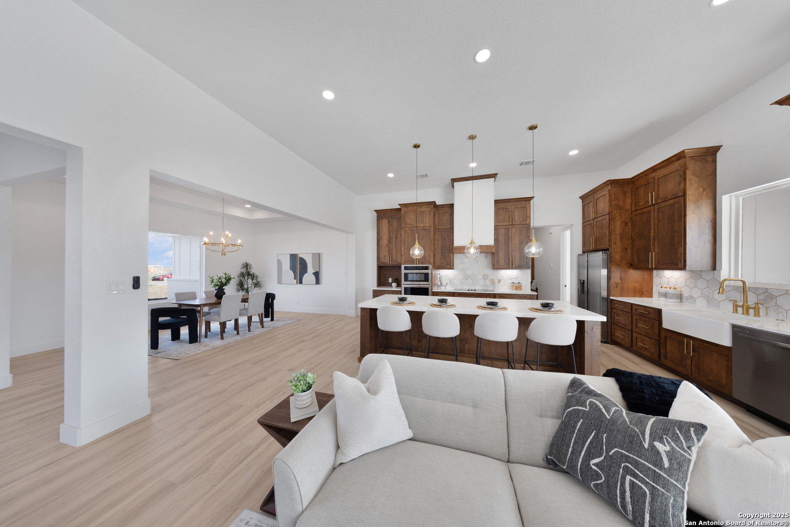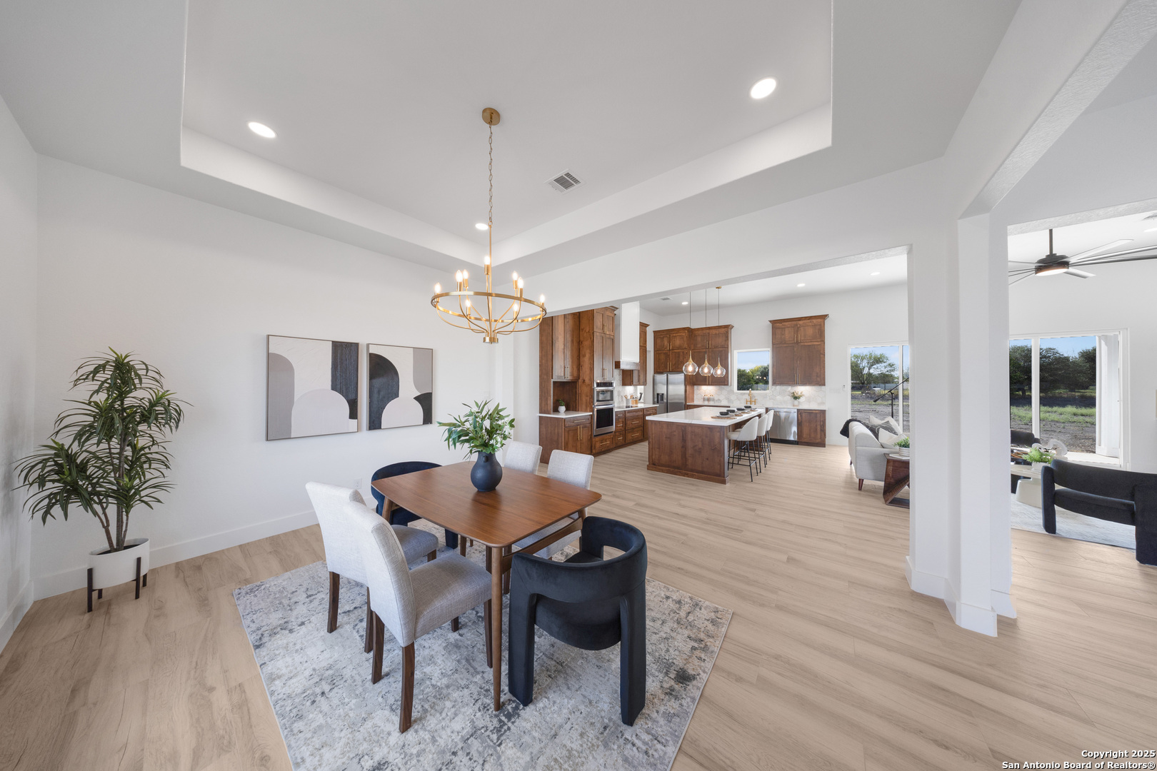 This thoughtfully designed residence features 4 spacious bedrooms, including two primary suites, 3.5 baths with a convenient Jack & Jill setup, and a dedicated home office. The open-concept layout showcases soaring 10-ft ceilings throughout, with 12-ft ceilings in the living room and primary suite, filling the home with natural light and an airy, elegant feel. At the heart of the home, the chef's kitchen boasts an oversized island, walk-in pantry, and plenty of space for cooking and entertaining. Both primary suites provide private retreats with spa-inspired finishes, while the secondary bedrooms offer comfort and versatility. Enjoy evenings on the covered patio, already designed for your future outdoor kitchen, with plenty of room in the backyard for a pool, garden, or playscape. A 3-car garage offers ample storage and parking. Zoned to the highly sought-after Navarro ISD, this home offers an excellent education option for families while being ideally located with easy access to Seguin's amenities and just a short drive to New Braunfels and San Antonio.