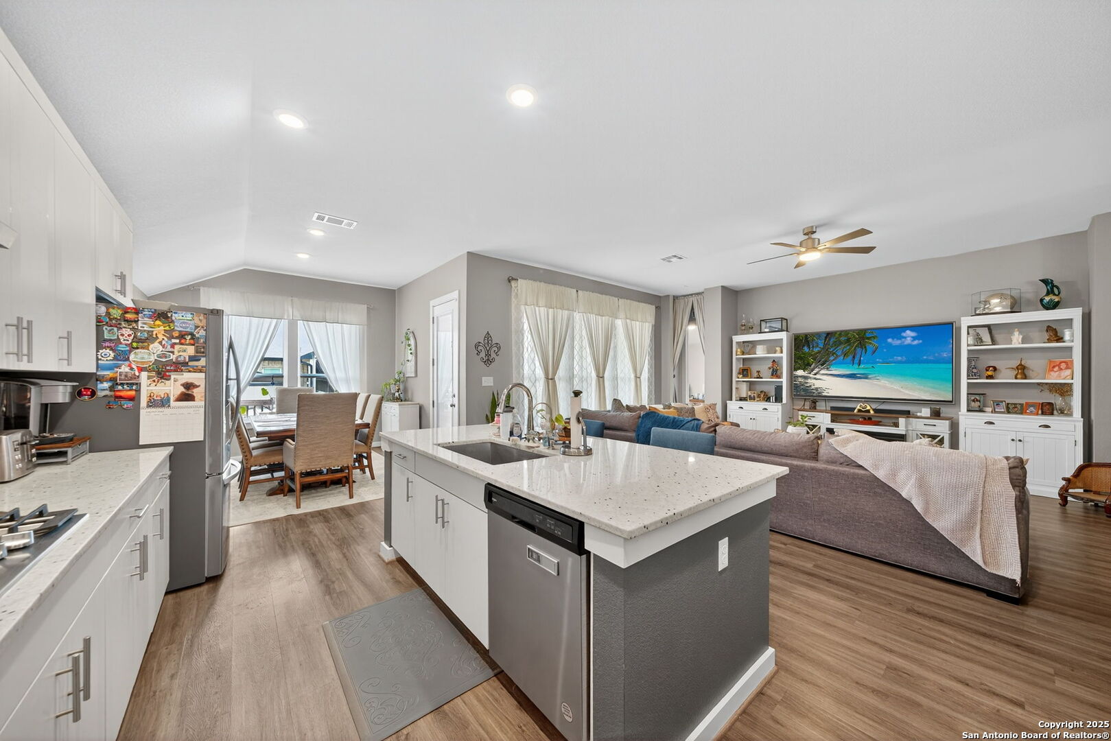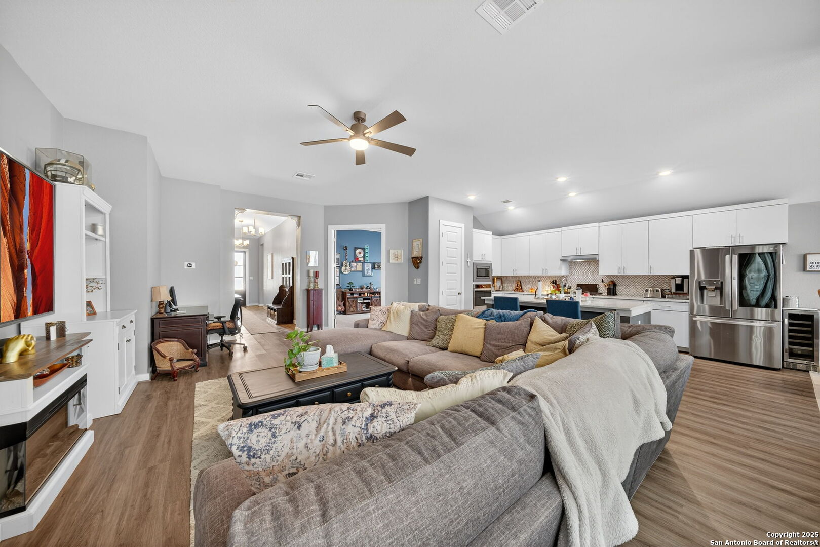 ***MOTIVATED SELLER*** LOCATION AND LUXURY AWAIT YOU! Welcome to your Hill Country dream home in Veramendi, one of New Braunfels' most sought-after master-planned communities! This stunning Scott Felder one-story home blends modern style with family comfort, featuring an open-concept layout, a versatile flex room, and a chef's kitchen with quartz countertops, gas range, and stainless-steel appliances. The spacious family room is filled with natural light, while the primary suite offers a relaxing retreat with dual vanities, soaking tub, and walk-in shower. Step outside to your private backyard oasis-a custom-built 18'x30' two-level deck with an 8-person hot tub, covered patio with gas hookup, and fresh landscaping. Updates include an 8'x6' shed, water softener, whole home water filtration system and Aquasential reverse osmosis drinking water filtration system all by Culligan. Additional updates include a tankless water heater, garage epoxy floor 'tuxedo' coating, built-in work bench in garage, custom paint throughout the main living areas, plus ceiling fans throughout. Light wood-like flooring, soaring ceilings and an abundance of windows create a bright, airy atmosphere throughout the open-concept kitchen, dining and living areas. You will love the resort-style community pool, jogging trails and parks, plus the prime location near Landa Park, TOP-RATED SCHOOLS and quick access to San Antonio and Austin!