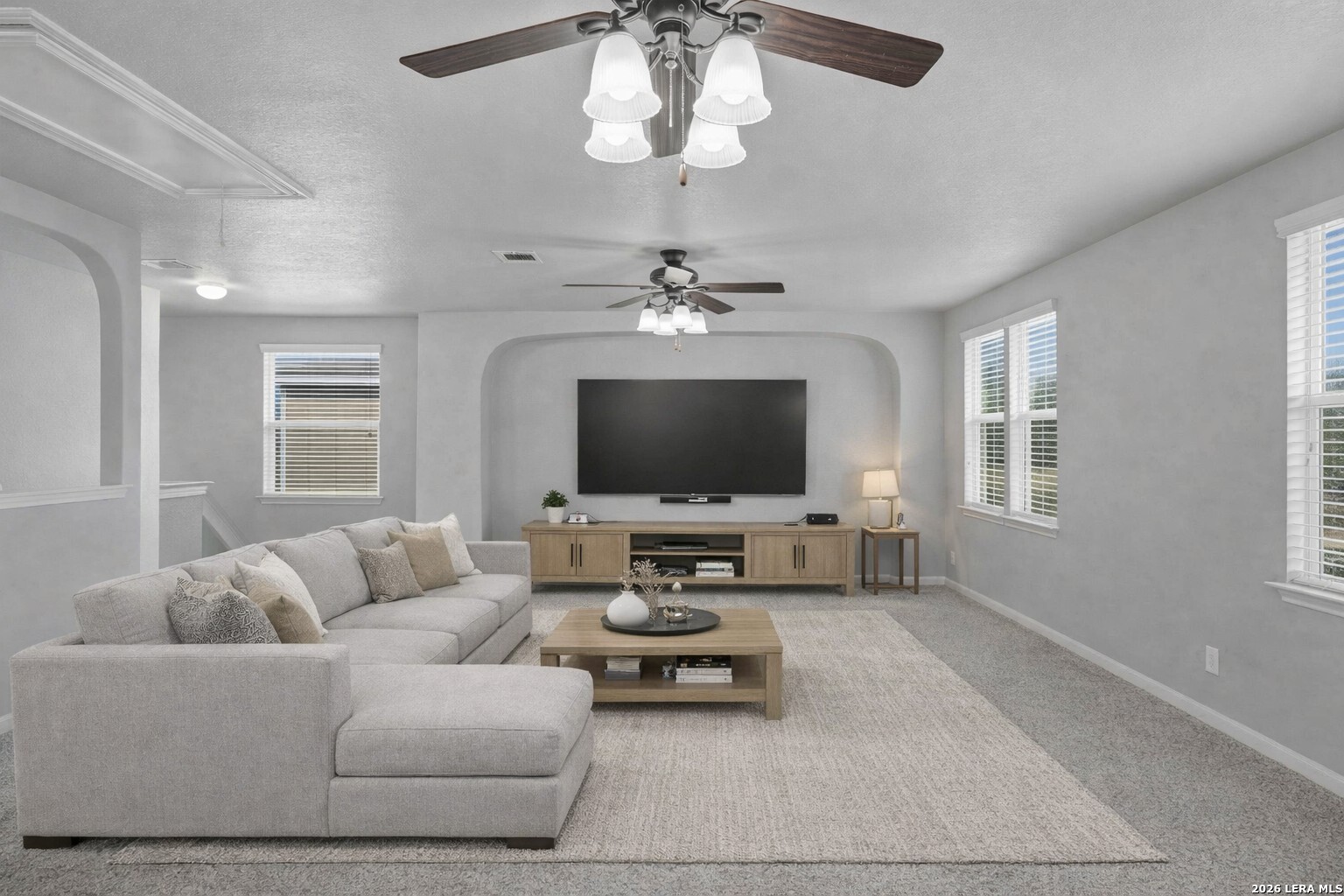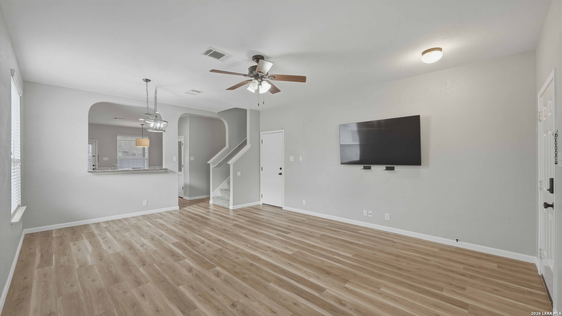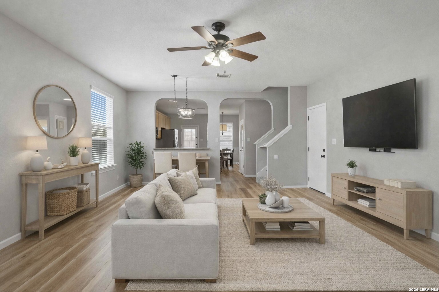 This well-maintained, move-in-ready home offers a spacious floor plan designed for both entertaining and comfortableeveryday living. Recent updates reflect a sense of pride of ownership throughout the home. The primary suite is located on themain floor, while the second level includes three additional bedrooms, a versatile loft, a full bath, and a laundry room. Conveniently located near Fischer Park, shopping, dining, schools, and major thoroughfares. The washer, dryer, refrigerator, mounted TV in the living room, and home security system come with the home. Plus, enjoy the added benefit of no HOA.