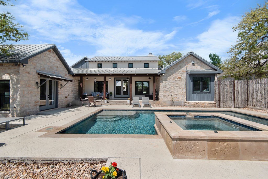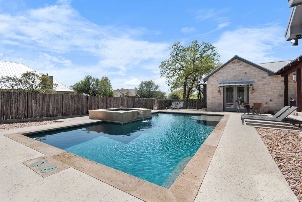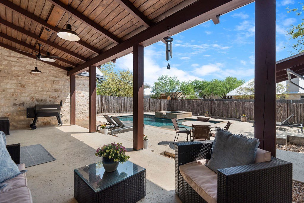 This well maintained 4 bedroom, 4 bath, plus an upstairs bonus room makes this custom built home in Stone Ridge a must see! Complete with all the space and style you're looking for! The split floor plan keeps the private master retreat tucked away, featuring its own access to the pool and hot tub, a cozy nook with built-in bookshelves, and a workout room/flex space located off the master bath, with 2 exterior entrances. The open and spacious kitchen flows right into the living room, where vaulted ceilings and exposed beams add tons of character. A stunning fireplace and accent wall create a striking focal point. The French doors lead to a backyard built for fun?pool, hot tub, patio, and extra yard space to enjoy. This home is warm, inviting, and ready for you!