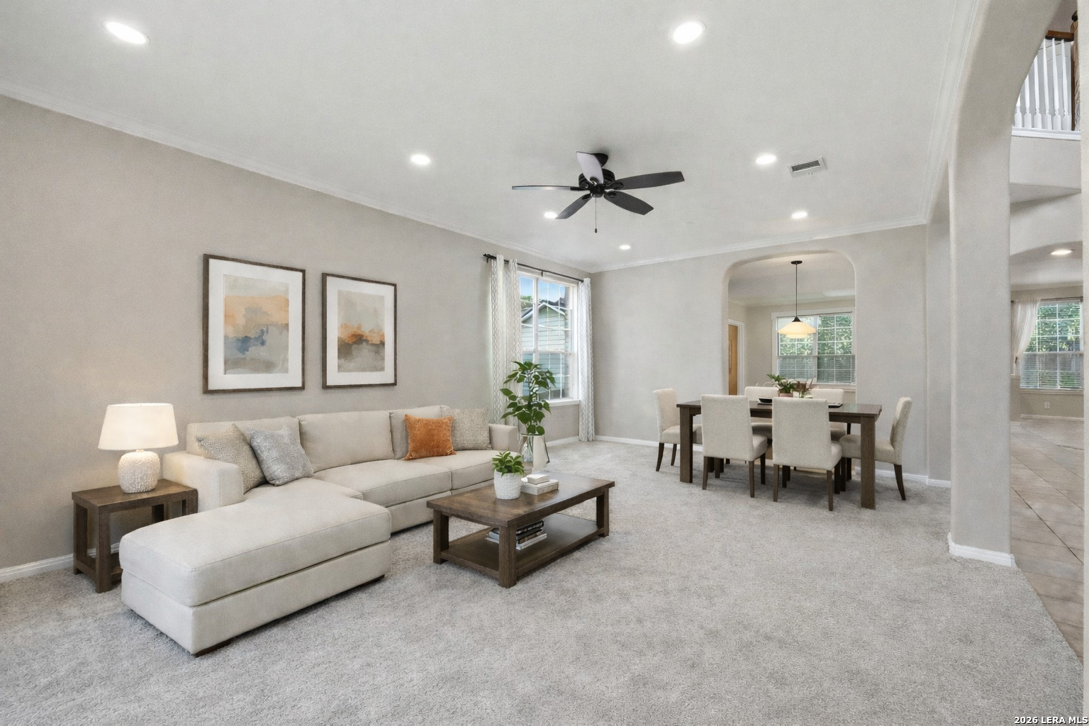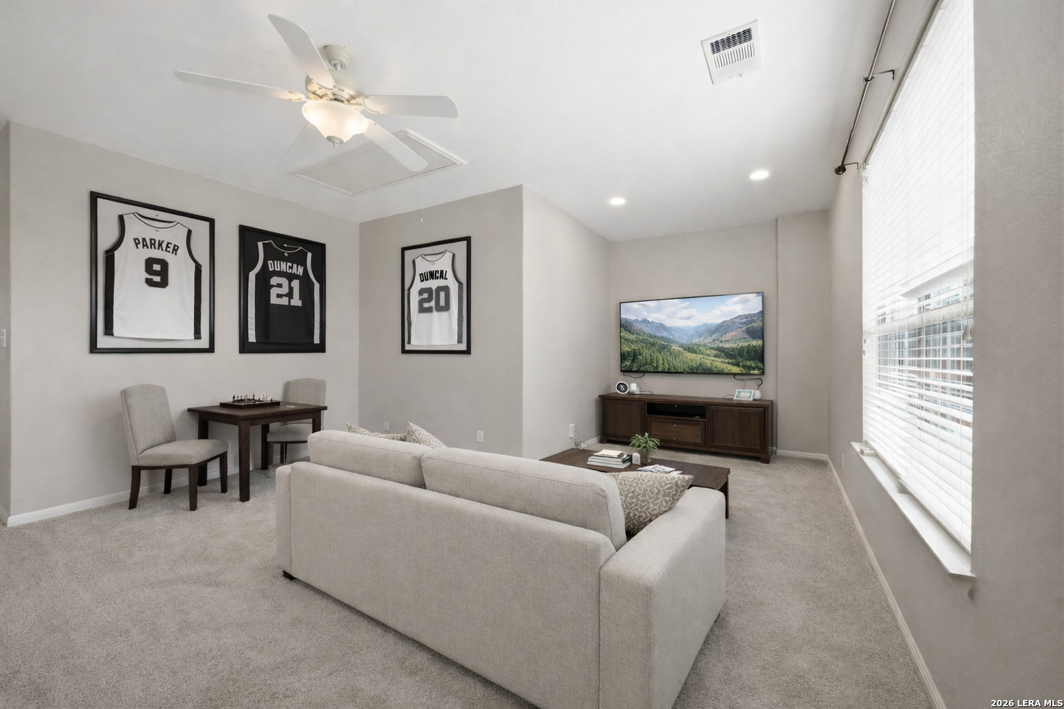 This home lives larger than its square footage, offering an abundance of space for everyone to spread out and live comfortably. Designed with a highly functional and flexible floor plan, it features three separate living areas-perfect for entertaining, relaxing, or creating dedicated spaces for work and play. Upstairs, you'll find four generously sized bedrooms along with a conveniently located laundry room exactly where you need it for a busy, everyday lifestyle. Downstairs, a private guest suite with a full bath provides the ideal setup for overnight visitors or a mother-in-law retreat. The heart of the home is the open kitchen and living area, designed for gathering and entertaining, complete with an enormous pantry ready to handle all your Costco runs with ease. Enjoy being just a short walk from the community center, where you can cool off in the pool and connect with neighbors. All of this, plus access to award-winning schools and just minutes from one of the best H-E-B locations in town-this home truly checks all the boxes. The sellers have meticulously maintained this home and taken care of all the big-ticket items, giving you true peace of mind. Recent updates include a new roof, new carpet, newer HVAC system, and beautiful new kitchen countertops just to name a few. The list truly goes on, and the care and attention show throughout... this home genuinely feels like new.