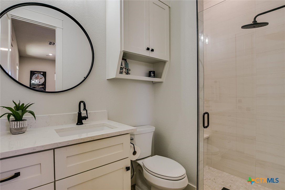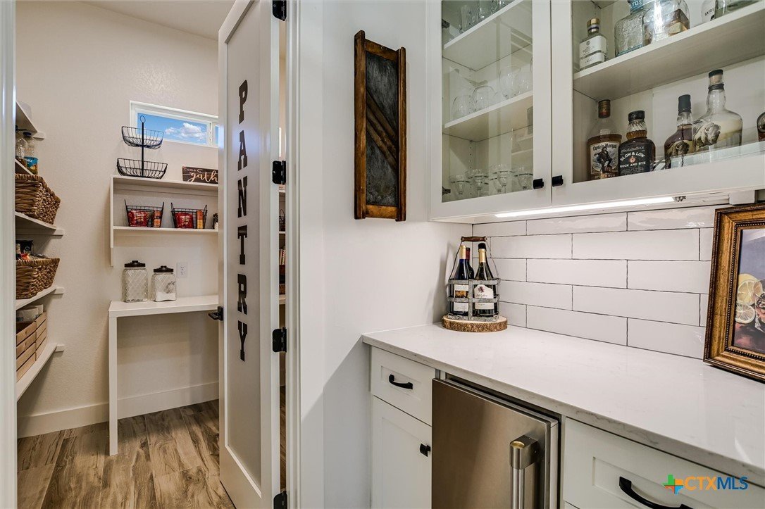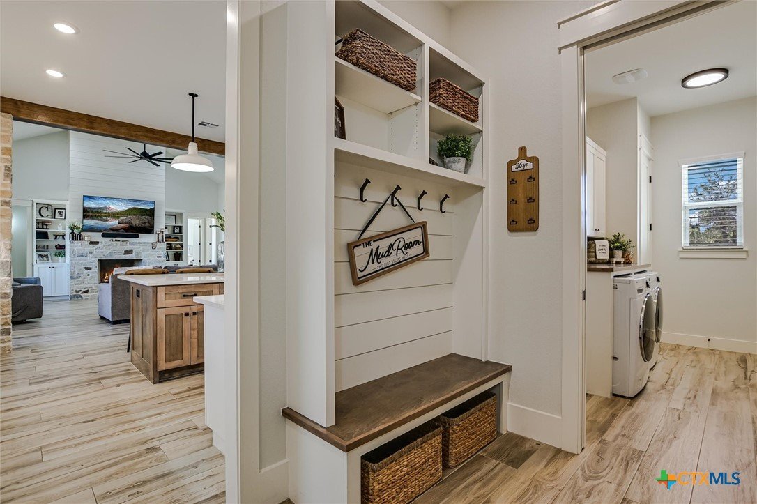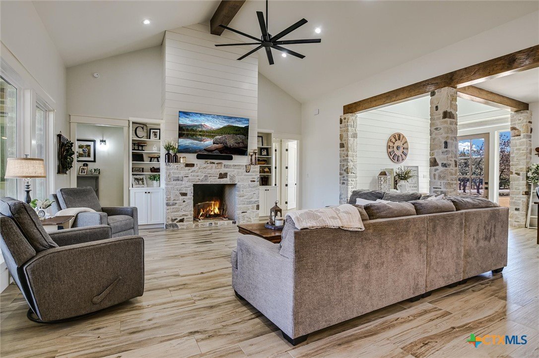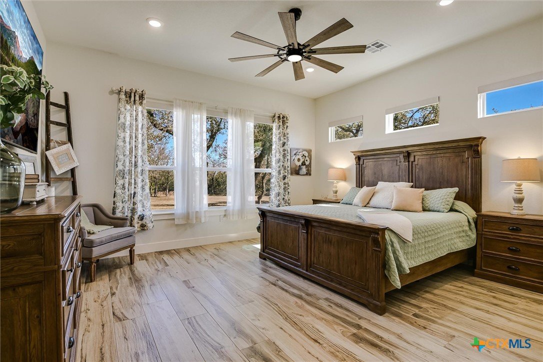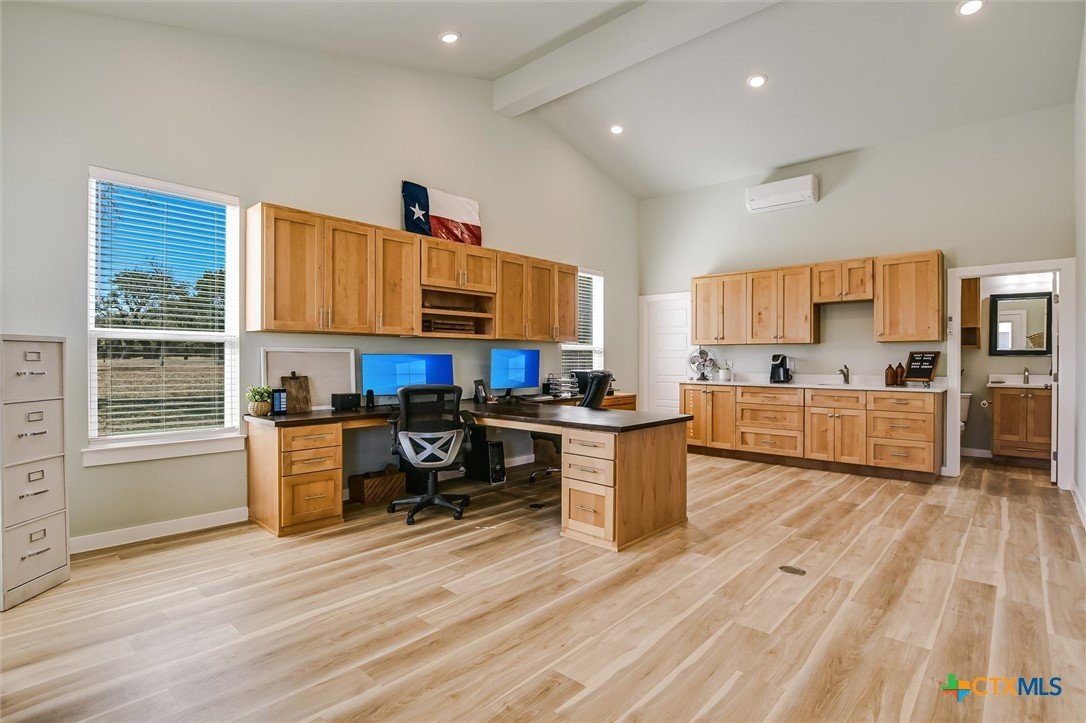 Modern Acreage Living with Luxury Shop & Flex Space - Designed for both everyday comfort and long-term flexibility, this custom 4-bedroom, 4.5-bath home sits on 2.67 acres with no HOA—offering the freedom today’s buyers are searching for. The thoughtfully designed floor plan includes two private suites plus two additional bedrooms connected by a Jack-and-Jill bath, creating an ideal setup for multi-generational living, guests, or growing families. The primary suite is spacious and refined, featuring dual vanities, separate his-and-her closets, and an oversized walk-in shower. Natural light fills the open-concept living area, highlighting beautiful stone accents and seamless flow between kitchen, dining, and family room. The kitchen was designed for serious functionality and entertaining alike—complete with a large quartz island, walk-in pantry, butler’s pantry with ice maker, floor-to-ceiling cabinetry, and abundant prep space. A dedicated media/game room with full bath and walk-in closet offers flexibility as a fifth bedroom, private guest suite, or secondary living area. Step outside to a true year-round outdoor retreat featuring a propane fireplace, built-in griddle, sink, and bar seating—perfect for hosting or unwinding after a long day. What truly elevates this property is the 1,035 sq. ft. climate-controlled workshop with dual electric roll-up doors, sink, and heat & air. Attached is a 465 sq. ft. office with full bath and walk-in closet—ideal for a home-based business, studio apartment, fitness room, or private workspace. RV hookups, additional covered parking, and full utility connections add even more versatility. Located just minutes from the newly extended 183A Toll and Highway 29, with Target, Costco, and expanding retail nearby, this property offers the rare combination of space, function, and convenience within Liberty Hill ISD. A nearly-new custom home with this level of flexibility, acreage, and location is increasingly hard to find.