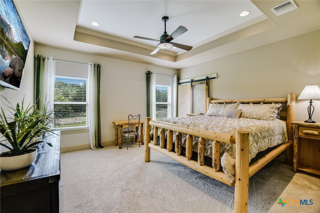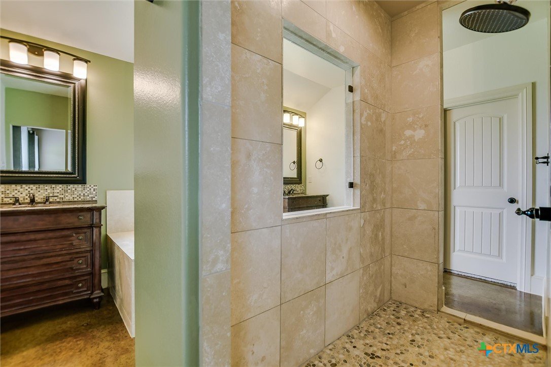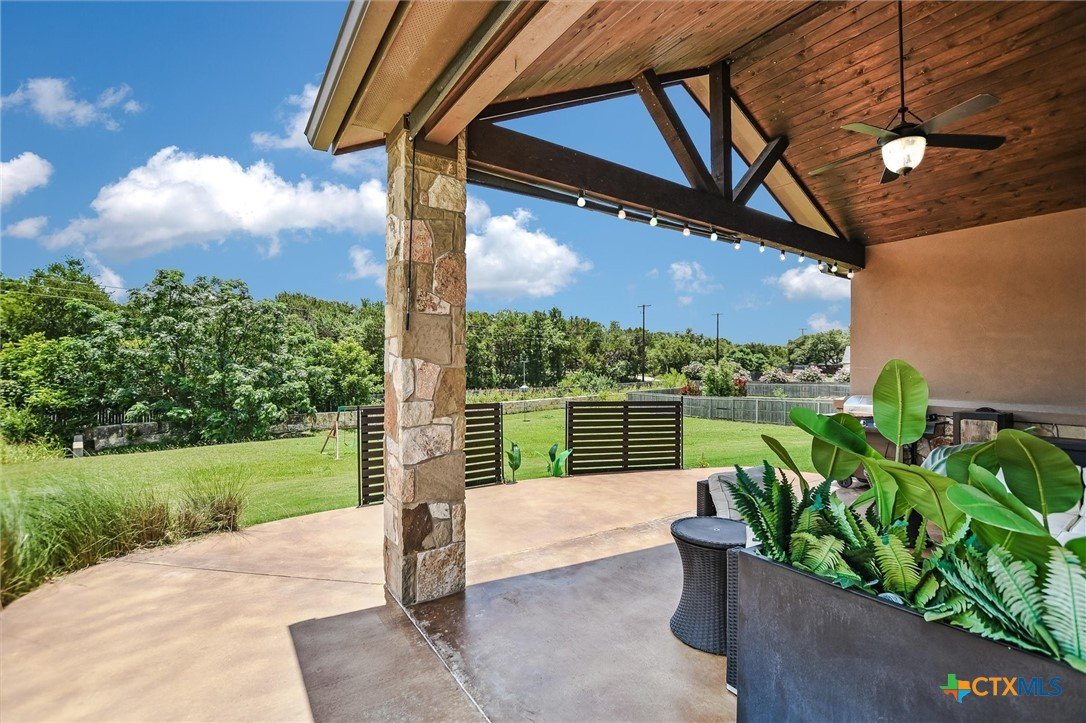 Enter the front door of this exquisite home to find soaring ceilings, stained concrete floors with leaf enlay that lead you past the study/bedroom to the fabulous Gourmet kitchen that would delight even the pickiest of chefs! Upgraded custom cabinets with crown molding, granite countertops, stainless steel whirlpool appliances, an eat-up breakfast bar, walk-in pantry all open to the dining area and family room. The family room features a stone, wood burning fireplace with stone mantel with stone all the way to the ceiling, an over abundance of windows allowing for plenty of natural lighting, an upgraded ceiling fan and designer paint. The master suite has a beautiful, private five piece bath with his and her vanities, granite countertops, sunken garden tub, an oversized, walkthrough shower, private water closet and a fabulous walk-in closet with built-ins. Three additional bedrooms all large enough to accommodate a king sized bed with night stands and a dresser, one can be an incredible study and is located at the front of the house with French doors and a murphy bed included. An enormous laundry room with built-in shelving, a secondary bath with double sinks, granite countertops and a tub/shower combo with tile walls. The Private rear yard is the perfect place to entertain family and friends with a covered patio complete with wood ceiling and stained concrete patio. All of this on over a half an acre with an automatic sprinkler system and aerobic septic system. The oversized, side load, three car garage is perfect for all of your vehicles and that golf cart or extra space for a workshop. located in the desirable and quaint city of Salado, a bedroom community to Georgetown and Austin, with a fabulous golf course and many wineries, a brewery and great restaurants and shopping boutiques and stores. Don't miss your chance to make this beautiful home yours!