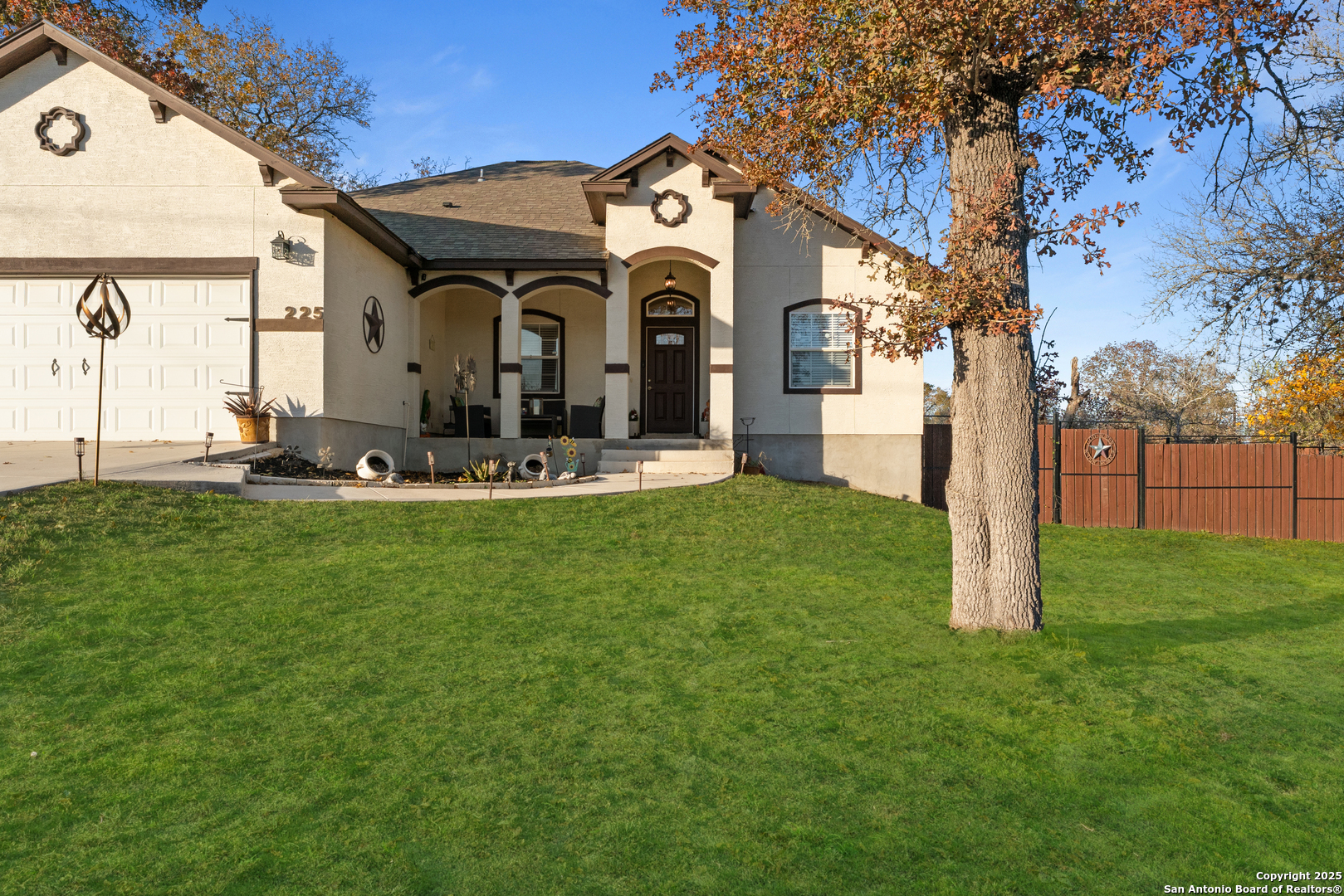 Beautifully built 3-sided stucco single-story sitting on nearly one acre of land. Inviting entry opens to arched ceilings, a family room, and a formal living/office. The family room features high ceilings, niches & recessed lighting, and a custom ceiling beam treatment. The gorgeous kitchen offers granite countertops, a stone-tiled island, a walk-in pantry, premium appliances, and views of your backyard from your serene breakfast nook. Luxury wood-like tile throughout the entire home, no carpet. Tray ceilings in the primary bedroom & tons of natural lighting. Primary bathroom oasis with custom tile shower and grand walk-in closet. Spacious secondary bedrooms with nicely sized closets & spa-like guest bathroom. Heavy-duty shingles and front landscaping package. Rural living at its finest. Short drive to San Antonio, minutes from the city of Poteet, where you would be able to enjoy the small-town feel. Enjoy wine from the local Poteet winery, easy highway access, 20 minutes from the Toyota plant/Braunig Lake/Pleasanton Country Club. No HOA, Second grand driveway for RV/Boat/Truck parking & access into the backyard. Wood/iron rod side fence for privacy. A 24 x 23 back patio concrete was poured in addition to the standard builder-covered patio. Park your boats/additional vehicles and ATVs on the 24 x 30 heavy-duty rebar/sandbag-poured foundation, and store them in the premium metal workshop with a 10 x 10 garage roll-up door & side door access. Come and schedule your visit today and make this your family's home.