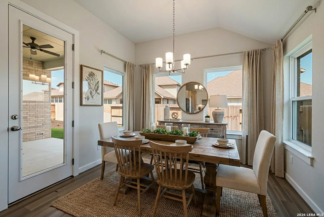 ** MOVE-IN READY! ** Introducing "The Driskill" by Scott Felder Homes - a single-story masterpiece boasting 4 bedrooms, 3 baths, and a 2.5 car garage. Designed for the active family, this home offers an open concept layout flooded with natural light and abundant storage space. The living room seamlessly transitions into the chef's kitchen, featuring a large island, 9 windows for natural light, a 36' gas cooktop, built-in appliances, and convenient storage solutions like a trash can pull-out cabinet and drawer banks. The master suite includes a freestanding tub, dual vanities, and a spacious walk-in closet. Relax on the covered patio and soak in the ambiance. Located in the sought-after Veramendi community, offering nearly 500 acres of parks, a pool, and exceptional amenities.