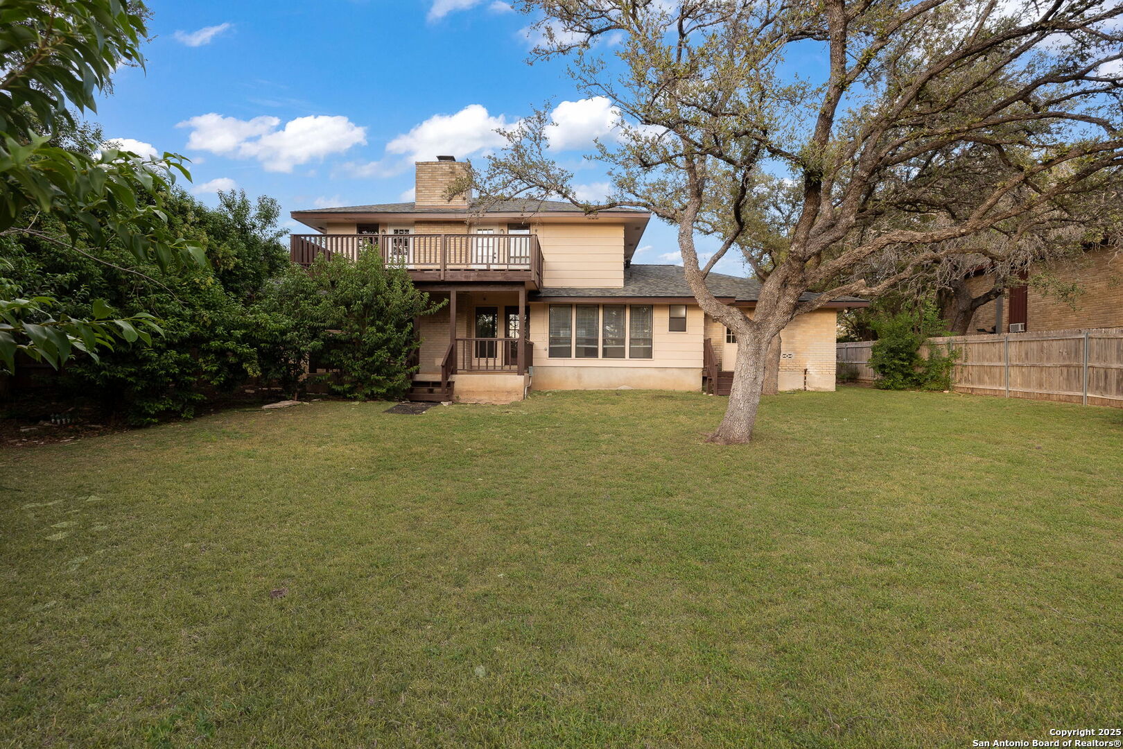 Open house 11/9 1-4pm Come visit this beautiful, spacious, 5 bed 3.5 bath two-story home tucked away in the Woodlands of Camino. Large open floor plan with bountiful natural light throughout. Granite countertops, updated flooring, and modernized hardware and fixtures throughout kitchen, family room, and dining room. Large, fenced in, private back yard features mature trees, downstairs patio and upstairs balcony. Located close to Hollywood Park, the Quarry, Downtown SA, with easy access to 281, 410, the SA international airport and more. Schedule your showing today!