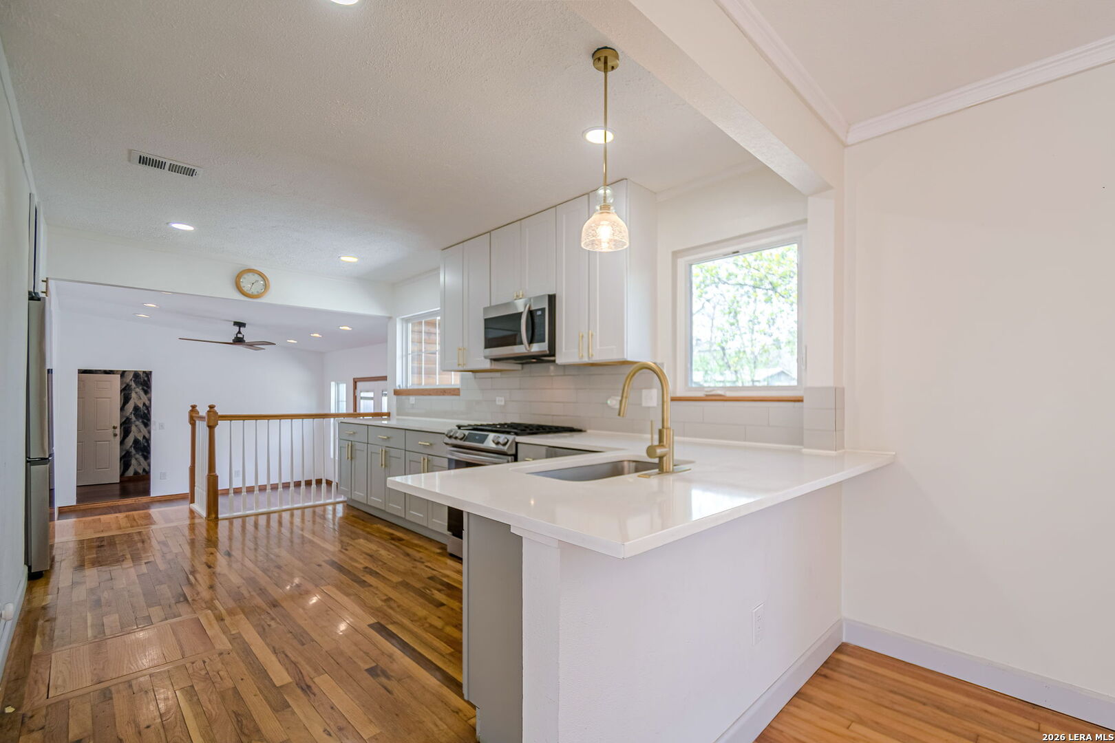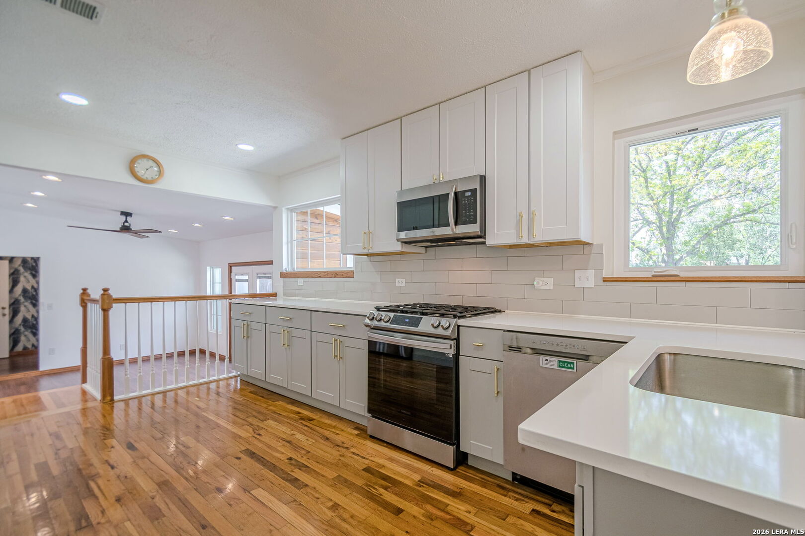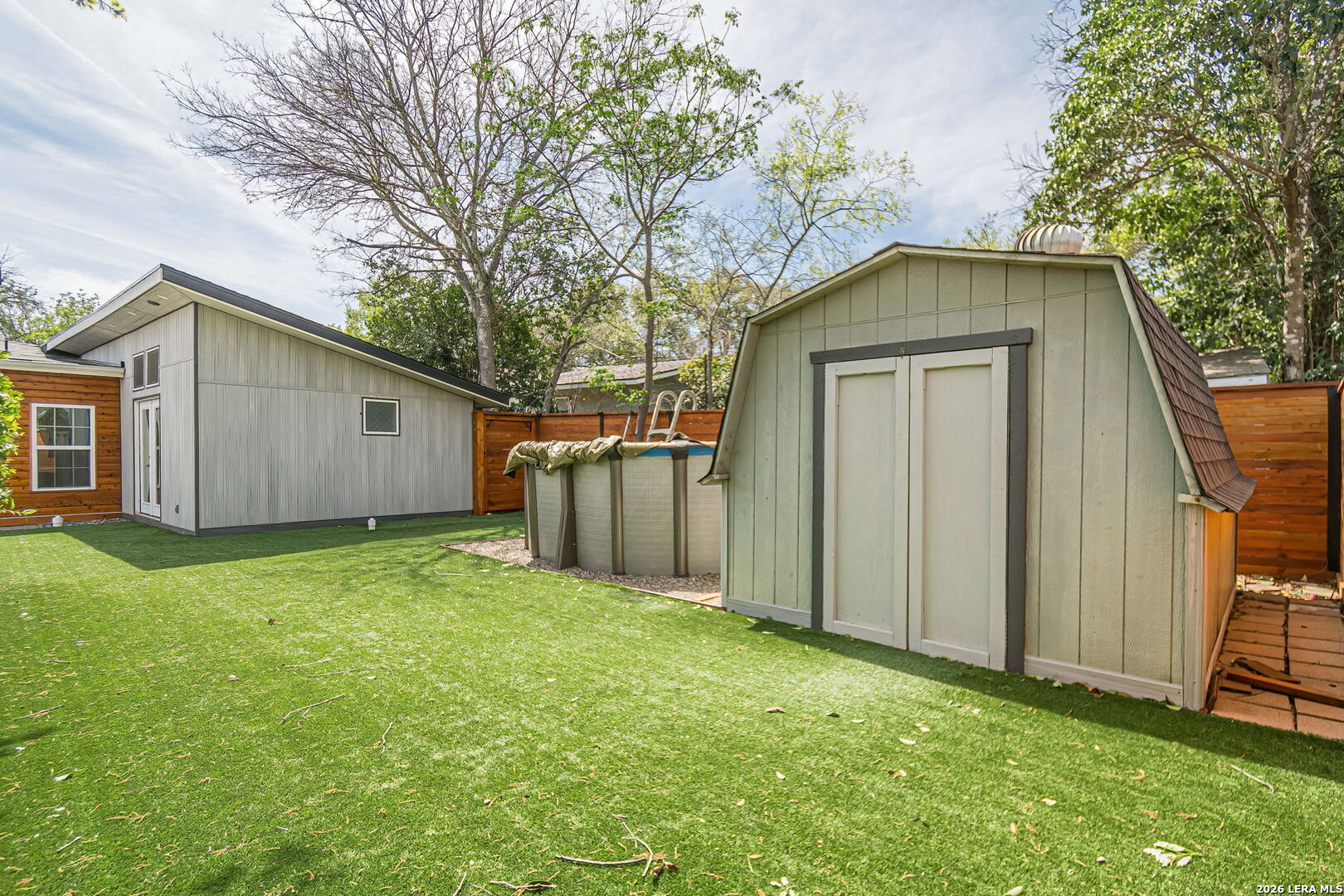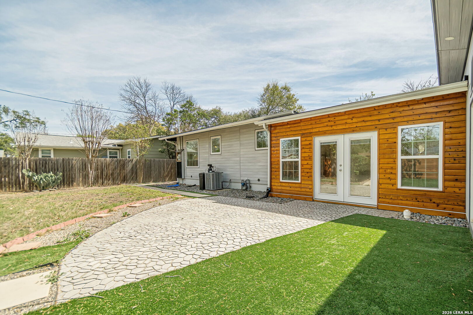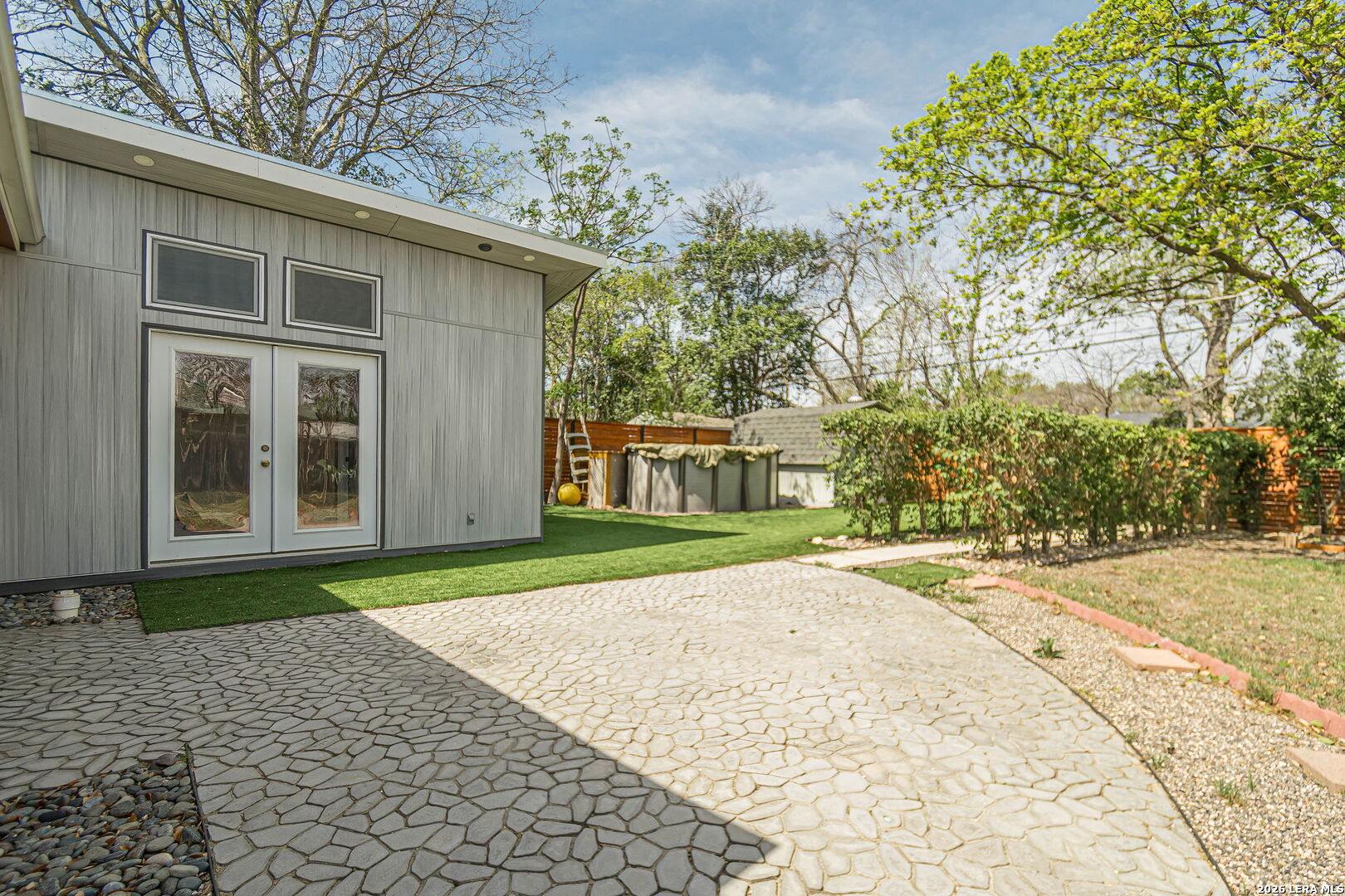 Extensively updated single-story home located in the highly sought-after Alamo Heights ISD, nestled in Terrell Heights. This home offers a smart, stylish layout paired with timeless curb appeal. Inside, refinished original hardwood floors and clean architectural lines define two spacious living areas, enhanced by new interior doors, baseboards, and abundant natural light from brand-new Pella and Andersen windows. The beautifully renovated kitchen features quartz countertops, custom cabinetry, brass hardware, stainless steel appliances, gas cooking, and heated floors. It opens seamlessly to the dining area and a secondary living space with direct access to the backyard-perfect for everyday living and entertaining. The home includes four well-sized bedrooms, highlighted by a generous primary suite with a custom closet, private outdoor access, and a remodeled ensuite bath complete with heated floors and a heated towel rack. The secondary bathroom has also been thoughtfully updated with modern tilework and stylish finishes. Step outside to a private backyard retreat featuring new cedar fencing, artificial turf, fresh landscaping, and a newly added above-ground pool with a deck-ideal for relaxing or hosting. Major system upgrades include new insulation, ductwork, electrical wiring, water softener, tankless water heater, French drains, composite siding, gutters, exterior lighting, patio and walkways, and a new driveway. A rare opportunity to own a move-in ready, fully updated home in one of San Antonio's most desirable school districts.