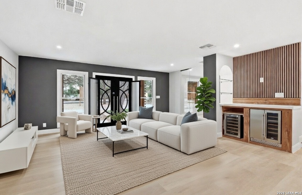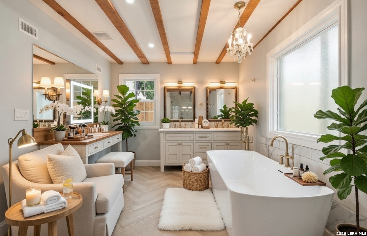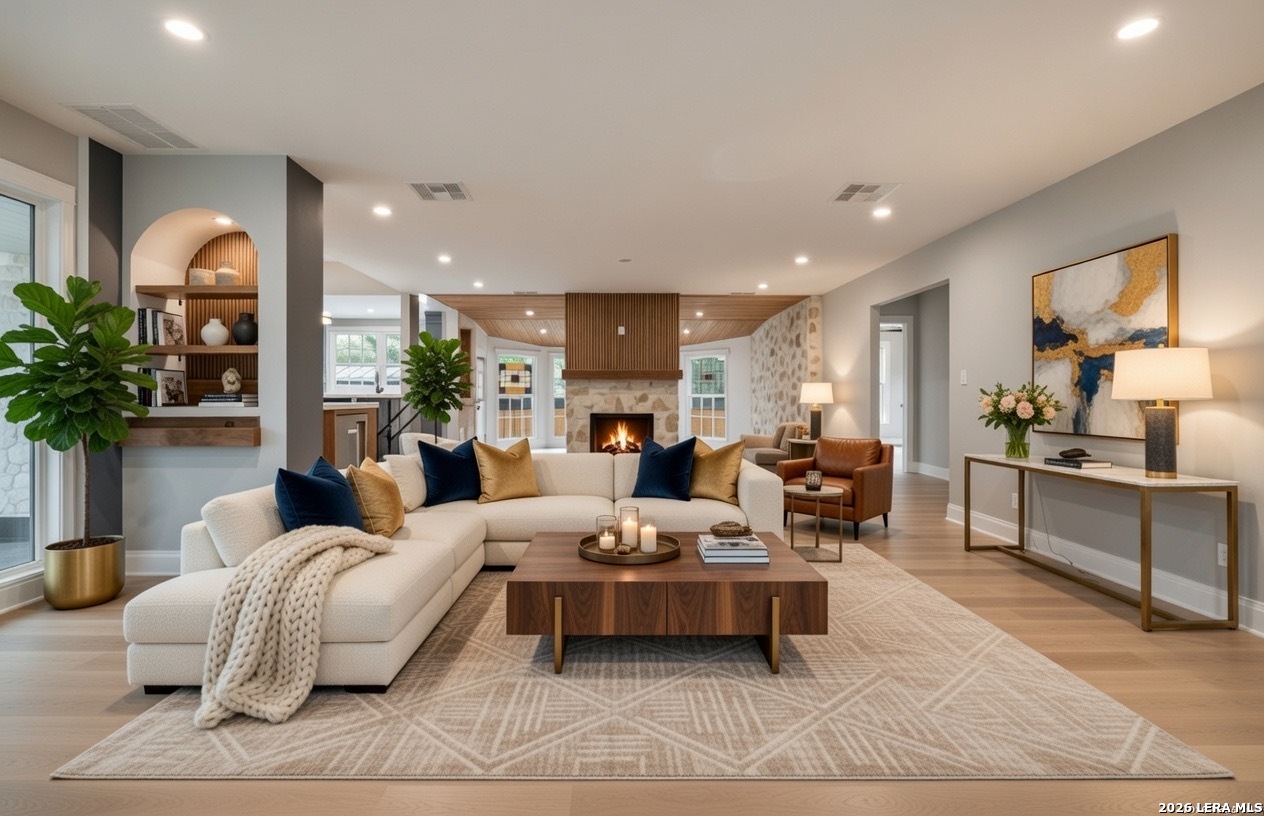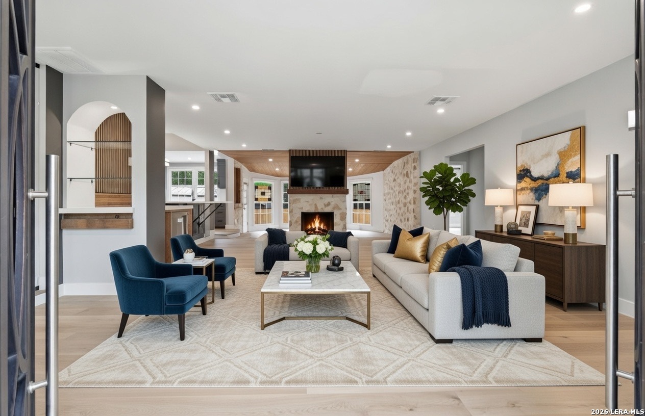 Rare Gem in Prestigious Alamo Heights Fully Reimagined 1930s Masterpiece Awaits Its Next Owner. Nestled in the heart of Alamo Heights, San Antonio's most coveted neighborhood of timeless elegance, top-tier schools, and sophisticated living, this stunning 1930s residence has been transformed into a show-stopping blend of historic soul and modern luxury. Spanning 3,720 sq ft total under the roof (including 3,320 sq ft of heated/cooled living space and a 400 sq ft garage), this visionary rebuild by a master builder honors its heritage while delivering uncompromising comfort and style. Authentic details shine: restored Texas rock walls, cedar siding, hand-carved moldings, original bay windows with intricate mosaic accents, and rich old-growth beams that exude warmth and durability-paired seamlessly with sleek contemporary finishes. Step inside to sun-drenched, open-concept living spaces bathed in natural light, crowned by elegant chandeliers and soaring wood ceilings that create an inviting, architectural wow factor. The chef's dream kitchen is built for effortless entertaining: premium stainless steel appliances, a high-powered gas cooktop with downdraft vent, durable concrete countertops, generous custom cabinetry, a built-in wine cooler, and clever integrated cigar storage. Retreat to the serene primary suite a true sanctuary with a spa-like bath featuring a deep soaking tub, frameless glass shower, dual vanities with gold accents, and a skylight equipped with automatic rain-sensor shades for effortless ambiance. Customize your dream primary closet from several builder-provided layout options tailored to your lifestyle. Flexible living abounds with four spacious bedrooms, three and a half baths, and a versatile flex room perfect for a home office, creative studio, or media haven complete with a hidden built-in gun safe behind a full-length mirror for discreet security. Upstairs, the fourth bedroom boasts its own private entrance and full bath, ideal as a guest suite, in-law quarters, or independent living space. Efficiency and intelligence meet luxury: full smart home integration (control HVAC, instant hot water heater, water softener fridge microwave/convection dishwasher cameras, and security from your phone), a durable metal roof, Rockwool & closed Cell spray insulation insulation for superior fire and sound resistance, fresh fencing, low-maintenance xeriscape front yard, and a tall garage ready for your lifted truck or collection. In one of San Antonio's most sought-after zip codes where demand outpaces supply and homes like this rarely hit the market this meticulously restored treasure offers the rare chance to own a piece of history reimagined for today's discerning buyer. Don't miss your opportunity-homes this exceptional in Alamo Heights move fast! Schedule your private tour today and experience the perfect fusion of heritage and high-end living in person. Contact us now to view this one-of-a-kind residence before it's gone!