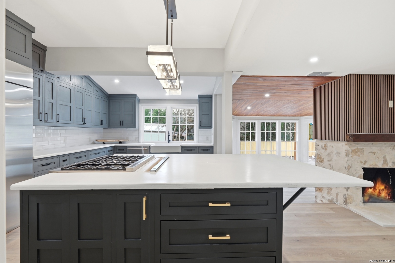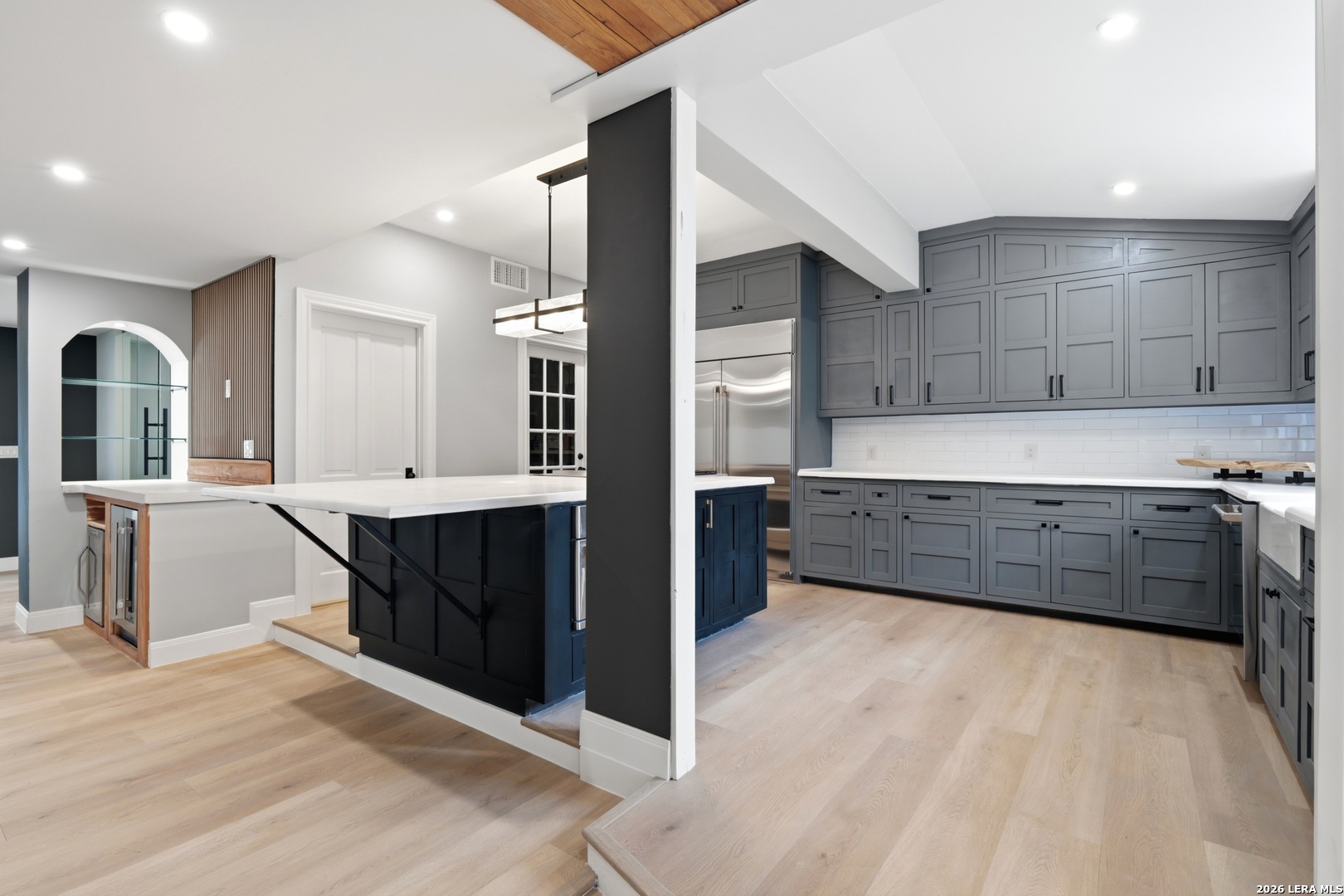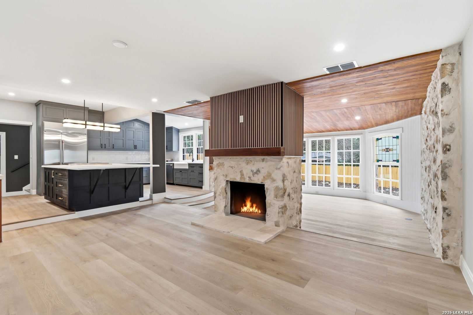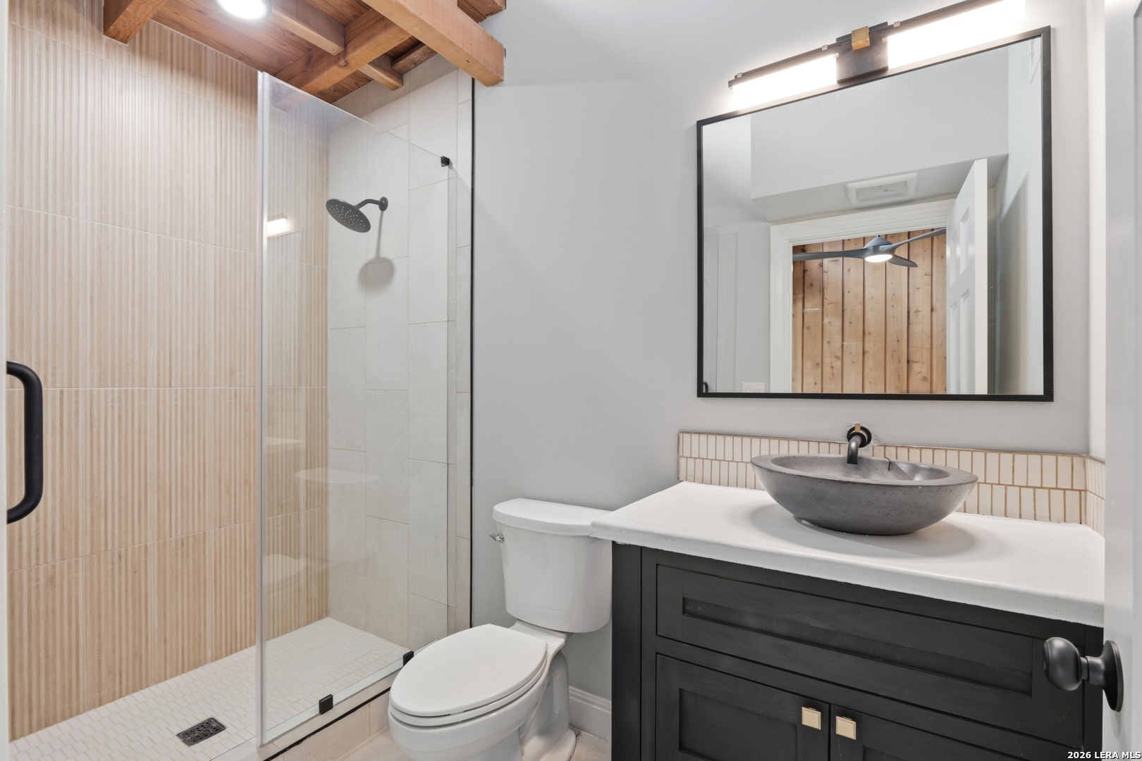 Rare Gem in Prestigious Alamo Heights Fully Reimagined 1930s Masterpiece Awaits Its Next Owner. Nestled in the heart of Alamo Heights, San Antonio's most coveted neighborhood of timeless elegance, top-tier schools, and sophisticated living, this stunning 1930s residence has been transformed into a show-stopping blend of historic soul and modern luxury. Spanning 3,720 sq ft total under the roof (including 3,320 sq ft of heated/cooled living space and a 400 sq ft garage), this visionary rebuild by a master builder honors its heritage while delivering uncompromising comfort and style. Authentic details shine: restored Texas rock walls, cedar siding, hand-carved moldings, original bay windows with intricate mosaic accents, and rich old-growth beams that exude warmth and durability-paired seamlessly with sleek contemporary finishes. Step inside to sun-drenched, open-concept living spaces bathed in natural light, crowned by elegant chandeliers and soaring wood ceilings that create an inviting, architectural wow factor. The chef's dream kitchen is built for effortless entertaining: premium stainless steel appliances, a high-powered gas cooktop with downdraft vent, durable concrete countertops, generous custom cabinetry, a built-in wine cooler, and clever integrated cigar storage. Retreat to the serene primary suite a true sanctuary with a spa-like bath featuring a deep soaking tub, frameless glass shower, dual vanities with gold accents, and a skylight equipped with automatic rain-sensor shades for effortless ambiance. Customize your dream primary closet from several builder-provided layout options tailored to your lifestyle. Flexible living abounds with four spacious bedrooms, three and a half baths, and a versatile flex room perfect for a home office, creative studio, or media haven complete with a hidden built-in gun safe behind a full-length mirror for discreet security. Upstairs, the fourth bedroom boasts its own private entrance and full bath, ideal as a guest suite, in-law quarters, or independent living space. Efficiency and intelligence meet luxury: full smart home integration (control HVAC, instant hot water heater, water softener fridge microwave/convection dishwasher cameras, and security from your phone), a durable metal roof, Rockwool & closed Cell spray insulation insulation for superior fire and sound resistance, fresh fencing, low-maintenance xeriscape front yard, and a tall garage ready for your lifted truck or collection. In one of San Antonio's most sought-after zip codes where demand outpaces supply and homes like this rarely hit the market this meticulously restored treasure offers the rare chance to own a piece of history reimagined for today's discerning buyer. Don't miss your opportunity-homes this exceptional in Alamo Heights move fast! Schedule your private tour today and experience the perfect fusion of heritage and high-end living in person. Contact us now to view this one-of-a-kind residence before it's gone!
