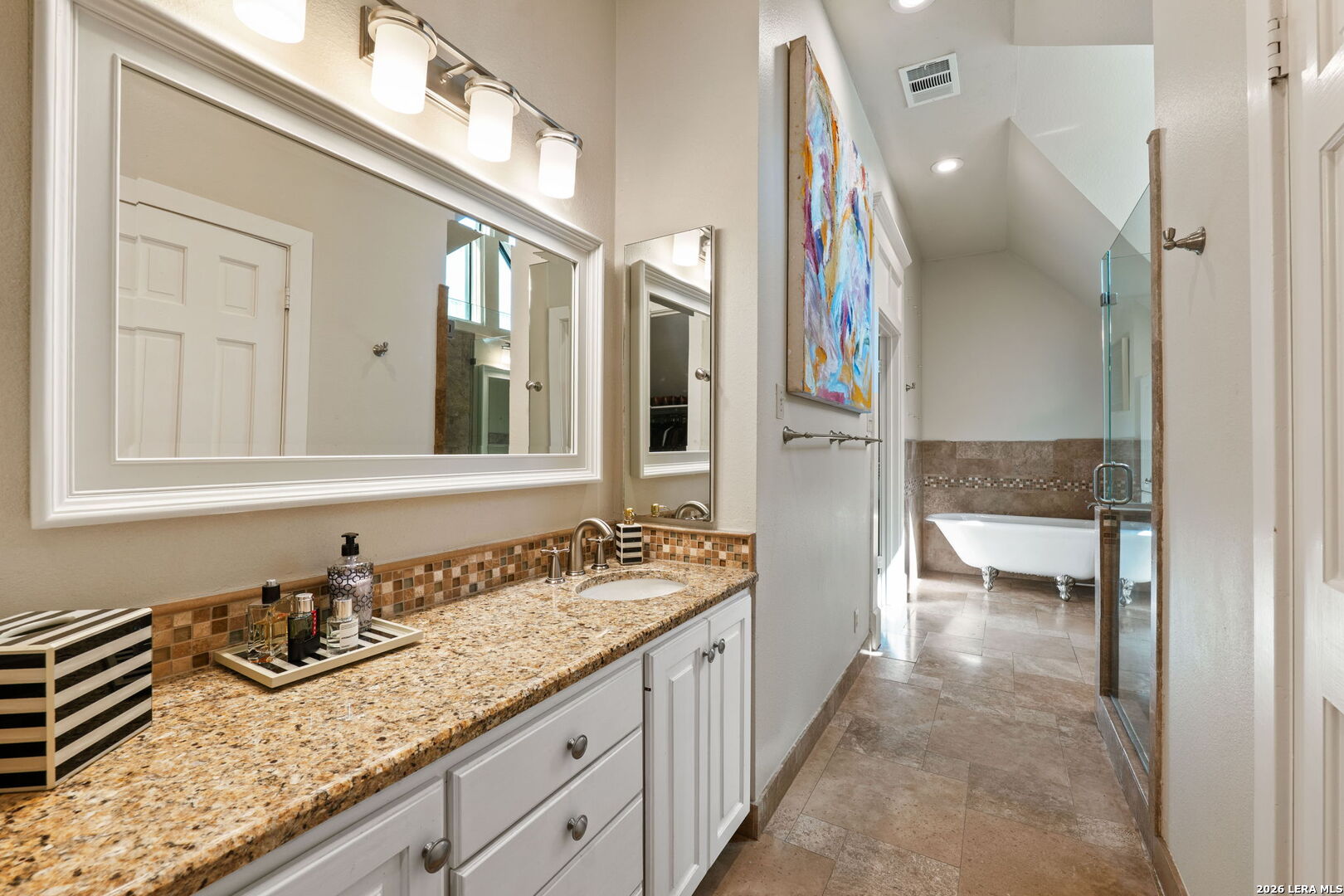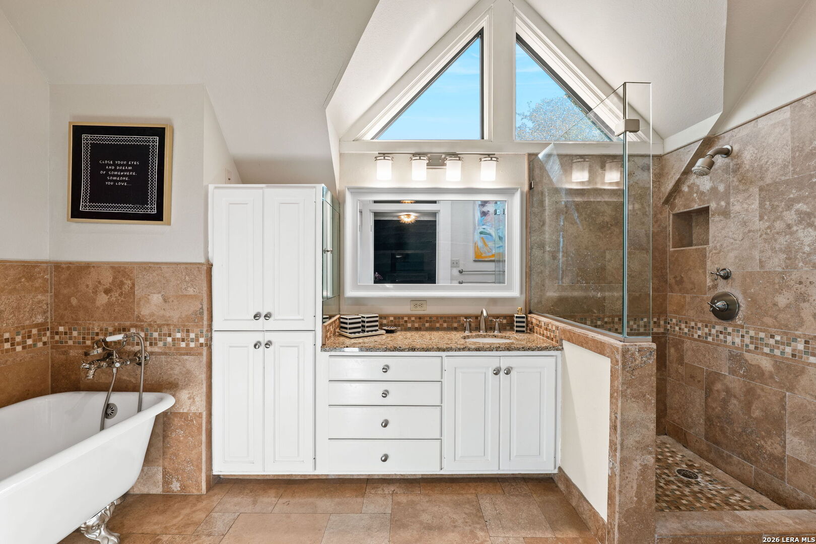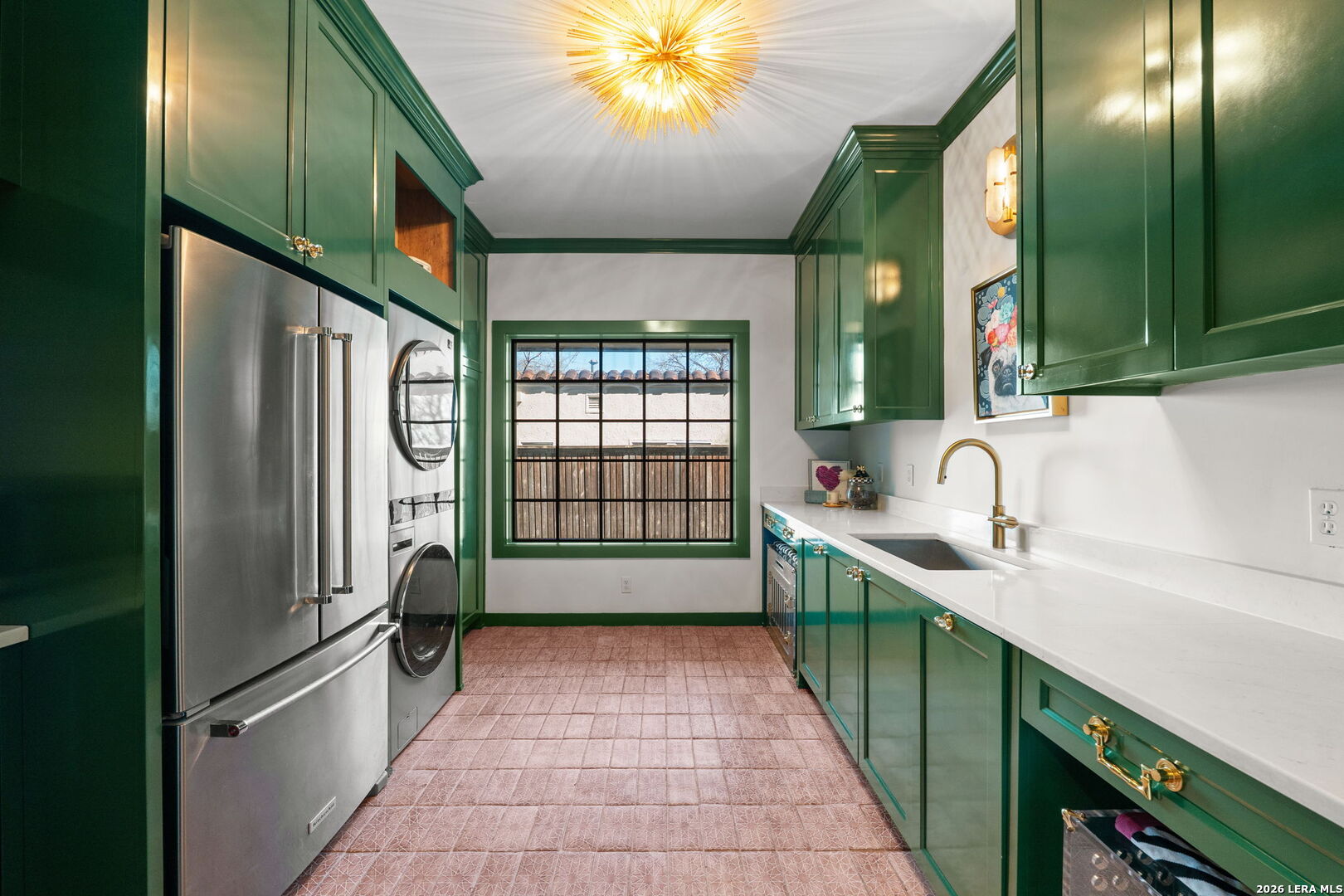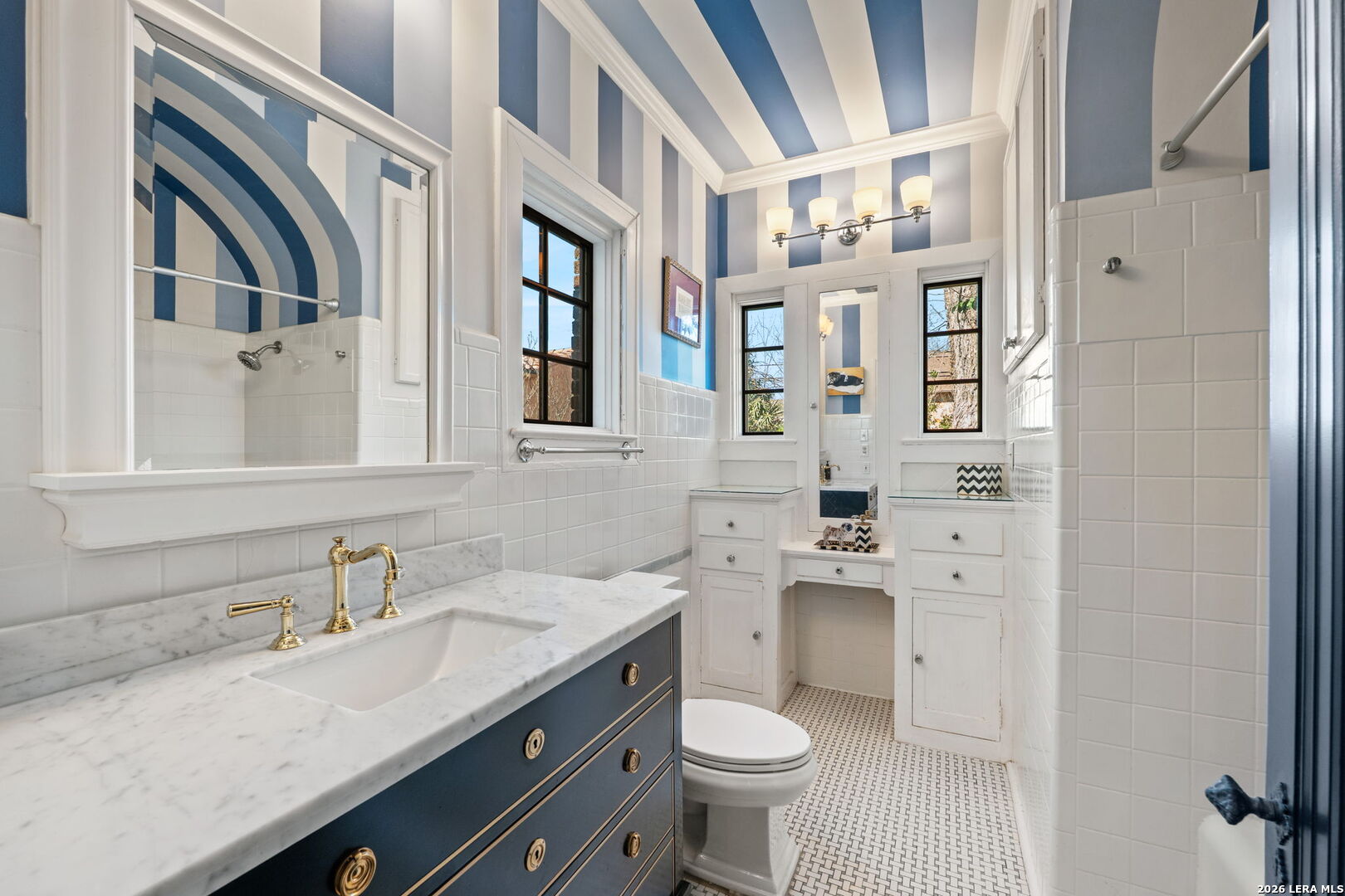 Step into the timeless charm of this 1930s English-cottage-style home, thoughtfully renovated to honor its storybook stone architecture while introducing luxurious modern amenities. The kitchen underwent a complete transformation in 2023 and now serves as the true heart of the home-featuring a spacious island for gathering, custom Palmer Todd cabinetry, Wolf 5-burner gas cooktop, steam-feature convection oven, built-in SubZero refrigerator with freezer drawers, marble countertops with full-height marble backsplash, dual sinks, and new hardwood flooring. Extensive exterior enhancements elevate both curb appeal and longevity: new Pella windows, HardiPlank in place of all exterior wood, repointed masonry, and a redesigned backyard with artificial turf, flagstone pavers, drip irrigation, and lush landscaping. The private, gated yard creates a welcoming sanctuary for outdoor dining and entertaining. Updates include smooth wall finishes, refinished hardwoods, new crown and trim around the updated windows, and a beautifully reimagined downstairs bedroom that now functions as a custom utility/mudroom with abundant storage, cabinetry, stackable washer/dryer connections, and space for an additional refrigerator. The floor provides exceptional flexibility with two spacious living areas, a formal dining room, and two bedrooms with two full baths on the main level. The expansive upstairs primary retreat features a fireplace, study, walk-out balcony, and a spa-inspired bath with double vanities, walk-in shower, clawfoot tub, and a generous closet. An additional upstairs room offers endless possibilities-a nursery, second office, or even a second walk-in closet. A detached two-car garage includes adjoining guest suite with a full bath-ideal for visitors, multigenerational living, or a private studio. Located in the heart of Olmos Park, this home offers unbeatable proximity to downtown, The Pearl, the airport, and the shops and restaurants along the McCullough corridor-placing the best of San Antonio just moments from your doorstep.