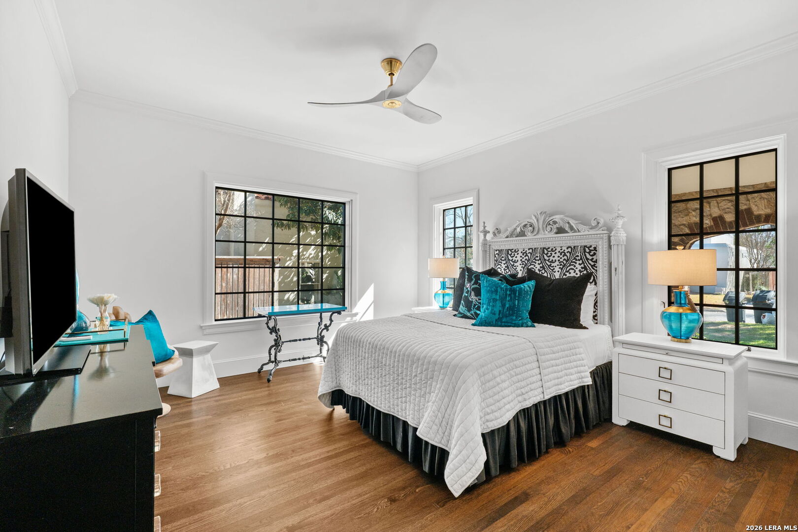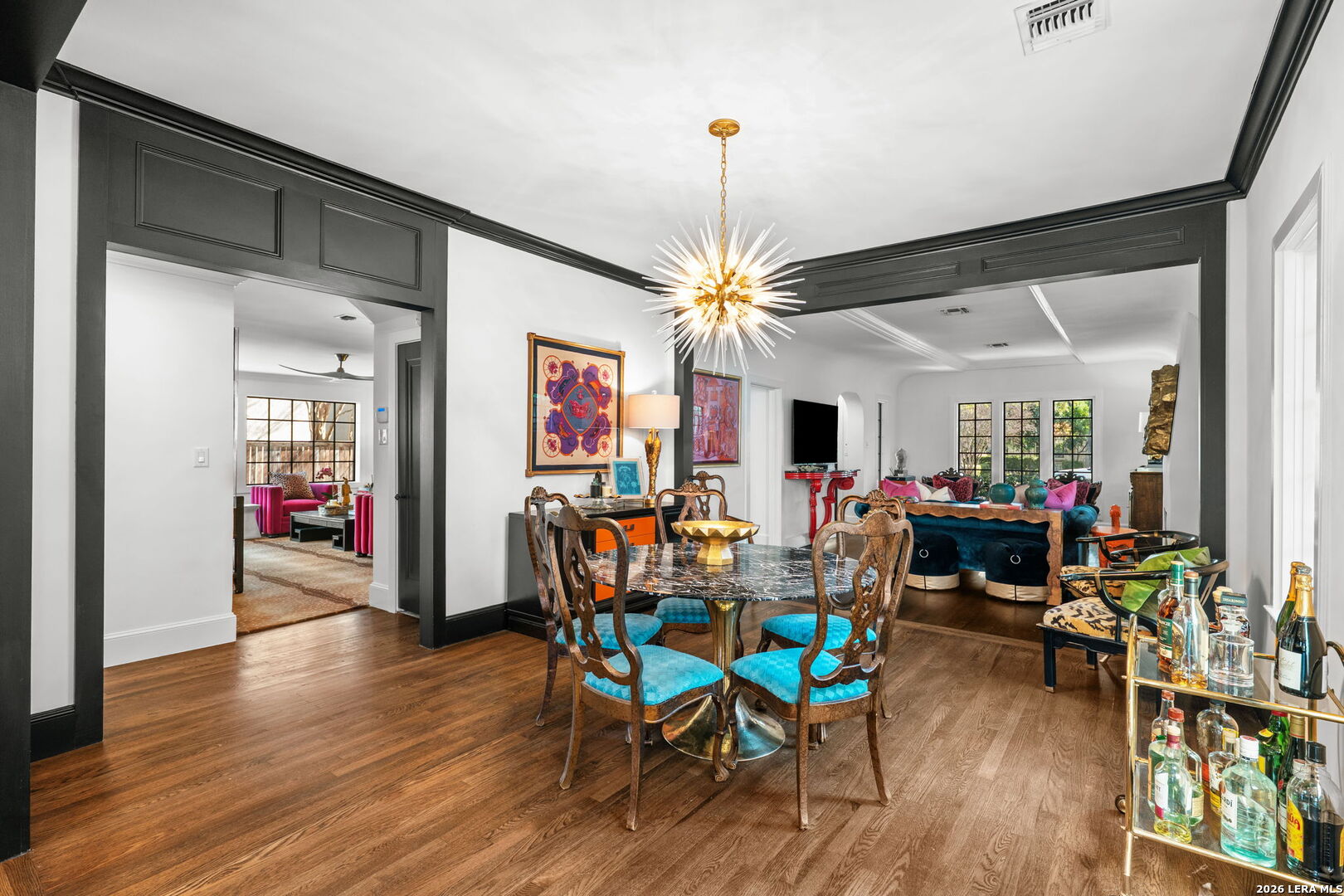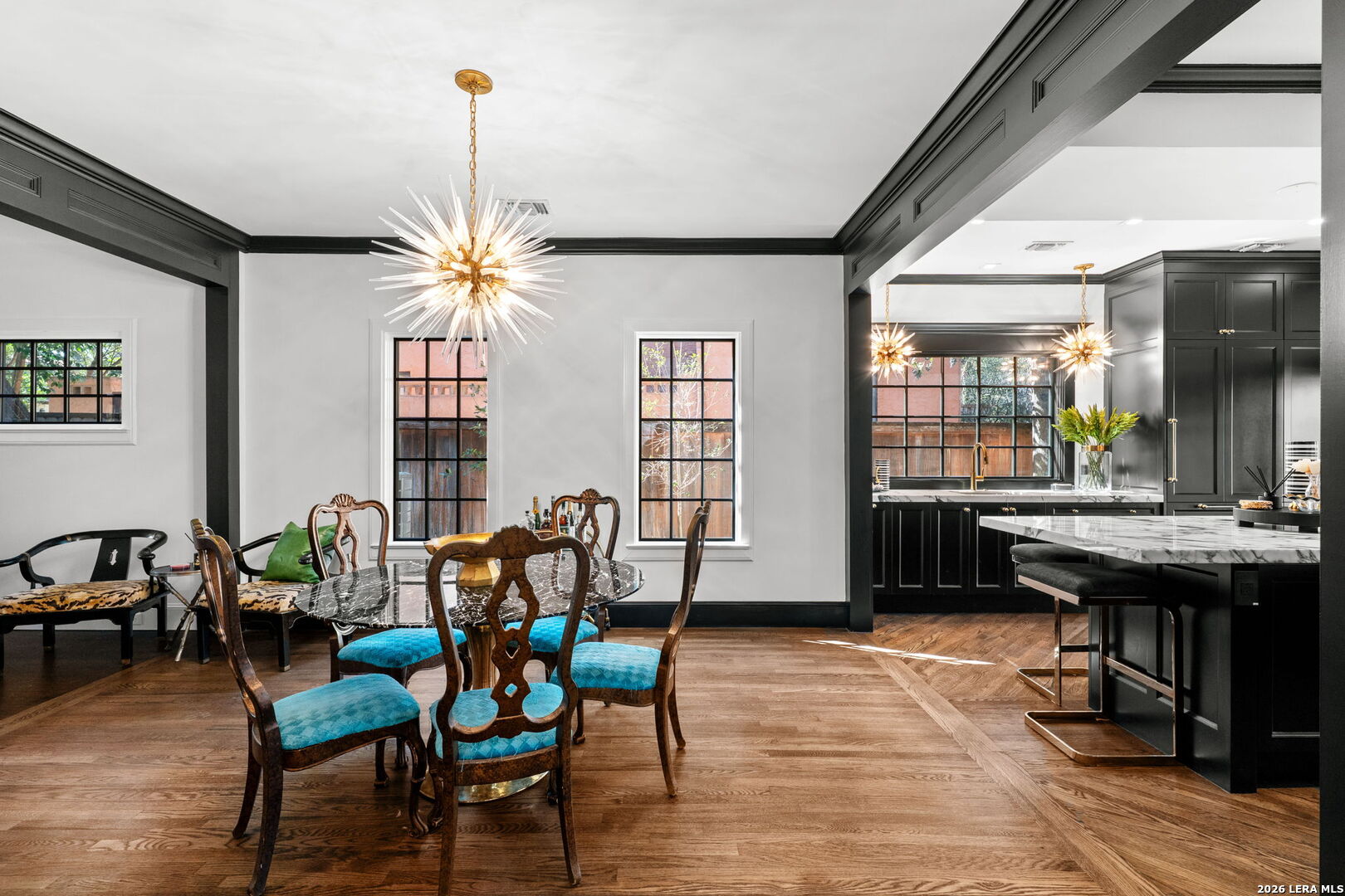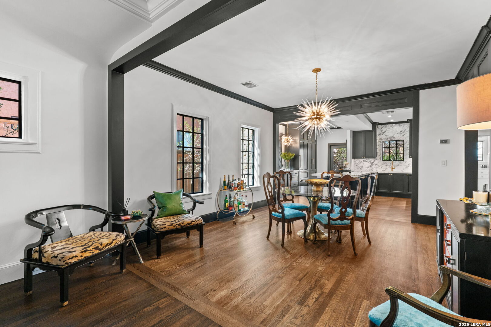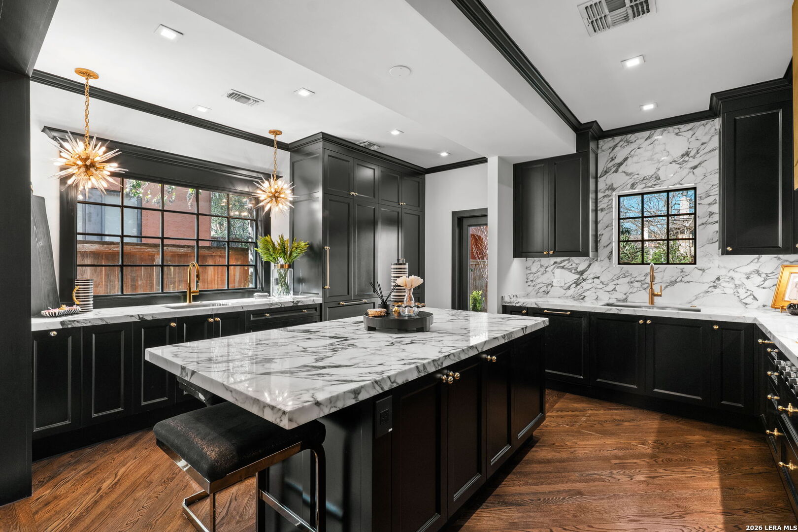 Step into the timeless charm of this 1930s English-cottage-style home, thoughtfully renovated to honor its storybook stone architecture while introducing luxurious modern amenities. The kitchen underwent a complete transformation in 2023 and now serves as the true heart of the home-featuring a spacious island for gathering, custom Palmer Todd cabinetry, Wolf 5-burner gas cooktop, steam-feature convection oven, built-in SubZero refrigerator with freezer drawers, marble countertops with full-height marble backsplash, dual sinks, and new hardwood flooring. Extensive exterior enhancements elevate both curb appeal and longevity: new Pella windows, HardiPlank in place of all exterior wood, repointed masonry, and a redesigned backyard with artificial turf, flagstone pavers, drip irrigation, and lush landscaping. The private, gated yard creates a welcoming sanctuary for outdoor dining and entertaining. Updates include smooth wall finishes, refinished hardwoods, new crown and trim around the updated windows, and a beautifully reimagined downstairs bedroom that now functions as a custom utility/mudroom with abundant storage, cabinetry, stackable washer/dryer connections, and space for an additional refrigerator. The floor provides exceptional flexibility with two spacious living areas, a formal dining room, and two bedrooms with two full baths on the main level. The expansive upstairs primary retreat features a fireplace, study, walk-out balcony, and a spa-inspired bath with double vanities, walk-in shower, clawfoot tub, and a generous closet. An additional upstairs room offers endless possibilities-a nursery, second office, or even a second walk-in closet. A detached two-car garage includes adjoining guest suite with a full bath-ideal for visitors, multigenerational living, or a private studio. Located in the heart of Olmos Park, this home offers unbeatable proximity to downtown, The Pearl, the airport, and the shops and restaurants along the McCullough corridor-placing the best of San Antonio just moments from your doorstep.