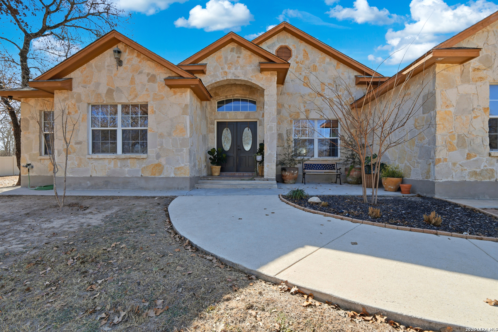 **OPEN HOUSE SUNDAY 3/15/2026 2-5PM** Texas Hill Country-inspired home on 1.34 acres in Natalia, just outside San Antonio. This unique property offers a thoughtfully designed, highly functional layout with generously sized bedrooms, each featuring its own private bathroom, a rare and highly desirable feature. Open, light-filled living spaces blend timeless character with tasteful updates throughout, creating a warm and inviting atmosphere. The kitchen opens seamlessly to the living area and features a charming breakfast nook, perfect for enjoying morning coffee while overlooking the peaceful outdoor setting. An additional flex space offers endless possibilities and can be used as a home office, extra bedroom, reading nook, or private library. Situated on 1.34 acres, the property provides ample room for outdoor living, future enhancements, or personalization, all while offering privacy, tranquility, and endless potential in a serene Hill Country setting.