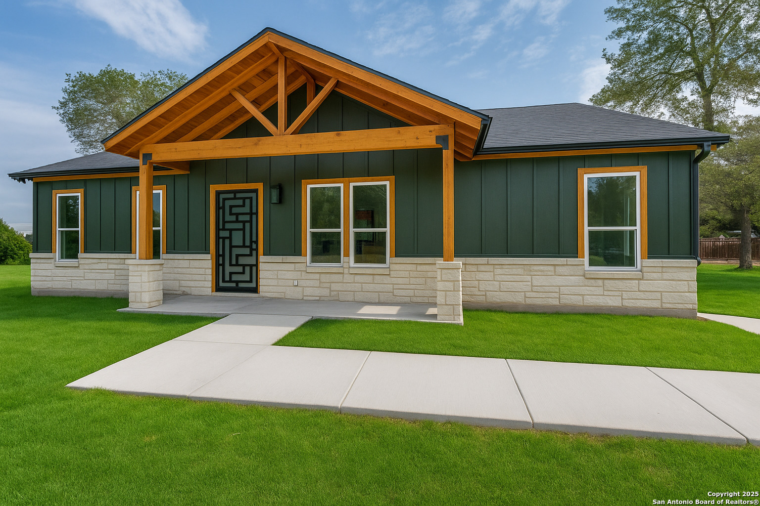 Welcome to this new custom-built 3 bedroom, 2 bath home, ideally situated on a spacious .42-acre lot in Sandy Oak's Waterwood Subdivision.The home immediately impresses with its unique front door imported from Mexico, setting the tone for the thoughtful craftsmanship and custom details throughout. Inside, the open-concept design features towering 12-foot ceilings in both the living area and kitchen, creating a bright and expansive atmosphere. The kitchen is a chef's dream, boasting sleek granite countertops and modern fixtures, perfect for cooking and entertaining. Beautiful accent walls add character and warmth, blending perfectly with the home's modern aesthetic. All appliances are included! Outside, the property is enhanced by stylish step lights and elegant soffit lighting, offering both curb appeal and a welcoming glow. This home is a perfect blend of luxury and functionality, with ample space for indoor and outdoor living.USDA and $0 Down Programs available through our preferred lender. Seller is offering $10,000 in closing concessions!!Contact your realtor today to add it to your list of showings
