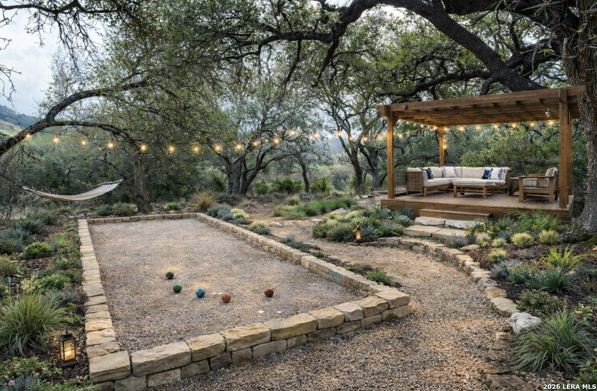 Experience HILL COUNTRY living at its best in this inviting 4-bedroom, 3.5-bath home with game room nestled on a huge 2.02 ACRE private lot in the coveted River Crossing community. The backyard offers multiple outdoor living spaces nestled among mature oaks. VIRTUALLY ENHANCED PHOTOS are included to help you imagine the possibilities if you don't prefer the rugged beauty of the hill country. This huge lot offers room for a future pool, a fire pit terrace, a bocce ball court or even a pickleball court for entertaining, and peaceful seating areas that capture the beauty of the Texas Hill Country. Shaded by MAJESTIC OAKS and set back off the road, this residence offers the perfect balance of PRIVACY, comfort, and space to entertain. Step inside to discover a bright, OPEN floor plan with high ceilings. You will be wowed by the WALL OF WINDOWS with gorgeous HILL COUNTRY VIEWS. Features a corner LIMESTONE FIREPLACE in the oversized great room. The kitchen, open to the great room features stainless appliances, smooth radiant heat range, abundant counter and cabinet space, and walk in pantry. With both a breakfast nook and dining room, this home is perfect for memory making gatherings of all sizes. The primary suite is located on the main floor with a spacious WALK-IN CLOSET and a private bath featuring TWO VANITIES , a soaking TUB and separate SHOWER. Two additional bedrooms and a full bath are also downstairs, each with large walk in closets, and the upstairs retreat includes a large game/bonus room, fourth bedroom with a double closet, and full bath is ideal for guests, teens, or a private in-law suite. (Plumbing access in the second downstairs bedroom also allows for easy creation of a second kitchen or FULL SUITE CONVERSION OPTION.) Outside, you are in for a treat! Enjoy peaceful Hill Country mornings and STARRY NIGHTS on the EXPANSIVE COVERED PATIO and DECK overlooking the OAK-STUDDED YARD. Expansive decked attic area for added storage This home has been well taken care of with regular HVAC and septic service for peace of mind. The oversized side-entry garage offers extra storage and workspace, completing this move-in-ready home. Located in River Crossing, a premier golf course and river access community featuring a sports park, tennis, and clubhouse, this property delivers the lifestyle, space, and flexibility you've been searching for. (Extra fees apply for the country club)