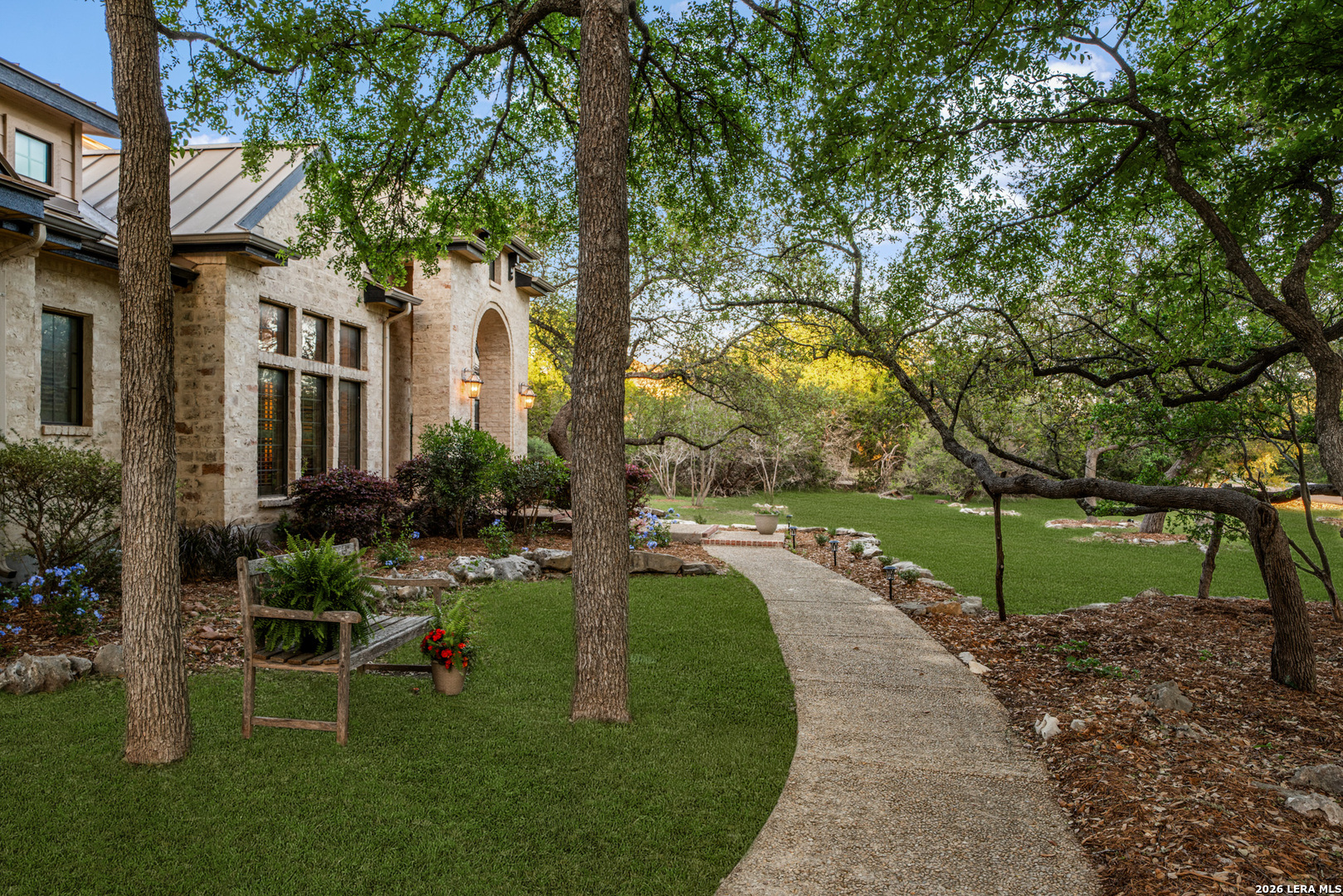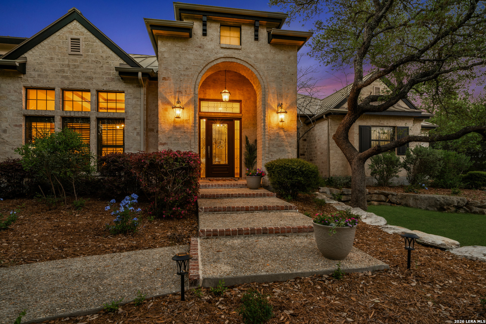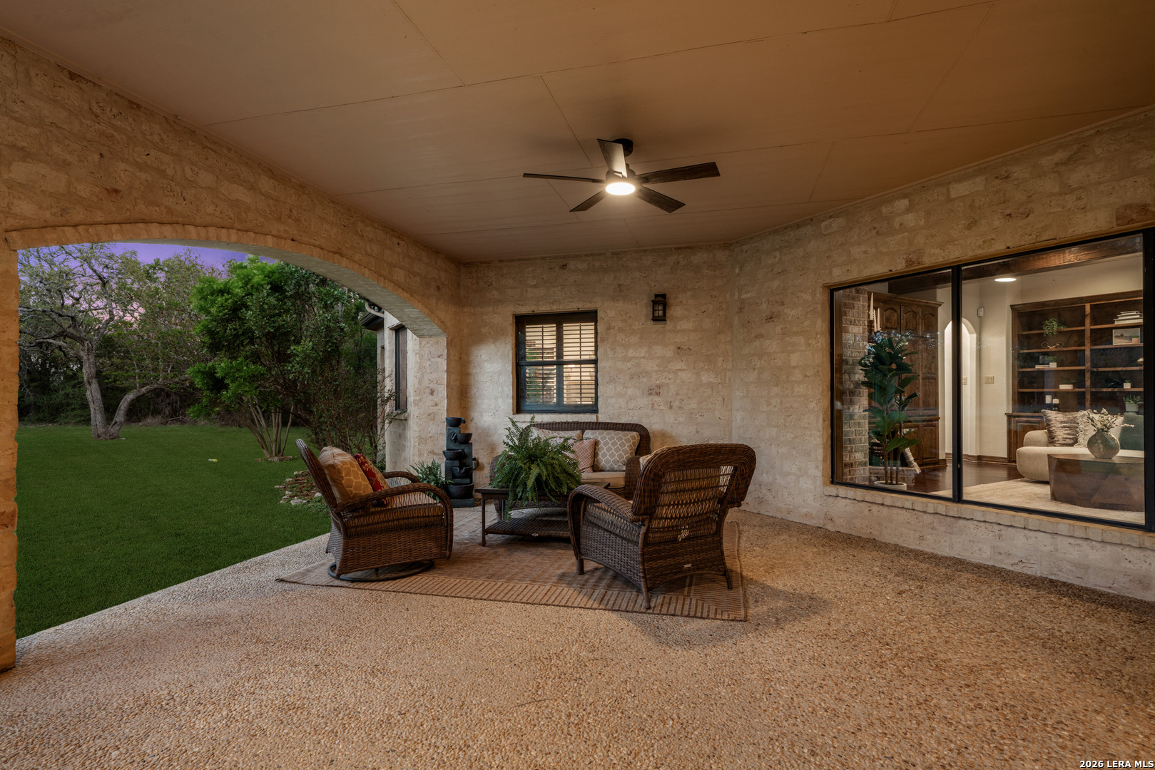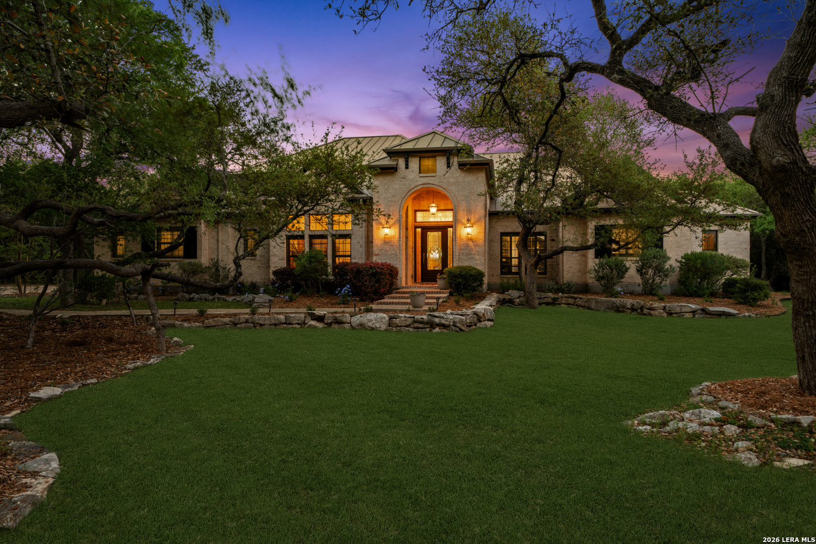 Recently updated and refreshed, this exceptional Hill Country residence in the prestigious Fossil Ridge community offers the perfect balance of peaceful, private living and everyday convenience. Set on a picturesque 1.26-acre homesite shaded by mature oaks, this single-story home by Harry Finigan Custom Homes features over 4,200 square feet of thoughtfully designed living space with a warm, inviting feel throughout. Natural light fills the interiors, highlighting timeless architectural details including wide plank wood floors, custom built-ins, and three striking stone fireplaces. Thoughtfully updated modern lighting throughout adds a refined, cohesive ambiance, enhancing each space while complementing the home's natural warmth and character. The open-concept design flows effortlessly, creating an ideal setting for both relaxed daily living and elegant entertaining. At the heart of the home, the chef's kitchen has been tastefully refreshed with new quartz countertops, offering both beauty and functionality. Generous prep space, quality appliances, and a charming breakfast area with its own fireplace create an inviting setting for gatherings both large and small. The private owner's retreat provides a peaceful escape with a cozy sitting area, fireplace, and spa-inspired bath featuring updated fixtures, while three additional bedrooms, a dedicated study, formal dining room, and versatile flex/game room offer space to live, work, and unwind with ease. Outdoors, a covered patio invites you to slow down and enjoy the surrounding natural beauty, with expansive grounds offering endless possibilities for relaxation or recreation. Here, quiet mornings and serene evenings are part of everyday life, yet you remain just minutes from top-rated NEISD schools, the JW Marriott, dining, shopping, medical facilities and easy access to Highway 281. Blending thoughtful updates, timeless design, and a setting that feels both private and connected, this home offers a rare opportunity to enjoy refined Hill Country living at an exceptional value.