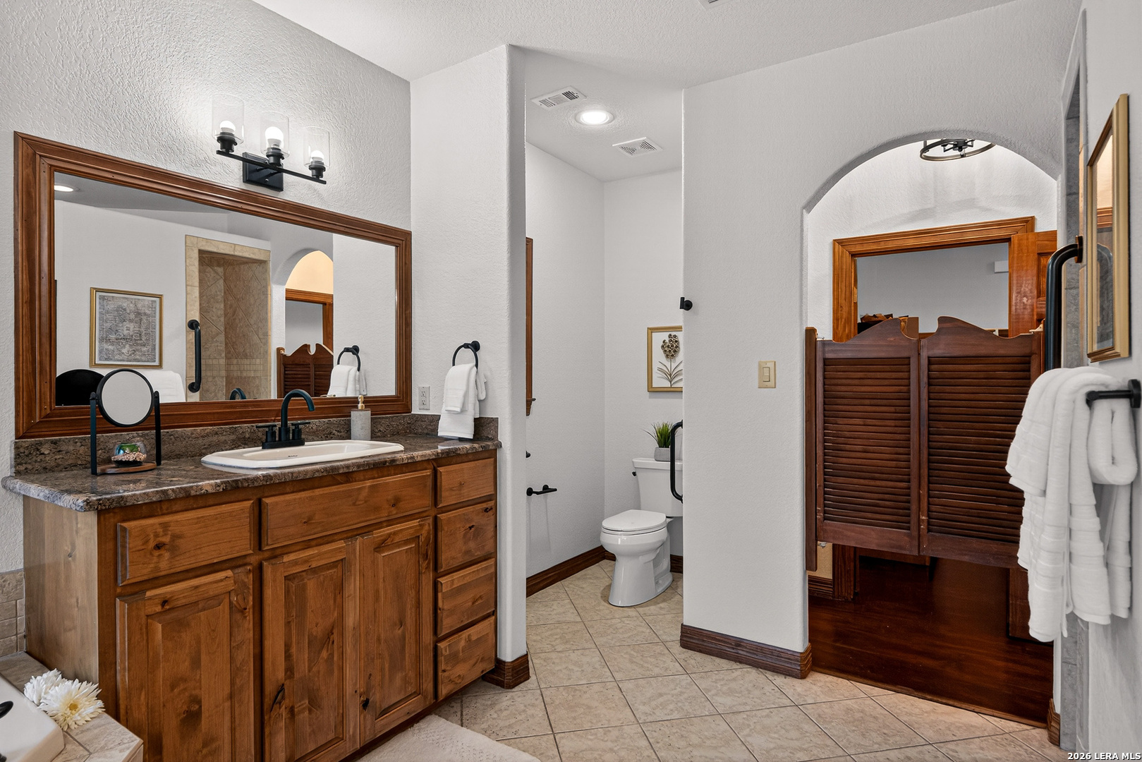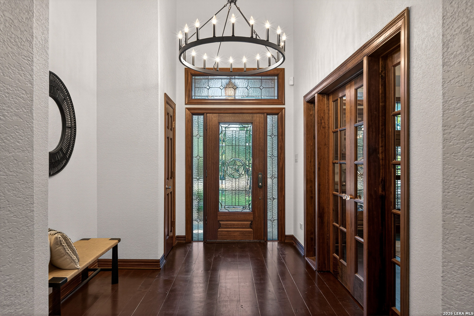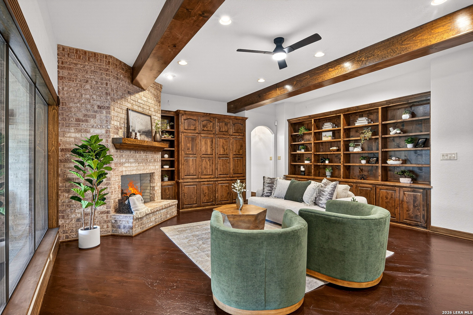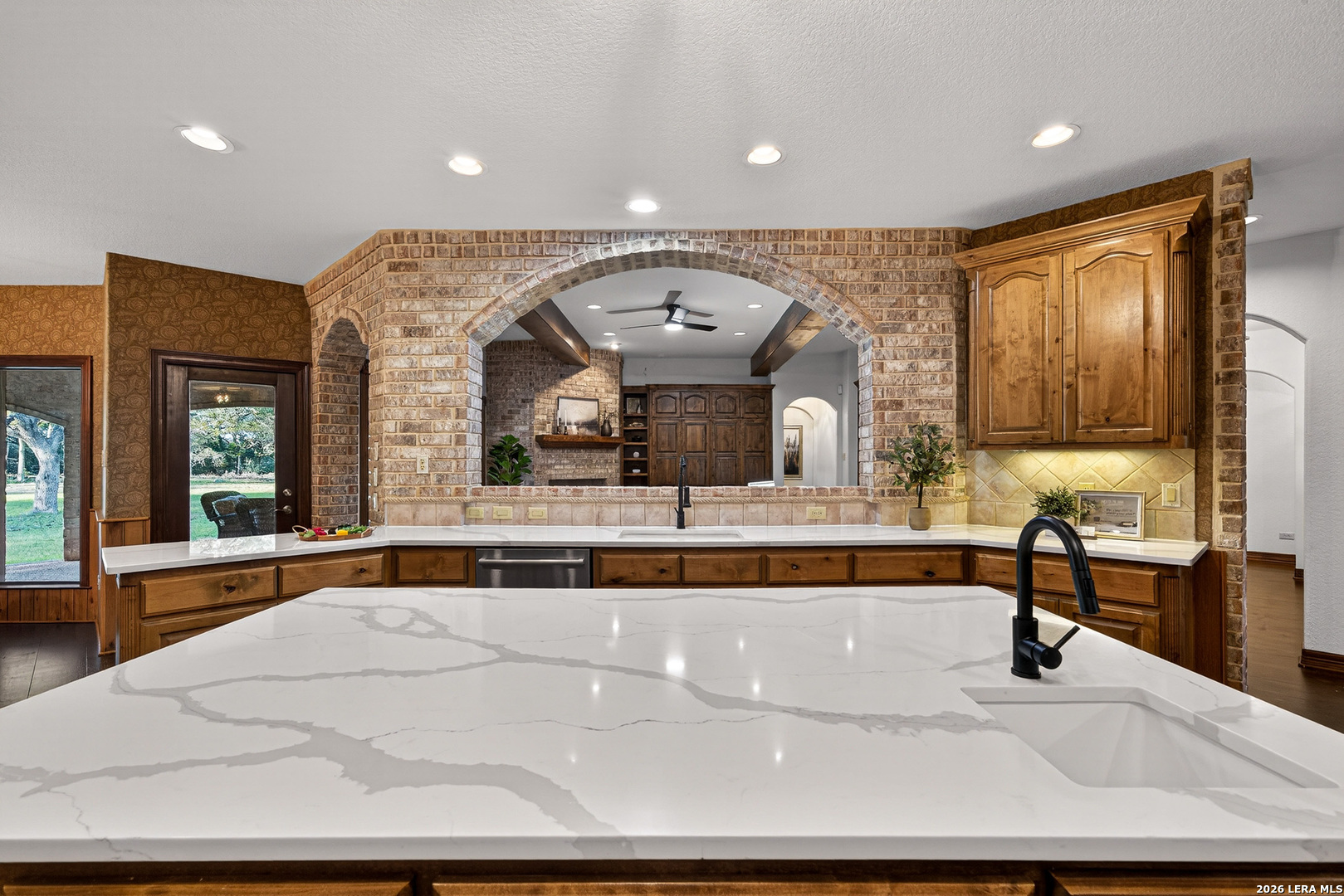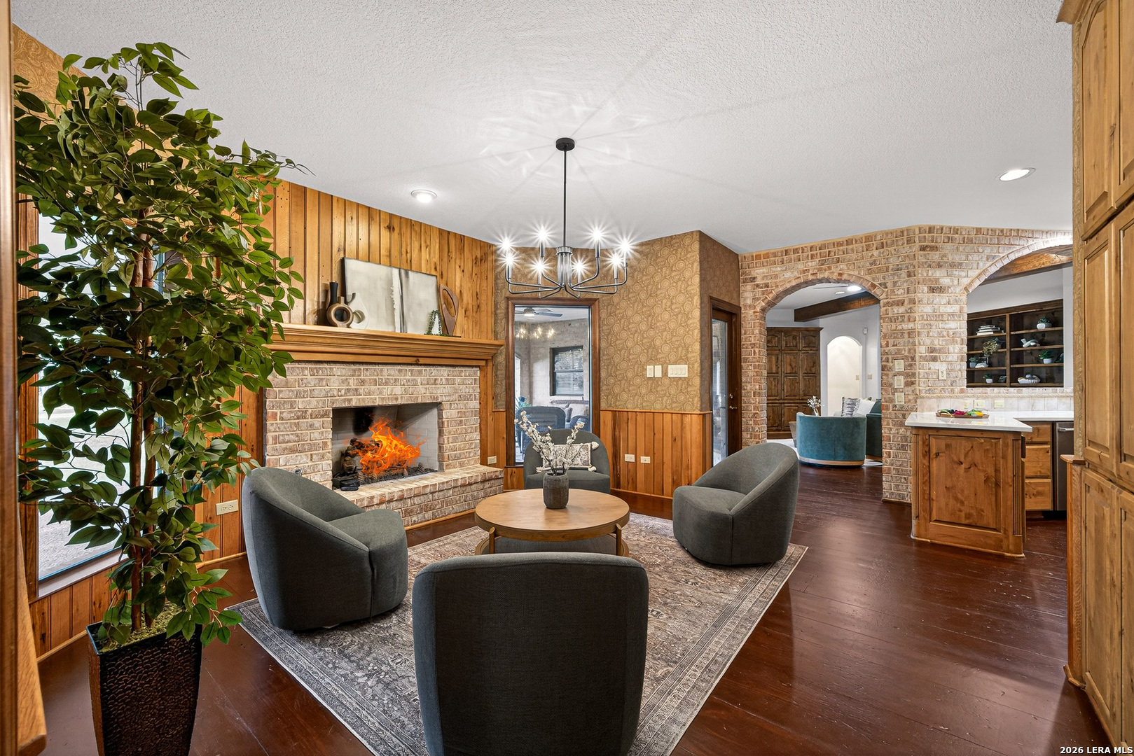 Recently updated and refreshed, this exceptional Hill Country residence in the prestigious Fossil Ridge community offers the perfect balance of peaceful, private living and everyday convenience. Set on a picturesque 1.26-acre homesite shaded by mature oaks, this single-story home by Harry Finigan Custom Homes features over 4,200 square feet of thoughtfully designed living space with a warm, inviting feel throughout. Natural light fills the interiors, highlighting timeless architectural details including wide plank wood floors, custom built-ins, and three striking stone fireplaces. Thoughtfully updated modern lighting throughout adds a refined, cohesive ambiance, enhancing each space while complementing the home's natural warmth and character. The open-concept design flows effortlessly, creating an ideal setting for both relaxed daily living and elegant entertaining. At the heart of the home, the chef's kitchen has been tastefully refreshed with new quartz countertops, offering both beauty and functionality. Generous prep space, quality appliances, and a charming breakfast area with its own fireplace create an inviting setting for gatherings both large and small. The private owner's retreat provides a peaceful escape with a cozy sitting area, fireplace, and spa-inspired bath featuring updated fixtures, while three additional bedrooms, a dedicated study, formal dining room, and versatile flex/game room offer space to live, work, and unwind with ease. Outdoors, a covered patio invites you to slow down and enjoy the surrounding natural beauty, with expansive grounds offering endless possibilities for relaxation or recreation. Here, quiet mornings and serene evenings are part of everyday life, yet you remain just minutes from top-rated NEISD schools, the JW Marriott, dining, shopping, medical facilities and easy access to Highway 281. Blending thoughtful updates, timeless design, and a setting that feels both private and connected, this home offers a rare opportunity to enjoy refined Hill Country living at an exceptional value.