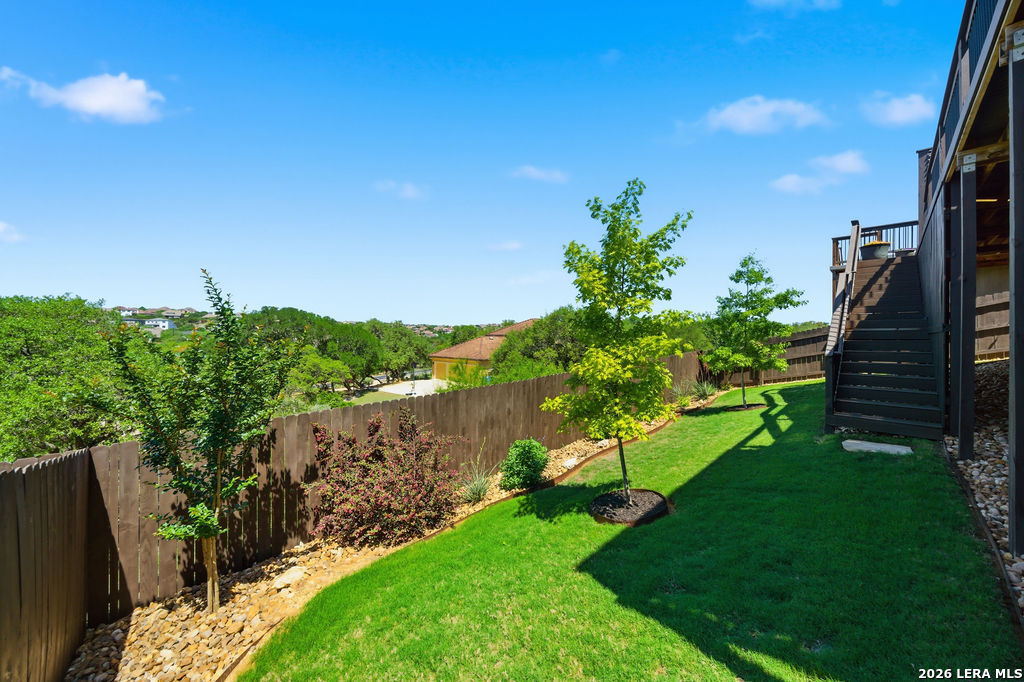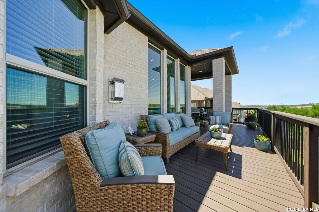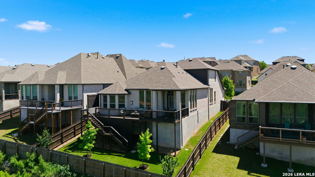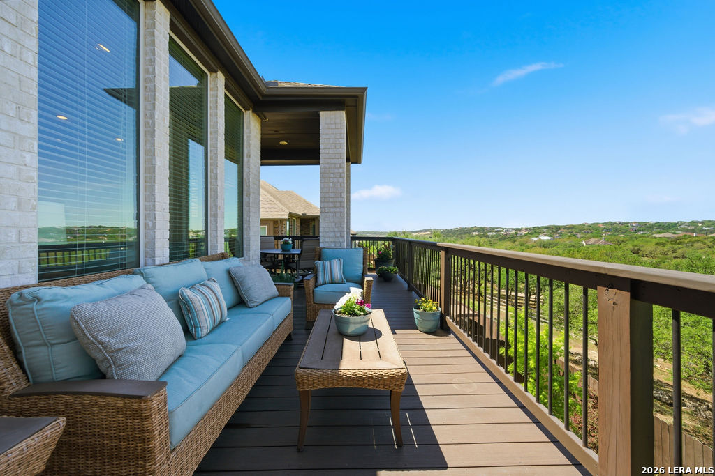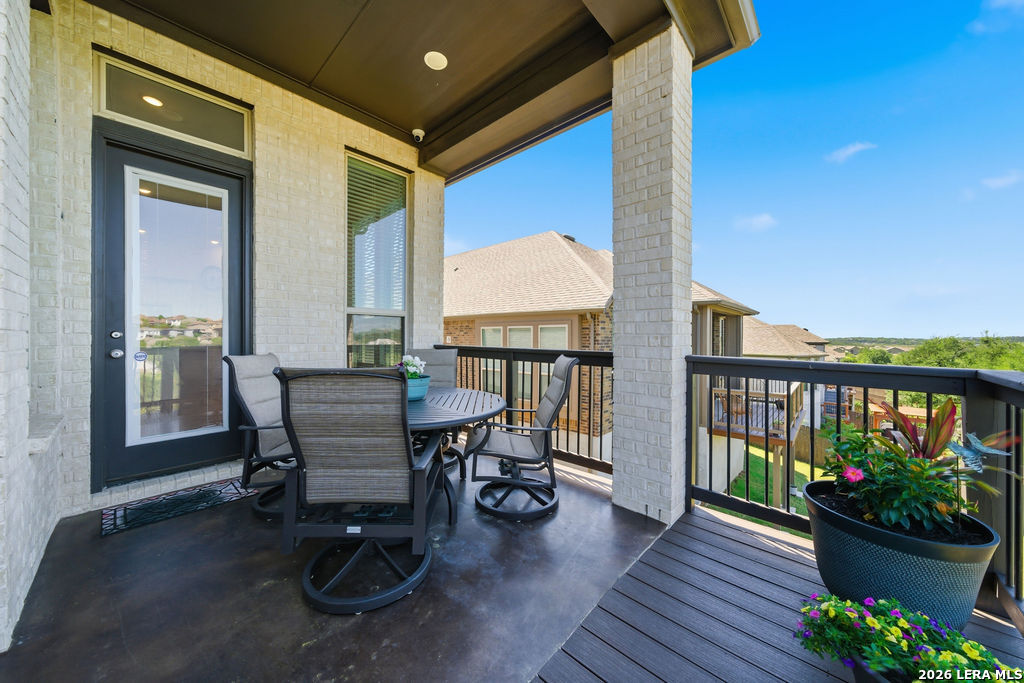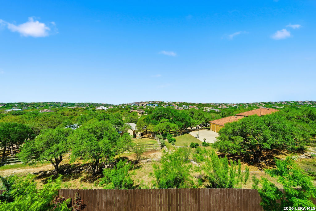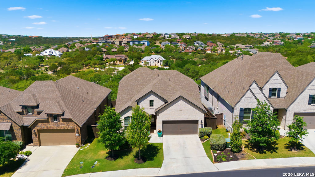 EPIC SUNSET VIEWS! Many luxury upgrades in this ONE AND A HALF STORY Highland Home. This move in ready home has it all and more! The spacious floorplan includes 4 bedrooms and 3 bathrooms with 3 car garage plus a dedicated office space. You'll love the open layout with high ceilings in the main living area. The floor to ceiling stone fireplace is amazing. Imagine yourself cooking in the fabulous kitchen with upgraded cabinets, farmhouse sink, built in oven, and 5 burner gas stove. The oversized granite island seats 4 with lots of cabinet space. Private study/office has custom built in shelving for the avid reader. Relax in your owners suite with captivating sunset views bow window detail. The spa like master bath features oversized vanity, his and hers sinks, as well as walk in shower and garden tub. Don't miss the expanded covered patio and deck with gas hook up. Enjoy the evening breeze and summer BBQ with hill country views. Upstairs you will find the perfect media/game room or "man cave". Additional bedroom and bath upstairs are perfect for teens, guests or family. This is a wonderful opportunity to be in a great location near restaurants, grocery stores, and entertainment. Coveted NEISD schools. Welcome Home!