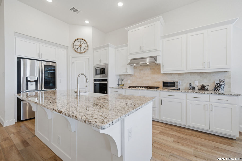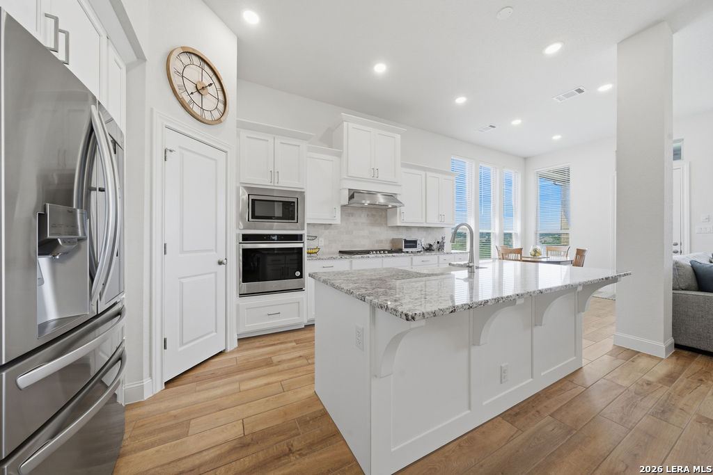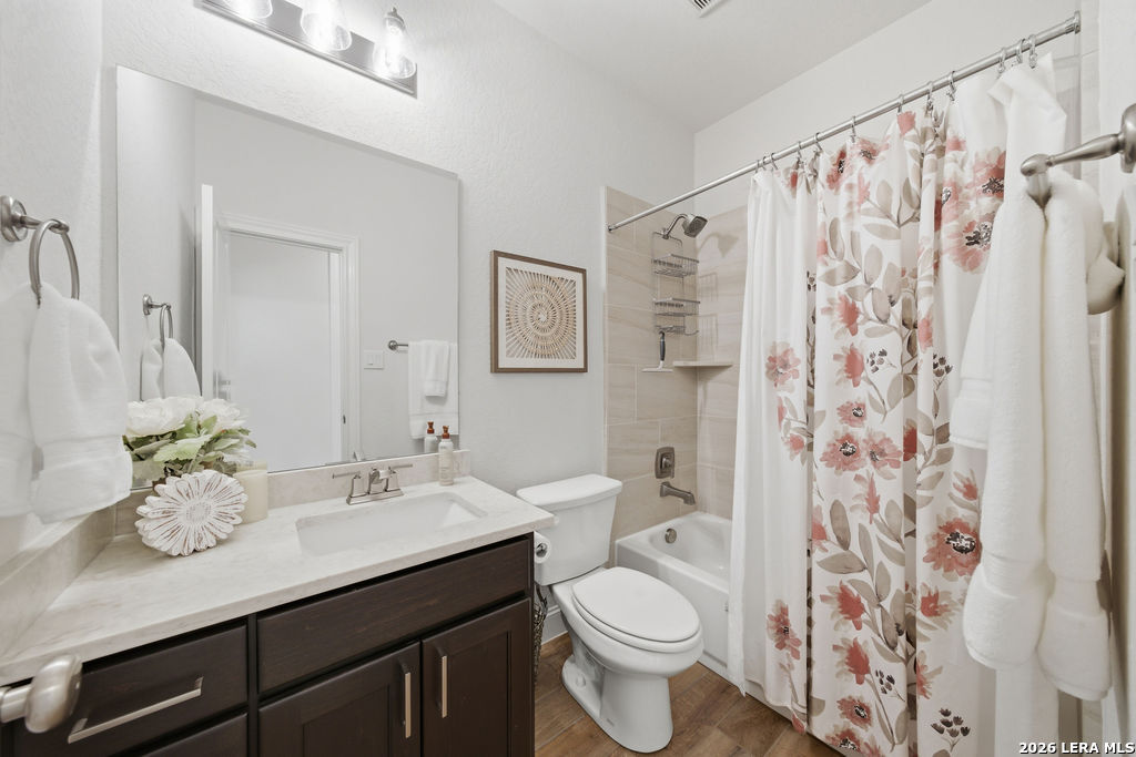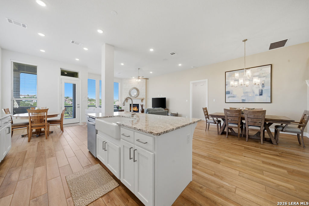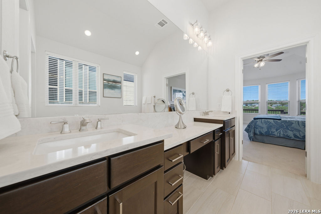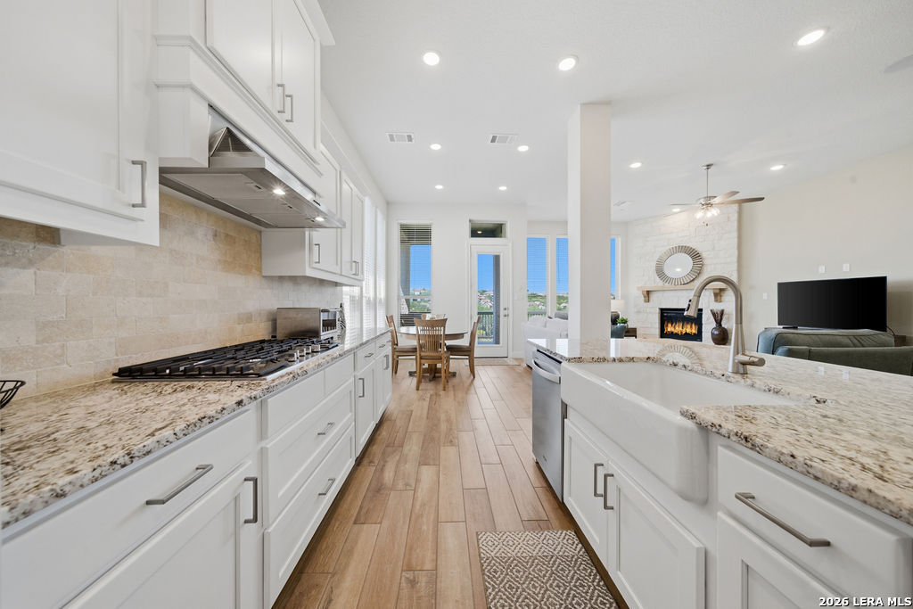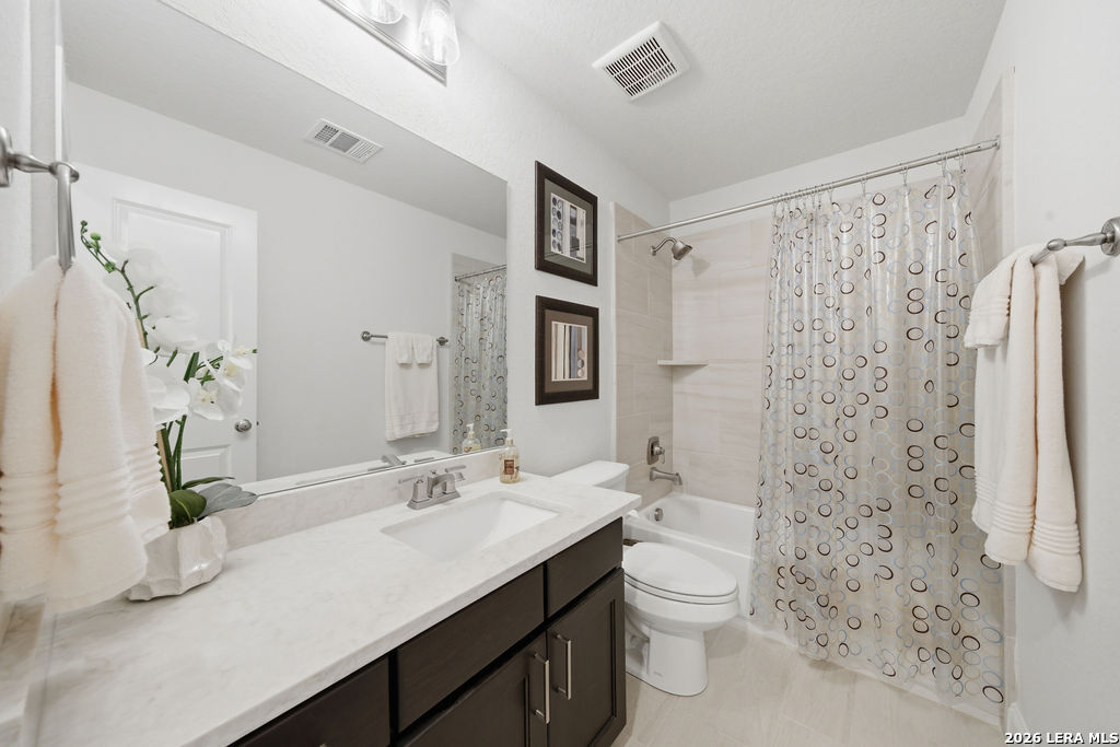 EPIC SUNSET VIEWS! Many luxury upgrades in this ONE AND A HALF STORY Highland Home. This move in ready home has it all and more! The spacious floorplan includes 4 bedrooms and 3 bathrooms with 3 car garage plus a dedicated office space. You'll love the open layout with high ceilings in the main living area. The floor to ceiling stone fireplace is amazing. Imagine yourself cooking in the fabulous kitchen with upgraded cabinets, farmhouse sink, built in oven, and 5 burner gas stove. The oversized granite island seats 4 with lots of cabinet space. Private study/office has custom built in shelving for the avid reader. Relax in your owners suite with captivating sunset views bow window detail. The spa like master bath features oversized vanity, his and hers sinks, as well as walk in shower and garden tub. Don't miss the expanded covered patio and deck with gas hook up. Enjoy the evening breeze and summer BBQ with hill country views. Upstairs you will find the perfect media/game room or "man cave". Additional bedroom and bath upstairs are perfect for teens, guests or family. This is a wonderful opportunity to be in a great location near restaurants, grocery stores, and entertainment. Coveted NEISD schools. Welcome Home!
