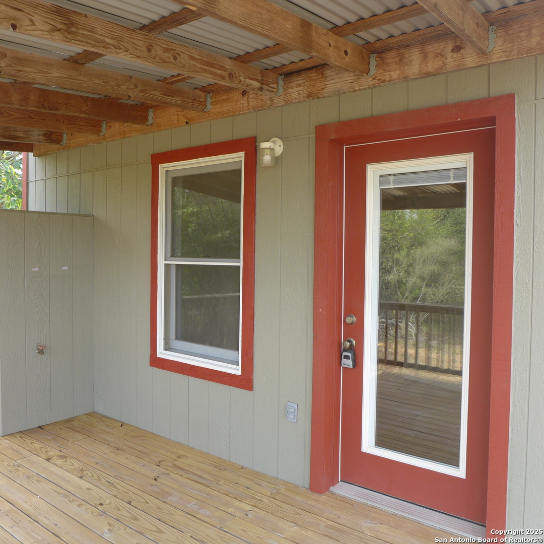Charming cottage for rent in Comfort with large outdoor covered deck. Located behind offices but with nice view of neighboring acreage. Feels private. Parking is limited. No pets. No smoking. Electric, water, sewer, trash and mowing paid directly to owner - extra $168.50 p/mo. $55 application fee p/adult. 1/4 deposit due with application. Broker/owner.