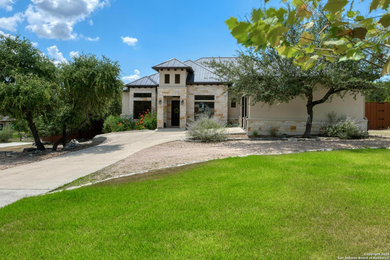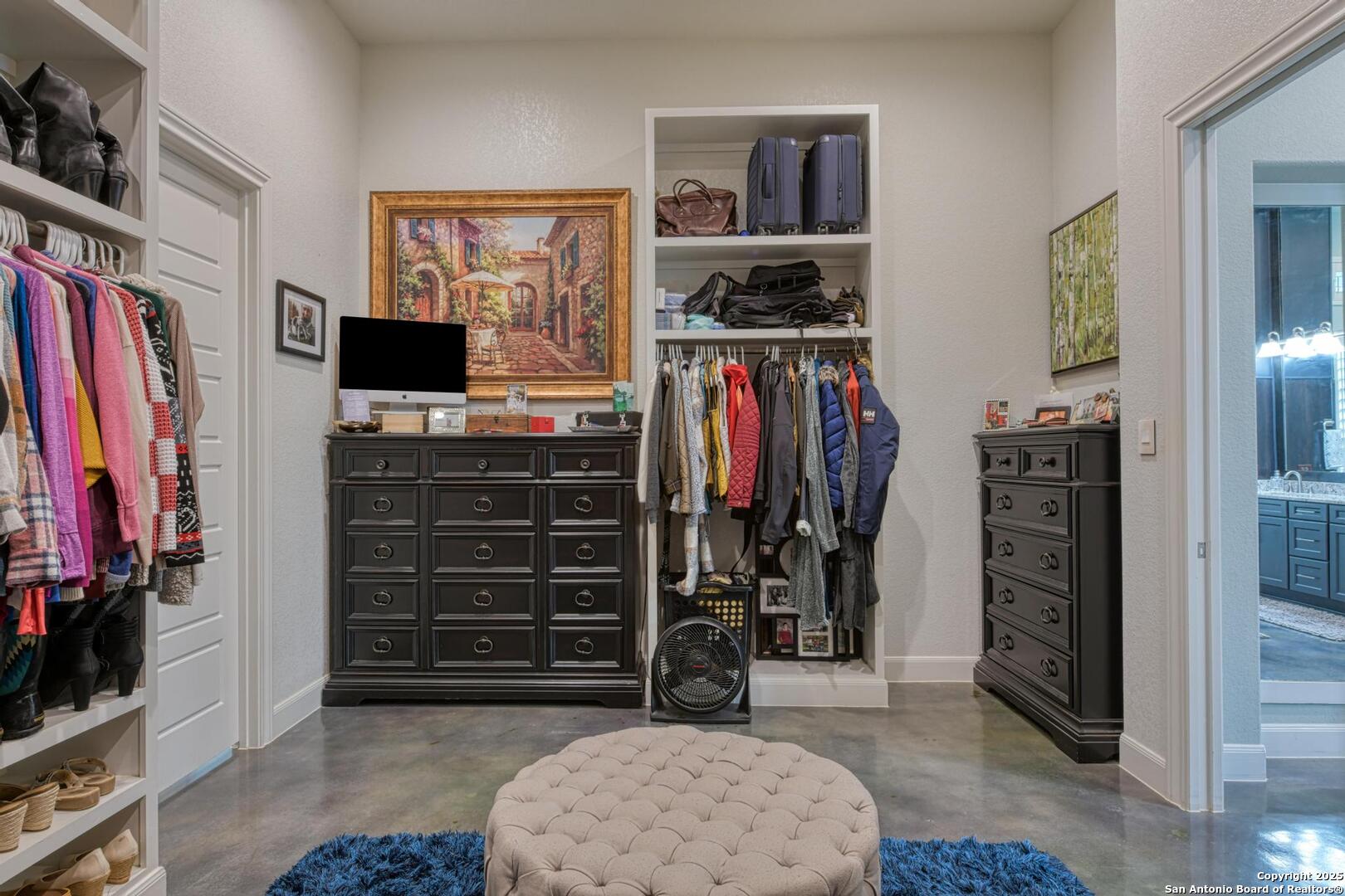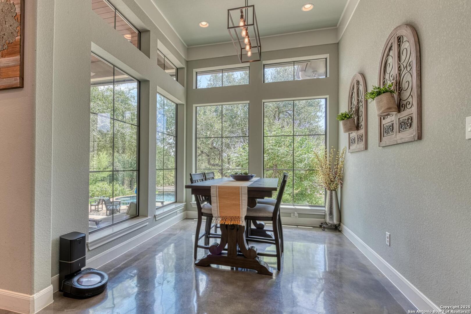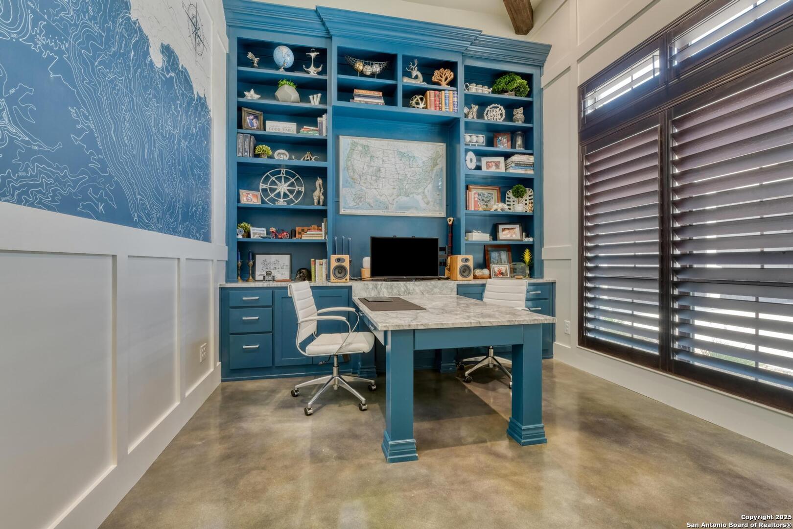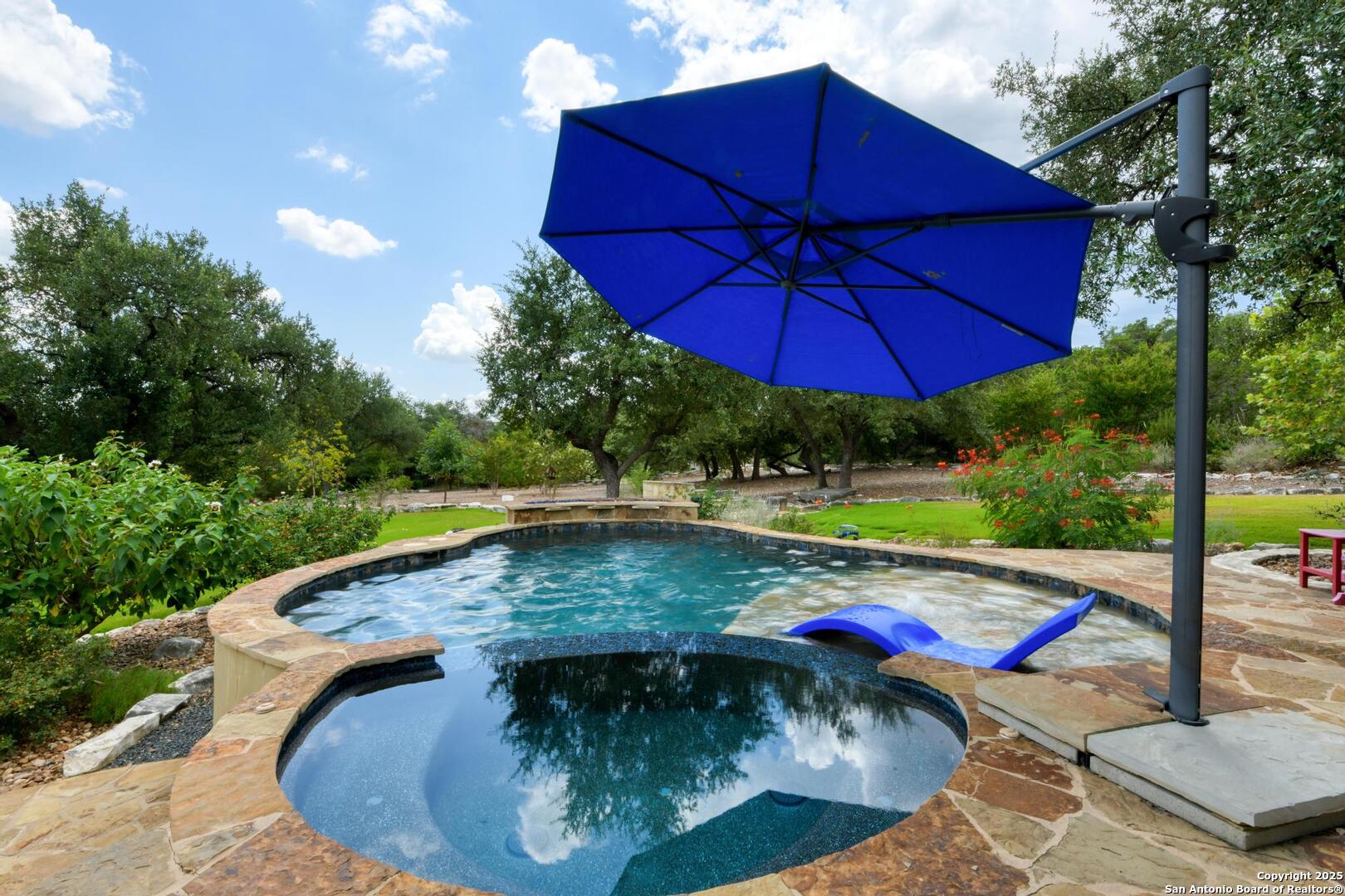 This exceptional property on Paradise Hills, is truly a Paradise. Custom built in 2015, the attention to detail is evident in every space of the home. The front study / library has custom built-in shelves and desk with exposed ceiling beams. The living space and primary bedroom each have a hardwood accent wall, and the entire home has stained concrete floors with no carpet. The stunning chef's kitchen is huge and has so much room to "eat-in" the space and this area connects to a seemless back patio that extends the living space. The primary bedroom space is next level with a closet larger than most bedrooms, which connects to an oversized laundry space for added convenience. The show stopper of this property is the resort style backyard. No expense was sparred on pool, landscaping, and special yard lighting to include 8 different types of trees. This property is an oasis on just over 1 acre - so much to love!