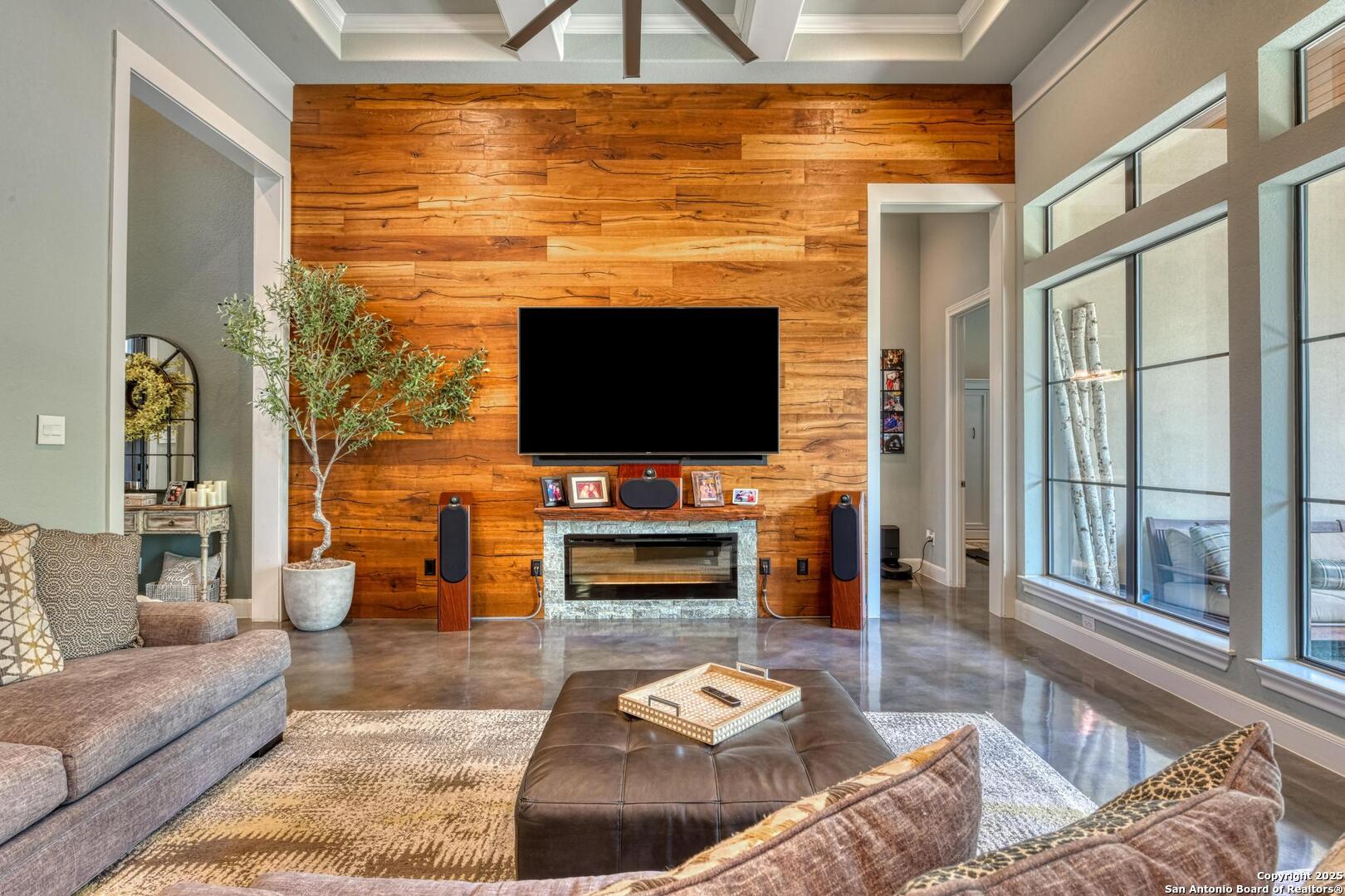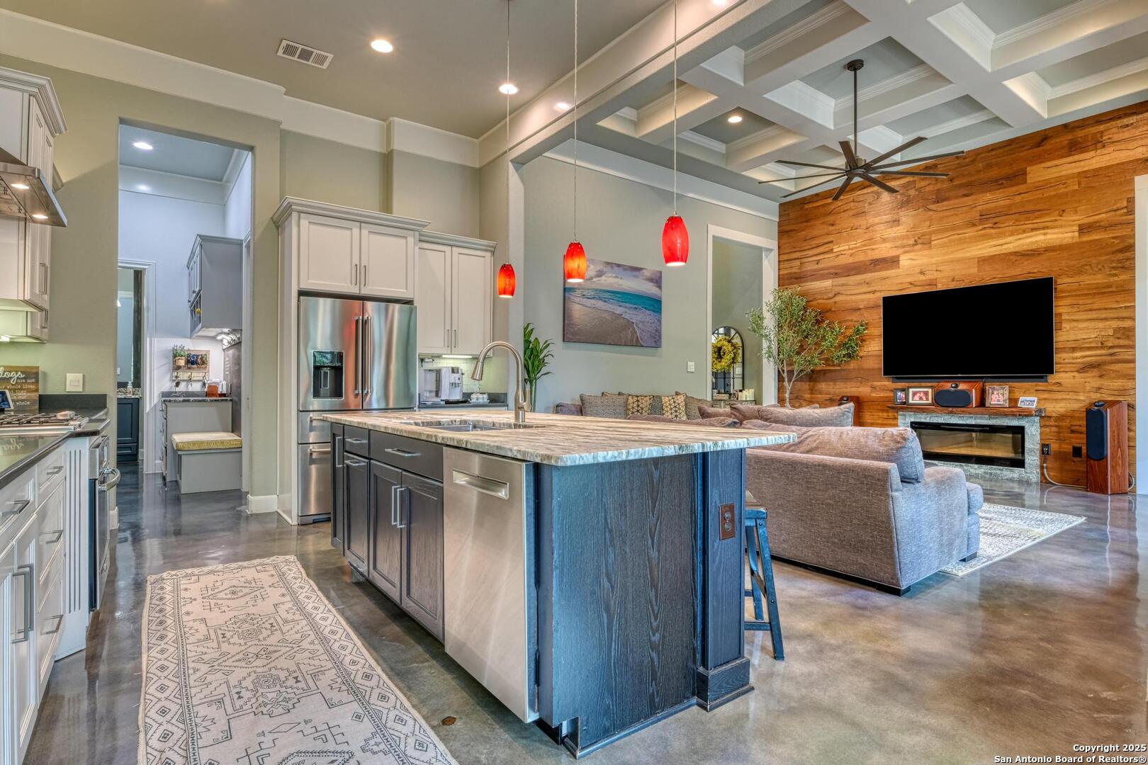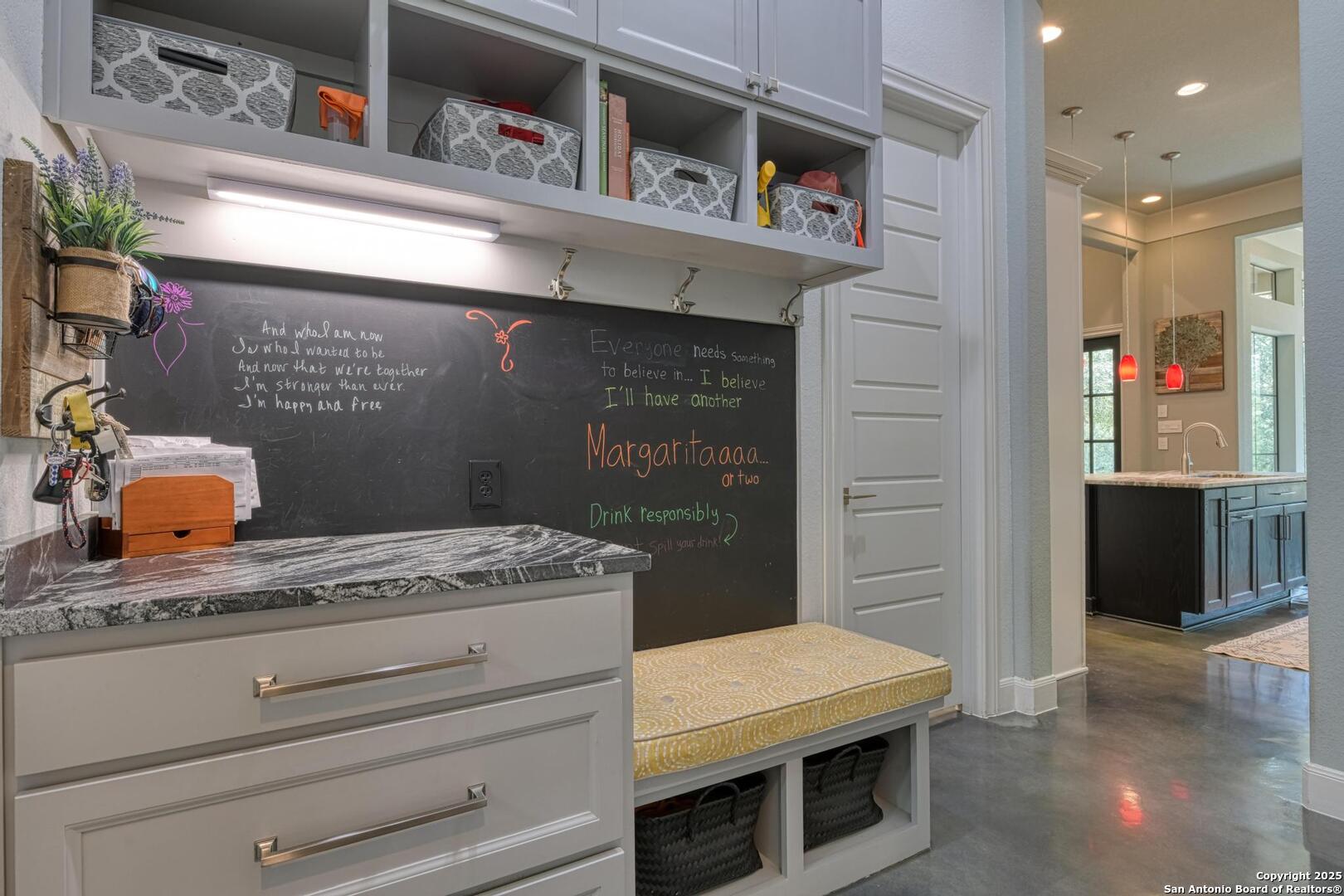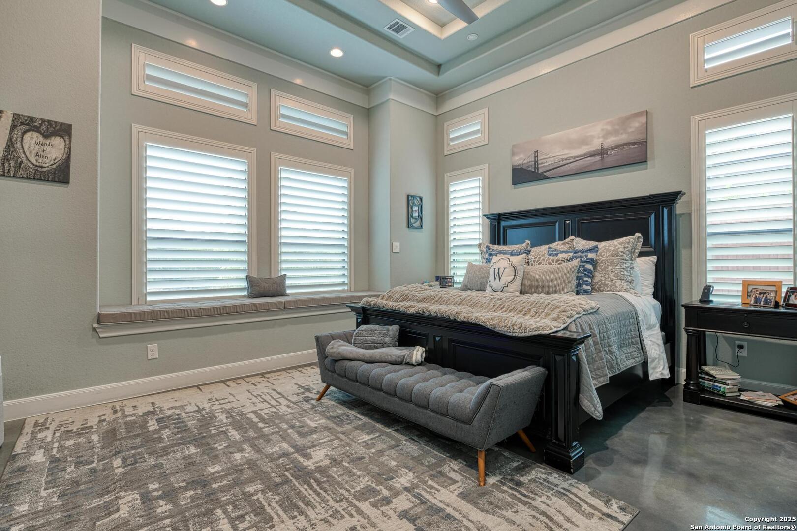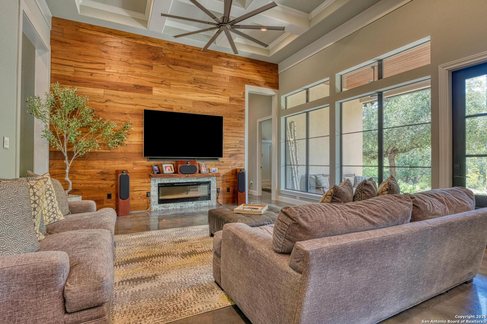 This exceptional property on Paradise Hills, is truly a Paradise. Custom built in 2015, the attention to detail is evident in every space of the home. The front study / library has custom built-in shelves and desk with exposed ceiling beams. The living space and primary bedroom each have a hardwood accent wall, and the entire home has stained concrete floors with no carpet. The stunning chef's kitchen is huge and has so much room to "eat-in" the space and this area connects to a seemless back patio that extends the living space. The primary bedroom space is next level with a closet larger than most bedrooms, which connects to an oversized laundry space for added convenience. The show stopper of this property is the resort style backyard. No expense was sparred on pool, landscaping, and special yard lighting to include 8 different types of trees. This property is an oasis on just over 1 acre - so much to love!