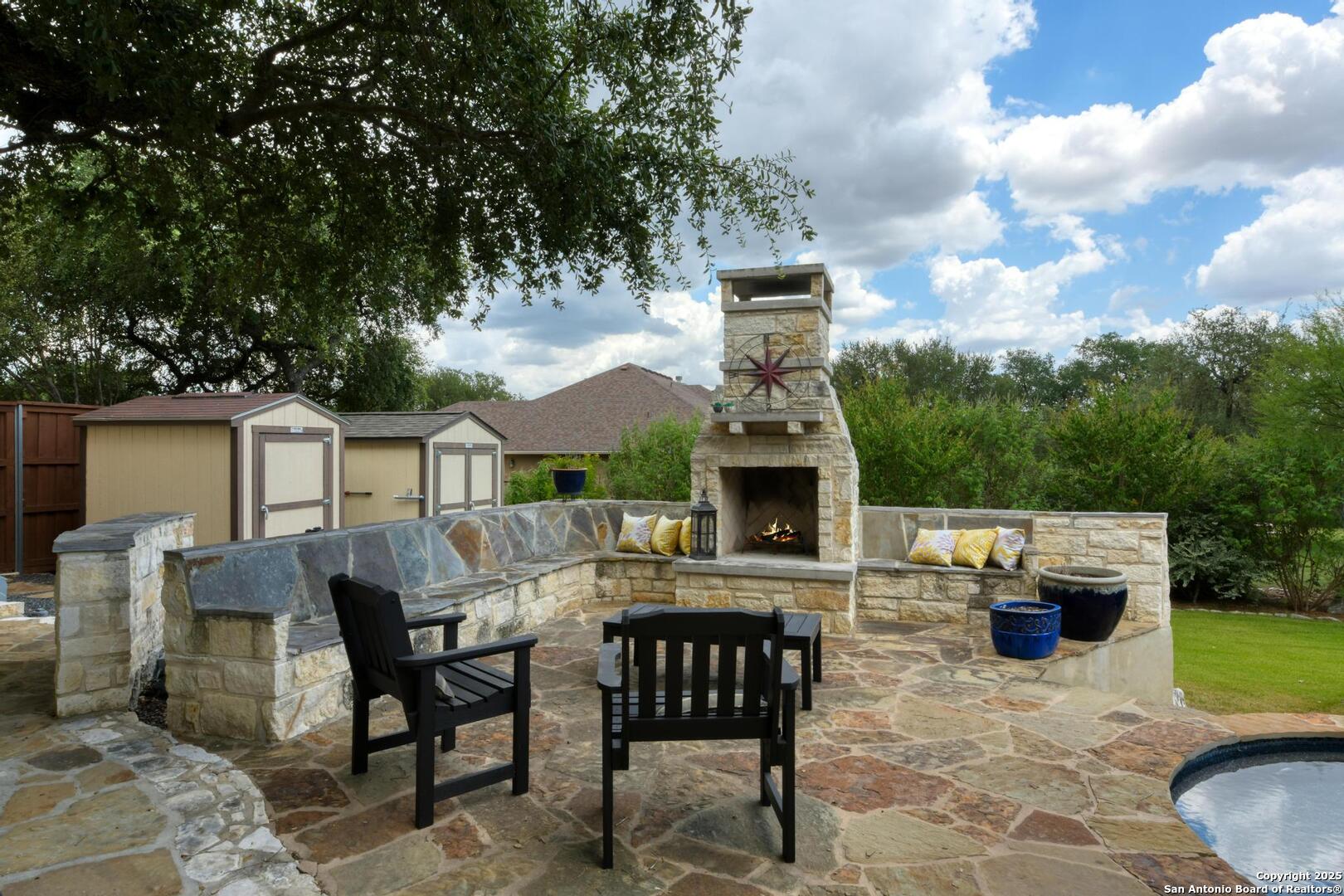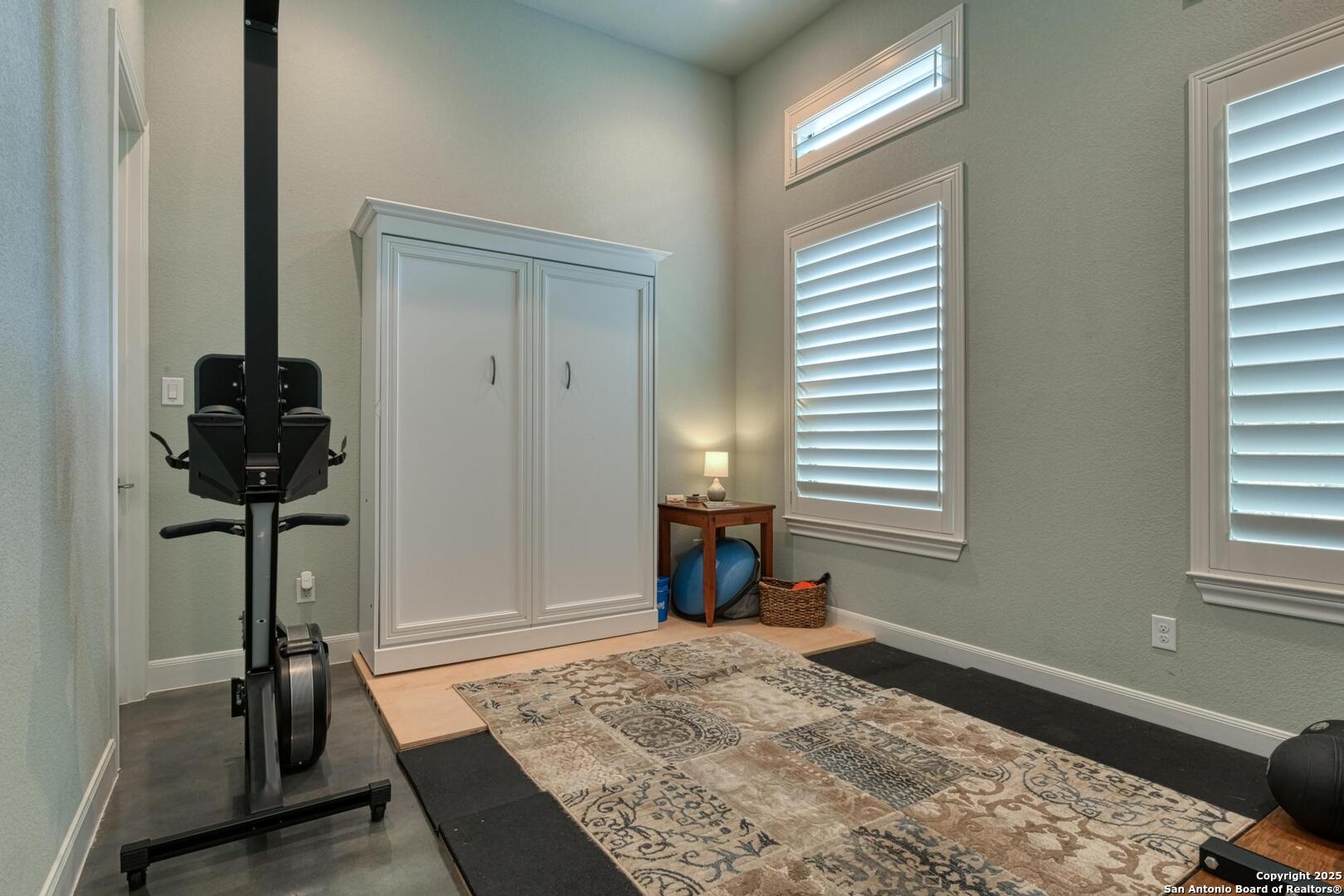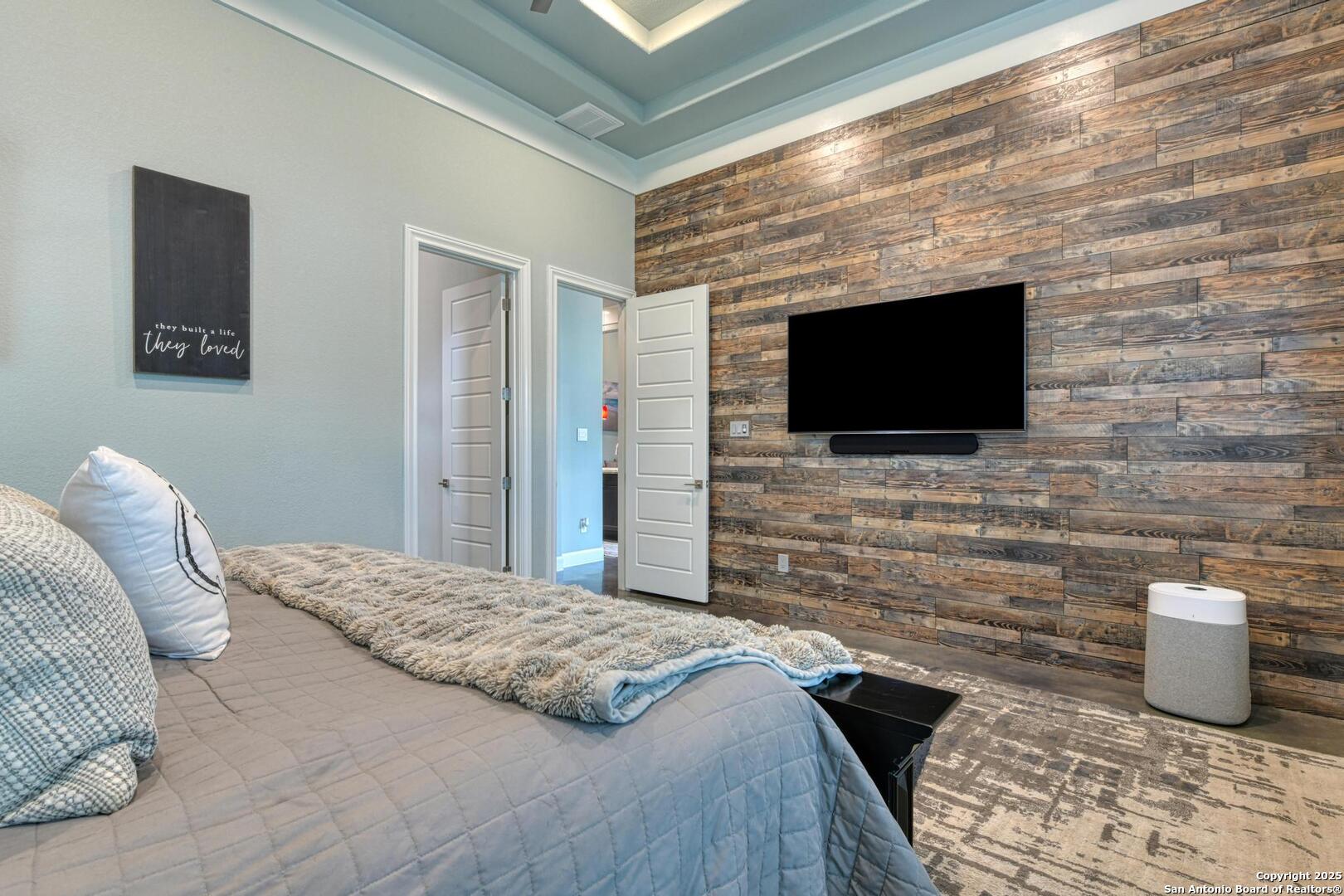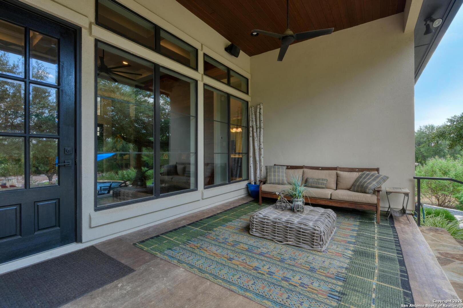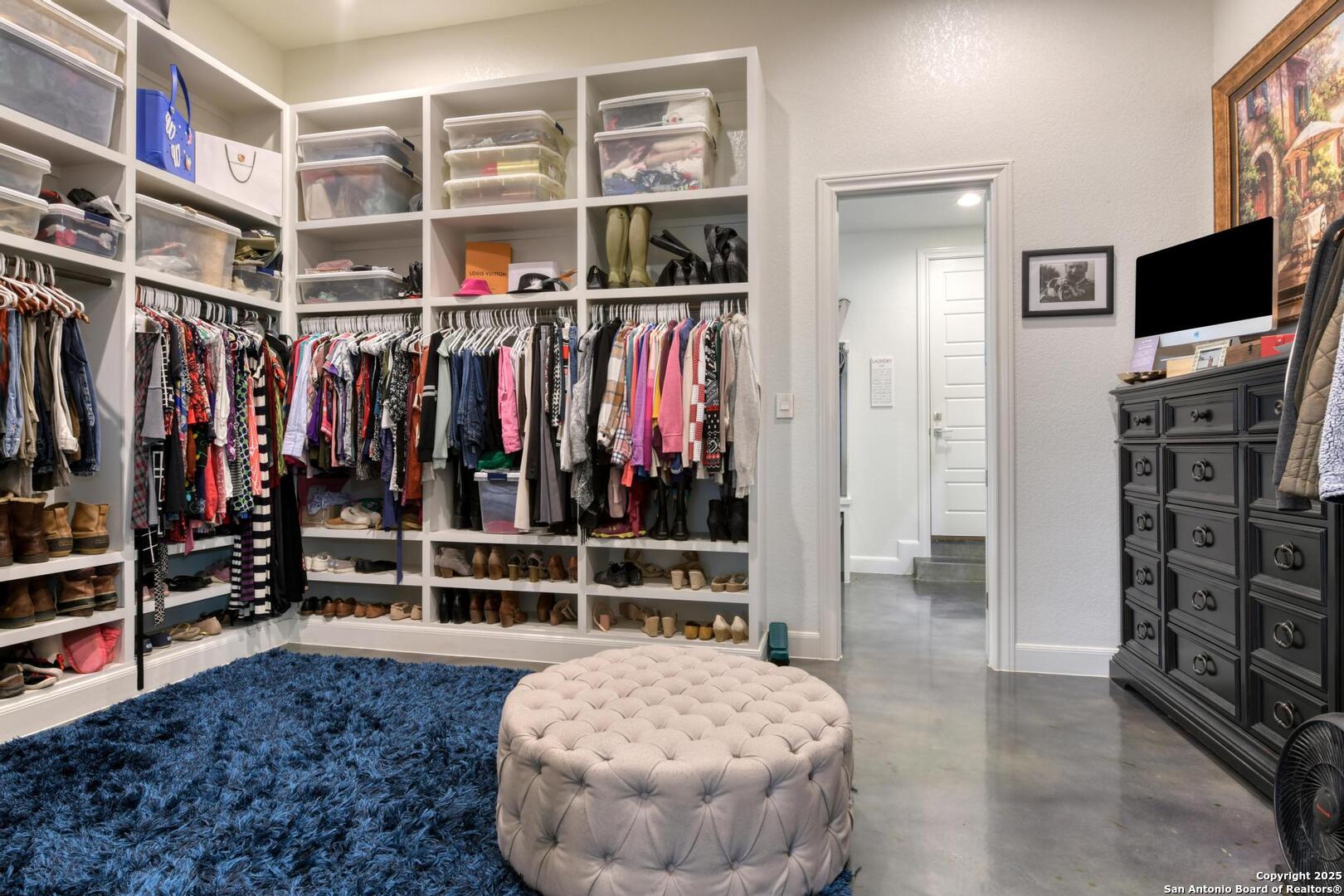 This exceptional property on Paradise Hills, is truly a Paradise. Custom built in 2015, the attention to detail is evident in every space of the home. The front study / library has custom built-in shelves and desk with exposed ceiling beams. The living space and primary bedroom each have a hardwood accent wall, and the entire home has stained concrete floors with no carpet. The stunning chef's kitchen is huge and has so much room to "eat-in" the space and this area connects to a seemless back patio that extends the living space. The primary bedroom space is next level with a closet larger than most bedrooms, which connects to an oversized laundry space for added convenience. The show stopper of this property is the resort style backyard. No expense was sparred on pool, landscaping, and special yard lighting to include 8 different types of trees. This property is an oasis on just over 1 acre - so much to love!