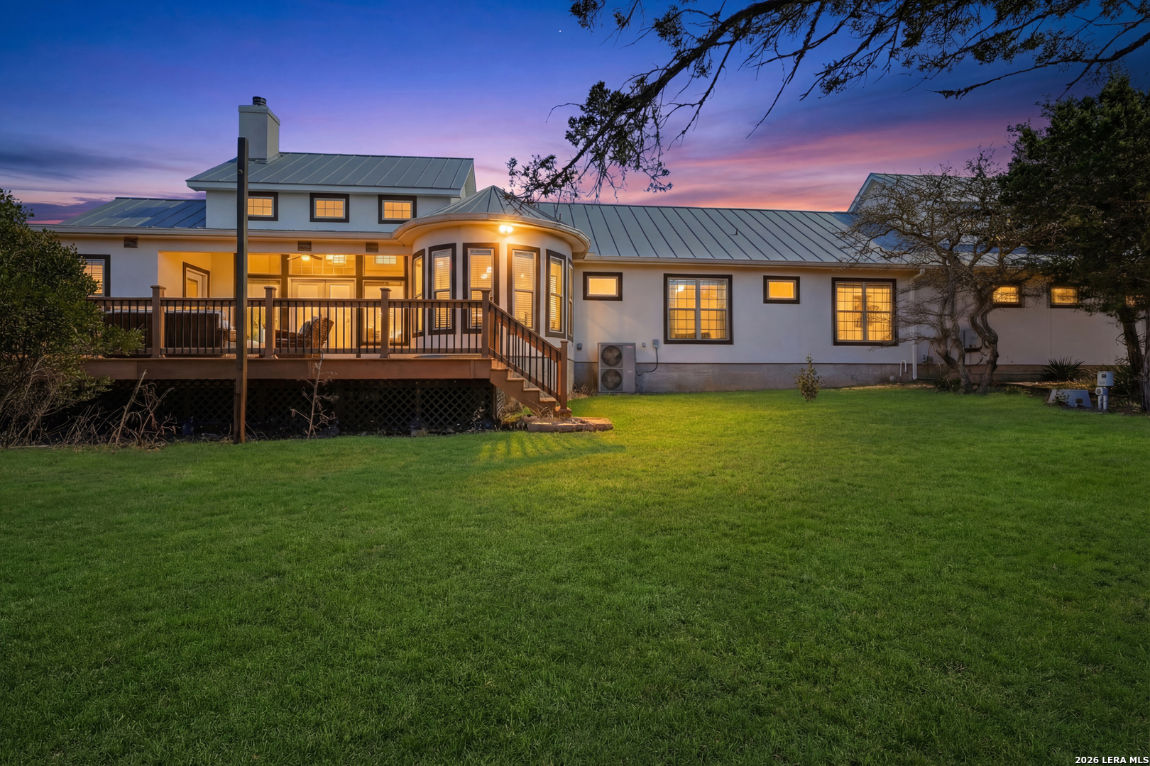 Perched at the peak of one of the highest ridges in the gated community of Dancing Bear Ranch, this exceptional property offers unmatched privacy and breathtaking Hill Country views that stretch for miles. Situated on 3.5 scenic acres, the home captures the beauty, tranquility, and wide-open skies that define true Hill Country living, all while remaining within convenient driving distance of San Antonio. Designed to live like a single story, the thoughtfully planned one-and-a-half-story layout features all bedrooms and bathrooms on the main level, with an upstairs loft or game room that provides flexible space for a media room, home office, or guest retreat. The home has been recently refreshed with updated exterior paint and includes a newly installed back deck, perfectly positioned to take in the sweeping ridge-top views and spectacular sunsets. Energy efficiency is a standout feature, with solar panels helping to reduce utility costs and support sustainable living. Residents of Dancing Bear Ranch enjoy access to outstanding community amenities, including a neighborhood pool, sports courts, and a private lakeside park with a boat launch and pavilion along Medina Lake. Located in Medina County, known for lower property tax rates, this rare ridge-top retreat offers an ideal combination of privacy, efficiency, panoramic views, and the peaceful Hill Country lifestyle.
