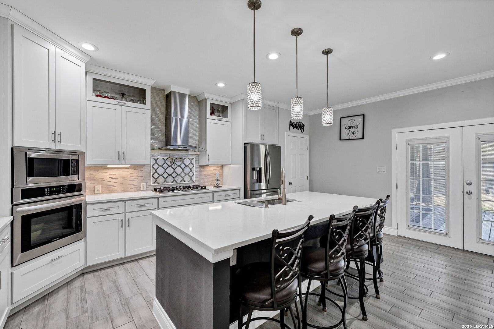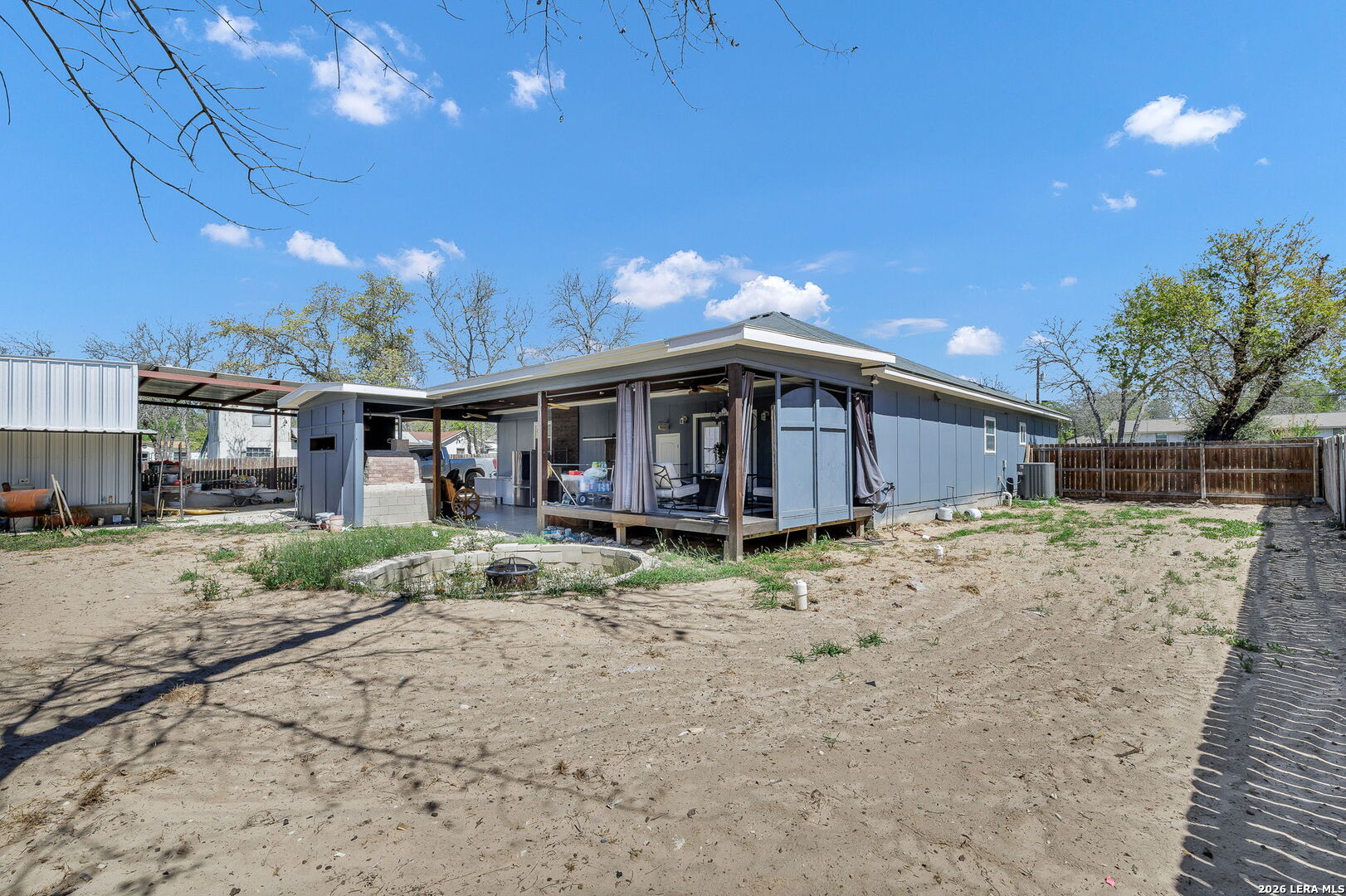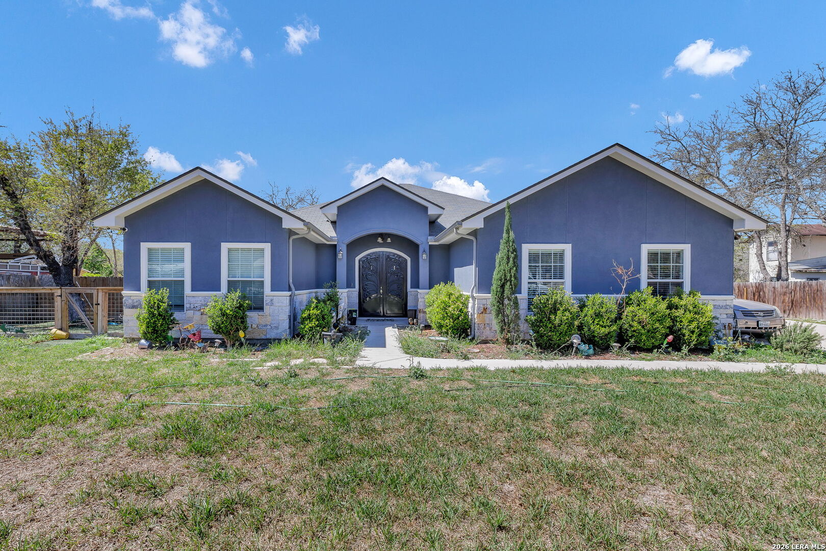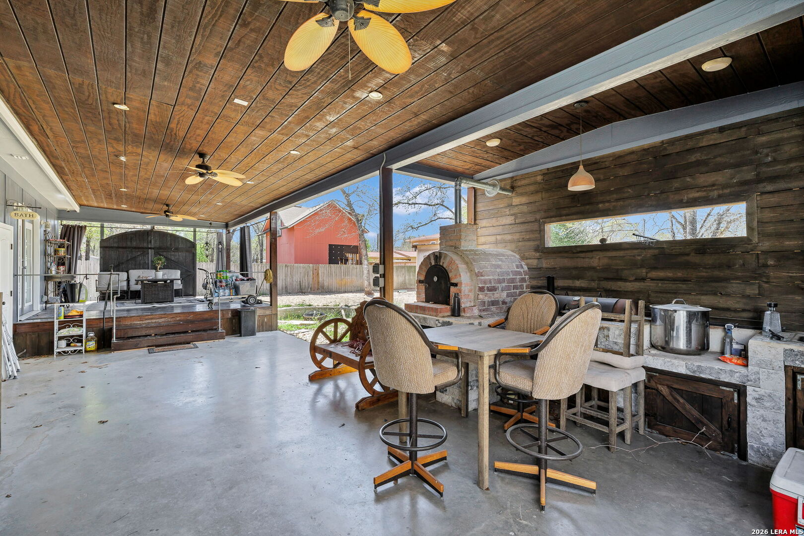 This home is truly one of a kind in the area. This home has never been on the market until now! Fully custom home built and completed in 2020 by ANLYZ Custom Homes. This home is turnkey and ready for its new owner. Sitting on just shy of half an acre in Elmendorf, TX, this home is packed with a full entertainer's package. Outdoor deck and living area, which includes a brick oven, fire pit in the backyard, and an outside storage or workshop area. Walk inside the home, and you will find all tile flooring, custom accent walls, and a custom entertainment center. The kitchen features a gas cooktop, built-in oven, wall-mounted single-pot filler, granite countertops, and a counter-depth fridge on your kitchen island. The primary bedroom is massive! A walk-in closet that matches the grandness of it all. This is a must-see!