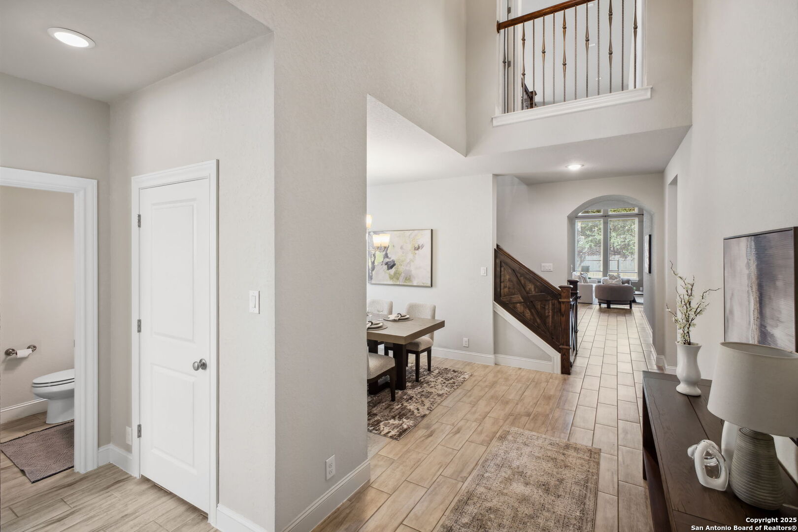 ** 2.75% VA Assumable rate for qualified purchasers ** **Motivated Seller and entertaining all serious offers! Priced to Move** Nestled in the gated Coronado neighborhood, this meticulously maintained 5-bedroom, 4.5-bathroom Highland Home offers 3,420 sq ft of luxurious living space. Built in 2018, the residence boasts a spacious layout with tall ceilings, open floorplan throughout the kitchen, breakfast area, and family room. You will also find a formal dining room, spacious game room and a dedicated study, providing ample room for both entertaining and productivity. The chef-inspired kitchen is a culinary enthusiast's dream, featuring solid surface countertops, a walk-in pantry, built-in self-cleaning oven, gas cooktop, built-in microwave, dishwasher, and RO water system. The elegant design is complemented by high ceilings, large custom ceiling fan, a gas fireplace in the family room spanning floor to ceiling stone construction, and a staircase adorned with metal spindles. The master suite offers a spa-like retreat with a luxurious bath, separate shower, and large walk in closet with a his and hers sides. The four secondary bedrooms are generously sized, with one located downstairs adjacent to a full bath that can be perfect as a mother-in-law suite or a guest bedroom. Step outside to a private backyard oasis, complete with an enclosed patio and back deck perfect for entertaining or unwinding after a long day. Or enjoy opportunity to open the garage and utilize the pull down or retractable screen which has a door you can walk through to say hi to neighbors passing by. The garage is also equipped with deck tiles that can withstand 80,000 pounds, perfect for the car or workout enthusiast. Plenty of storage capability with the metal shelving installed above the garage doors or the opportunity to add stairs to be able to access the attic area. Located within the highly regarded North East Independent School District, this home is in close proximity to top-rated schools, shopping, dining, and major highways, offering both convenience and luxury. ** 2.75% VA Assumable rate for qualified purchasers **