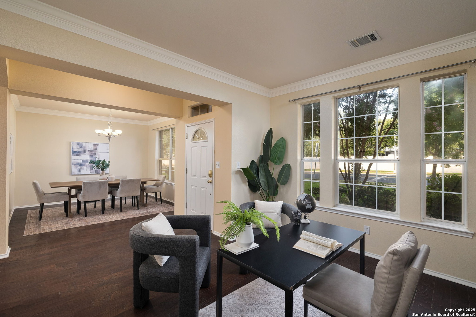 Welcome to this inviting 4-bedroom, 2.5-bathroom home with 2,776 square feet of well-planned living space, ideally located in the desirable Lakeline area. Perfect for buyers seeking space, comfort, and functionality, this two-story home offers an open layout with great natural light throughout. The main level includes a modern granite and stainless steel kitchen that opens to the living area, a dedicated home office or study, and a spacious primary suite with excellent storage. Upstairs, you'll find three additional bedrooms and a large media room - perfect for movie nights, gaming, or extra living space. Outside features a shady backyard with mature trees and an open patio, ideal for relaxing or hosting friends and family. A 2-car garage provides added convenience. With its thoughtful layout, great location, and move-in-ready appeal.