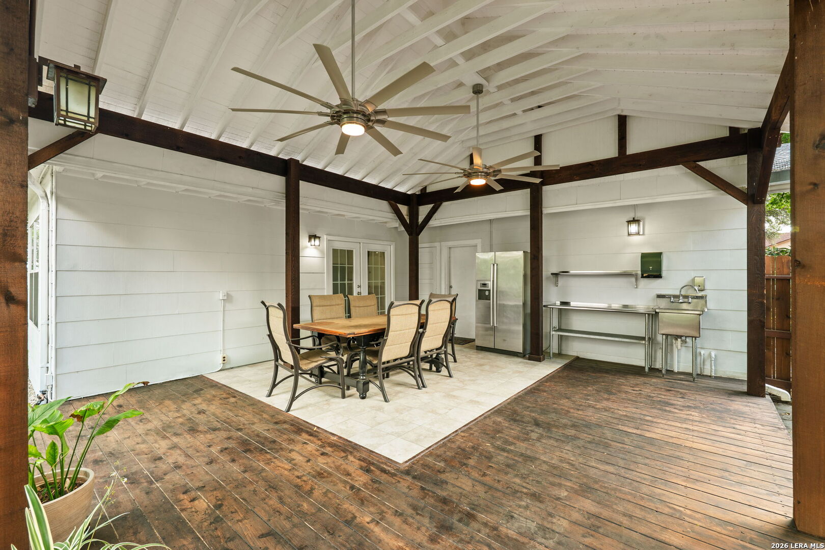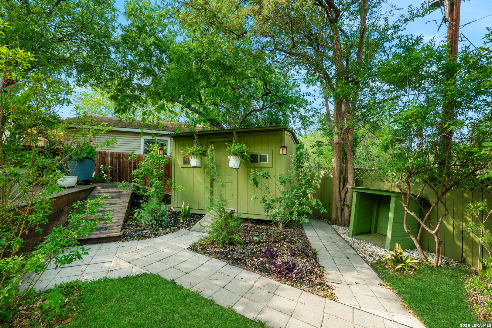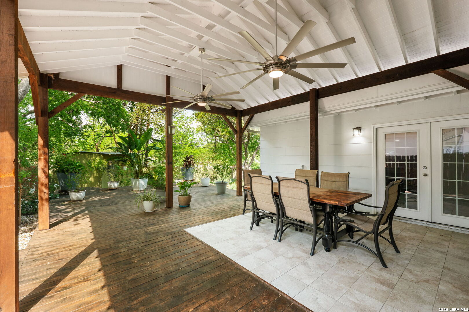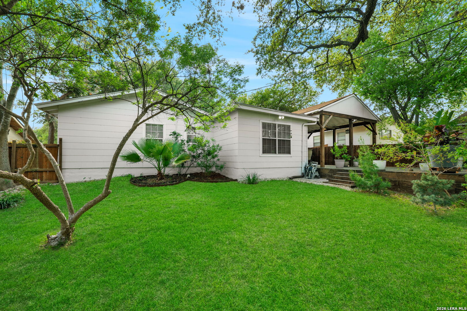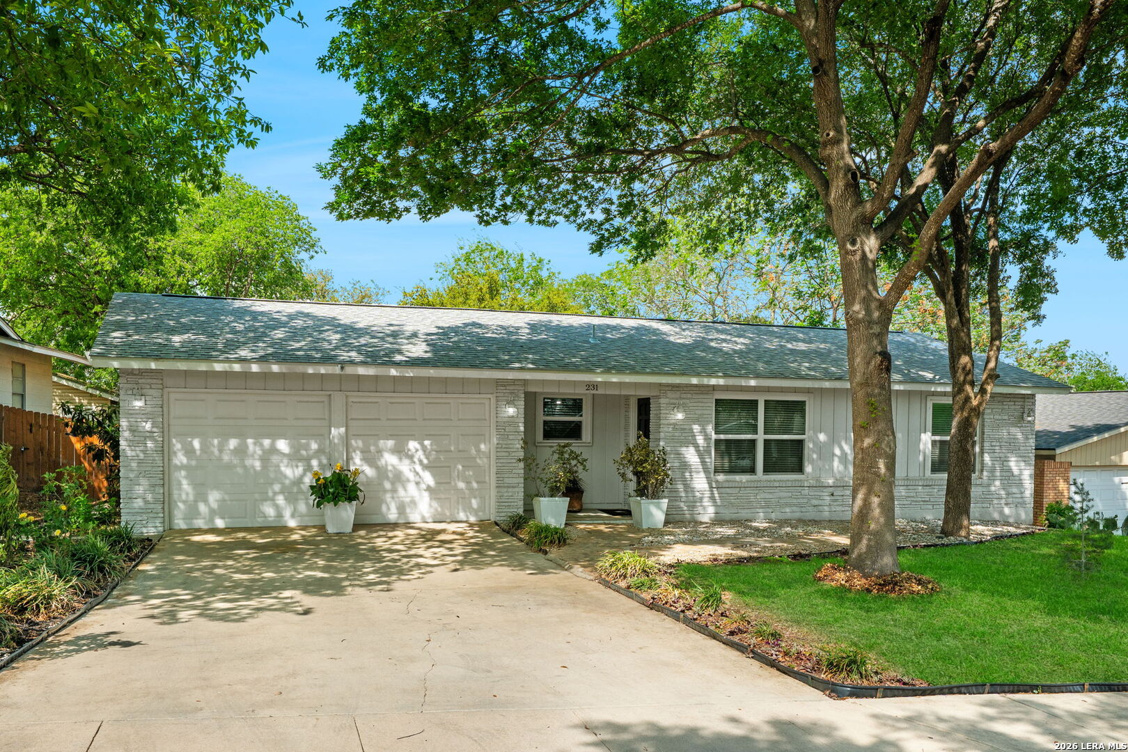 Your outdoor living oasis is minutes from everything in this thoughtfully updated mid-century charmer in the heart of Harmony Hills. This beautifully maintained single-story home blends timeless character with fresh, modern improvements, offering an easy living lifestyle and memorable outdoor gatherings. Step inside to refinished original hardwood floors, abundant natural light, and a seamless flow between living, dining, and family spaces. The kitchen shines with new cabinets, new sink and fixtures, and thoughtful design upgrades completed in 2025. Both bathrooms have seen recent improvements as well. Outdoors, this home truly comes to life. Curb appeal pops with extensive landscaping. The expansive 740 sq ft deck and pavilion-recently power washed and re stained-creates the perfect backdrop for gatherings, grilling, or quiet evenings under the string lights. Lush landscaping, mature trees, fresh mulch, raised garden beds, and a variety of fruit trees and ornamentals give the yard a magazine worthy appeal. Major system updates provide peace of mind, including a new water heater (2025), new windows in key rooms, water softener, reverse osmosis water softener system, HVAC servicing with multiple replaced components, interior/exterior paint, and extensive exterior/garage improvements. Located on a level lot with a two-car garage and easy access to San Pedro, Loop 410, North Star Mall, and the San Antonio Airport provide unparalleled convenience. Lovingly cared for and extensively updated, 231 Tammy Dr is truly move-in ready - a place where every detail has been thoughtfully tended to, indoors and out. Come discover a home designed for everyday living and effortless entertainment.