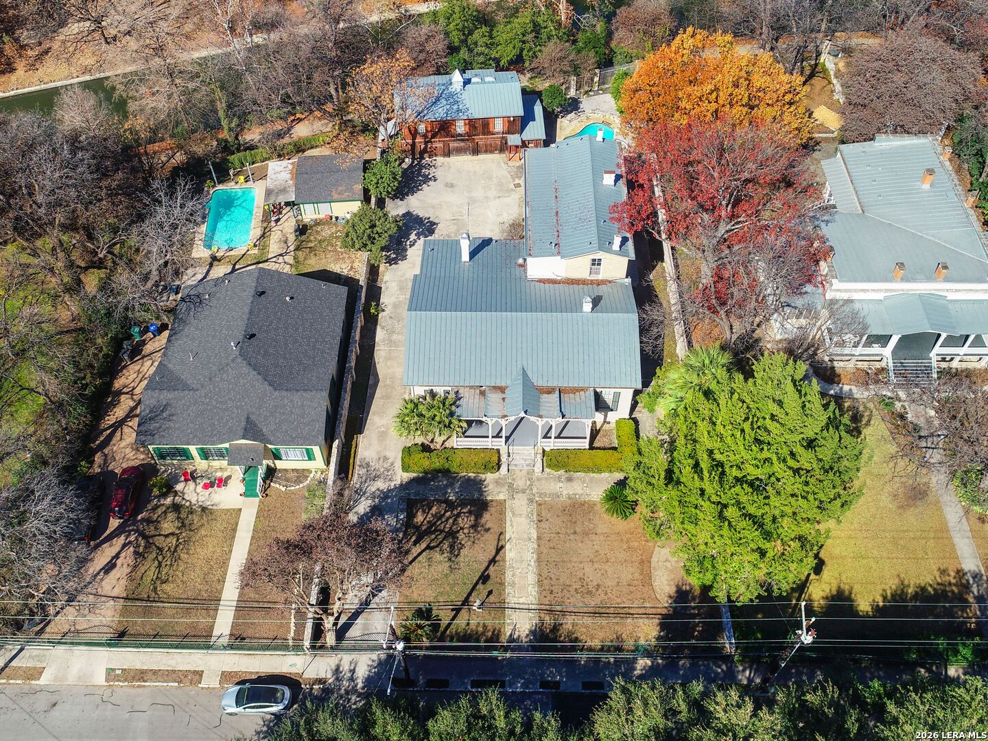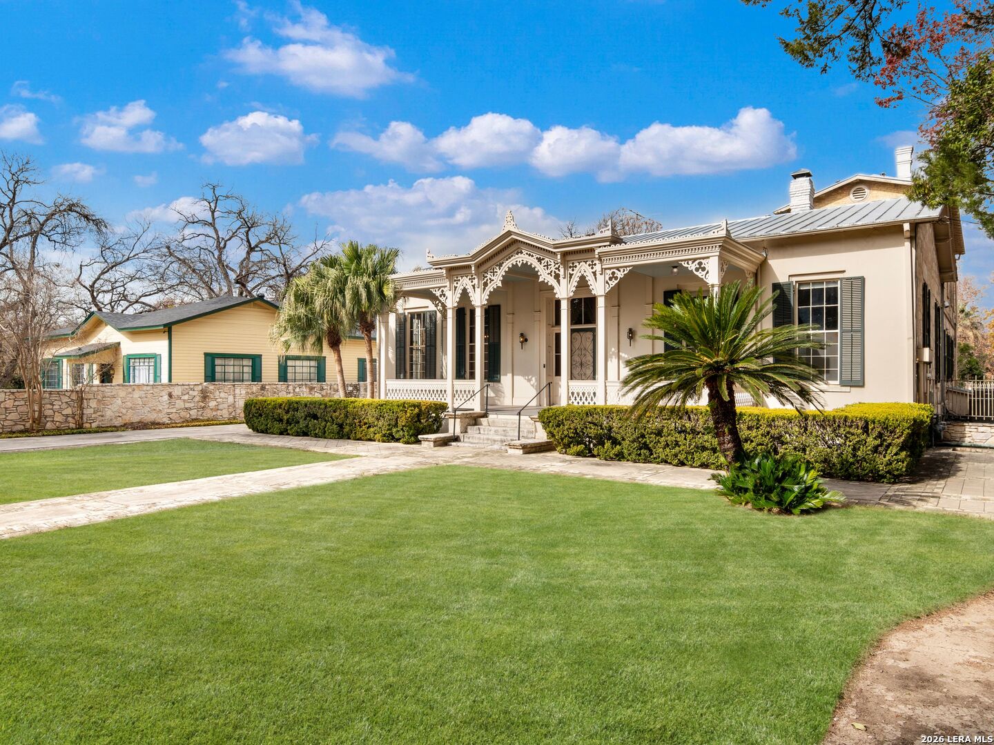 An extraordinary opportunity to own a distinguished residence on one of the most coveted streets in San Antonio. Situated in the prestigious King William Historic District, this remarkable property offers an unparalleled lifestyle where architectural heritage meets refined living. Set among stately, tree-lined streets, the home showcases grand proportions, soaring ceilings, intricate millwork, and exquisite original details that reflect its timeless character. Expansive windows flood the interiors with natural light, accentuating the home's elegant craftsmanship and thoughtfully designed spaces. The gourmet eat-in kitchen serves as both a culinary showpiece and gathering space, appointed with double ovens, a fireplace, and a wet bar, ideal for elevated entertaining. Two luxurious en-suite bedrooms on the main level provide comfort and privacy, while multiple formal and informal living areas offer seamless flow for hosting on any scale. Beyond the interiors, the gated grounds create a private sanctuary. A resort-style pool and sophisticated lounge area overlook the river, delivering a serene backdrop rarely found in an urban setting. Enjoy effortless access to the San Antonio River's scenic trails, Southtown's acclaimed dining and cultural destinations, Downtown, premier shopping, and major expressways. This is a rare offering that embodies historic grandeur, modern sophistication, and an exceptional standard of living.