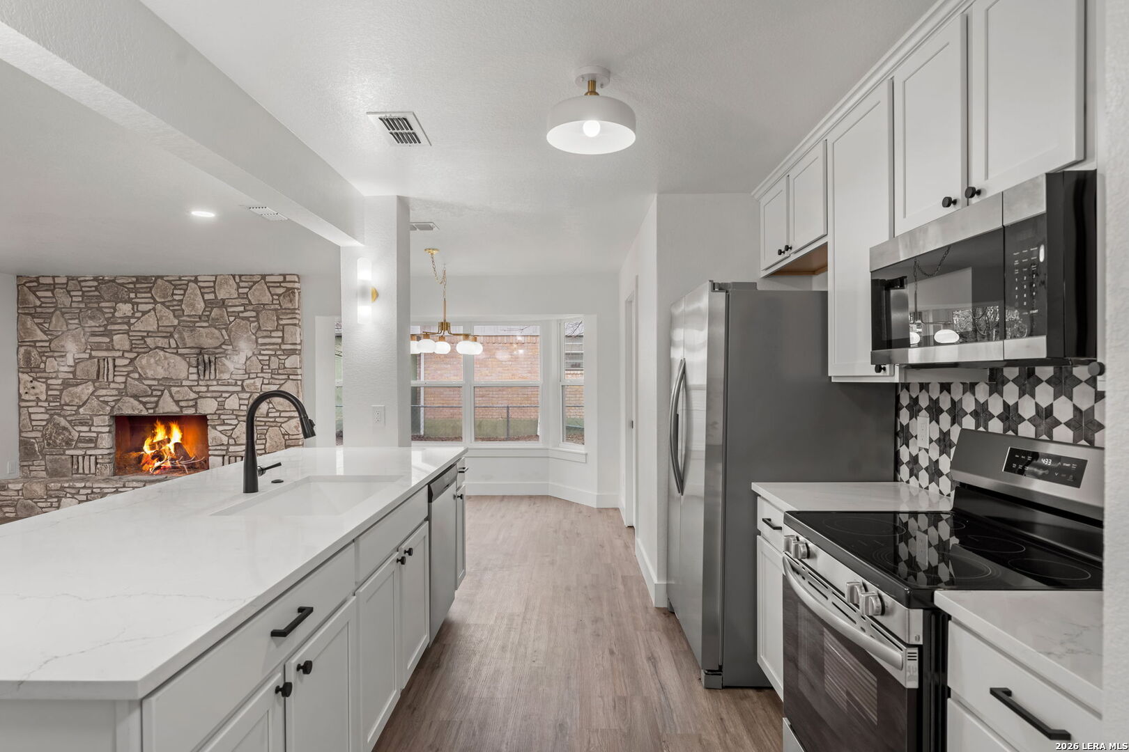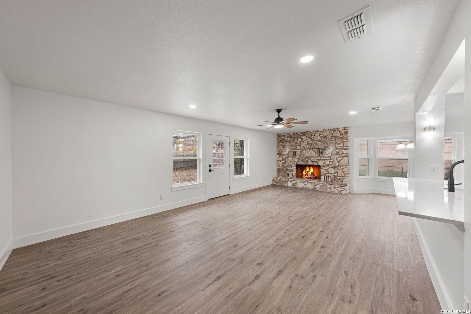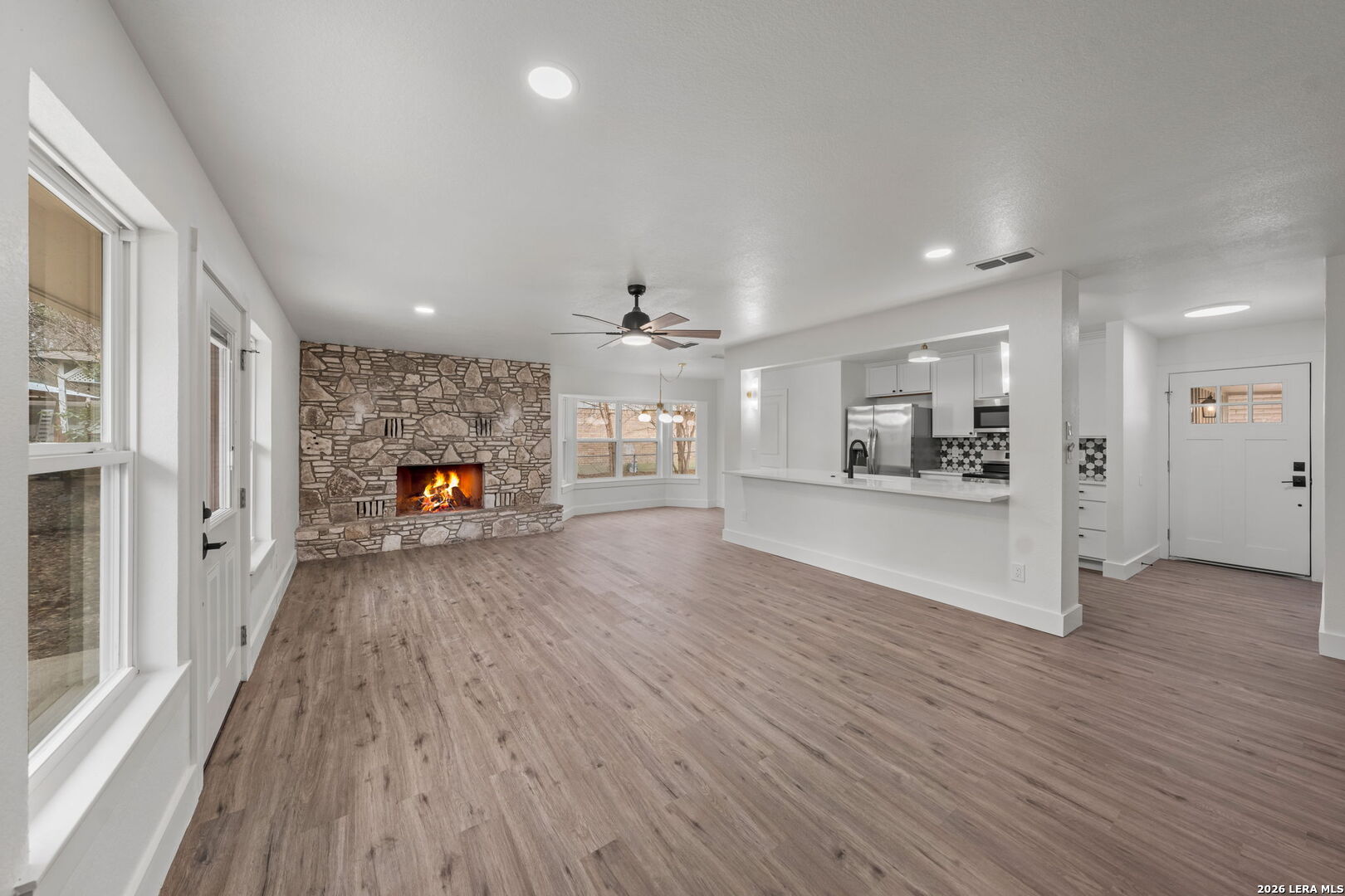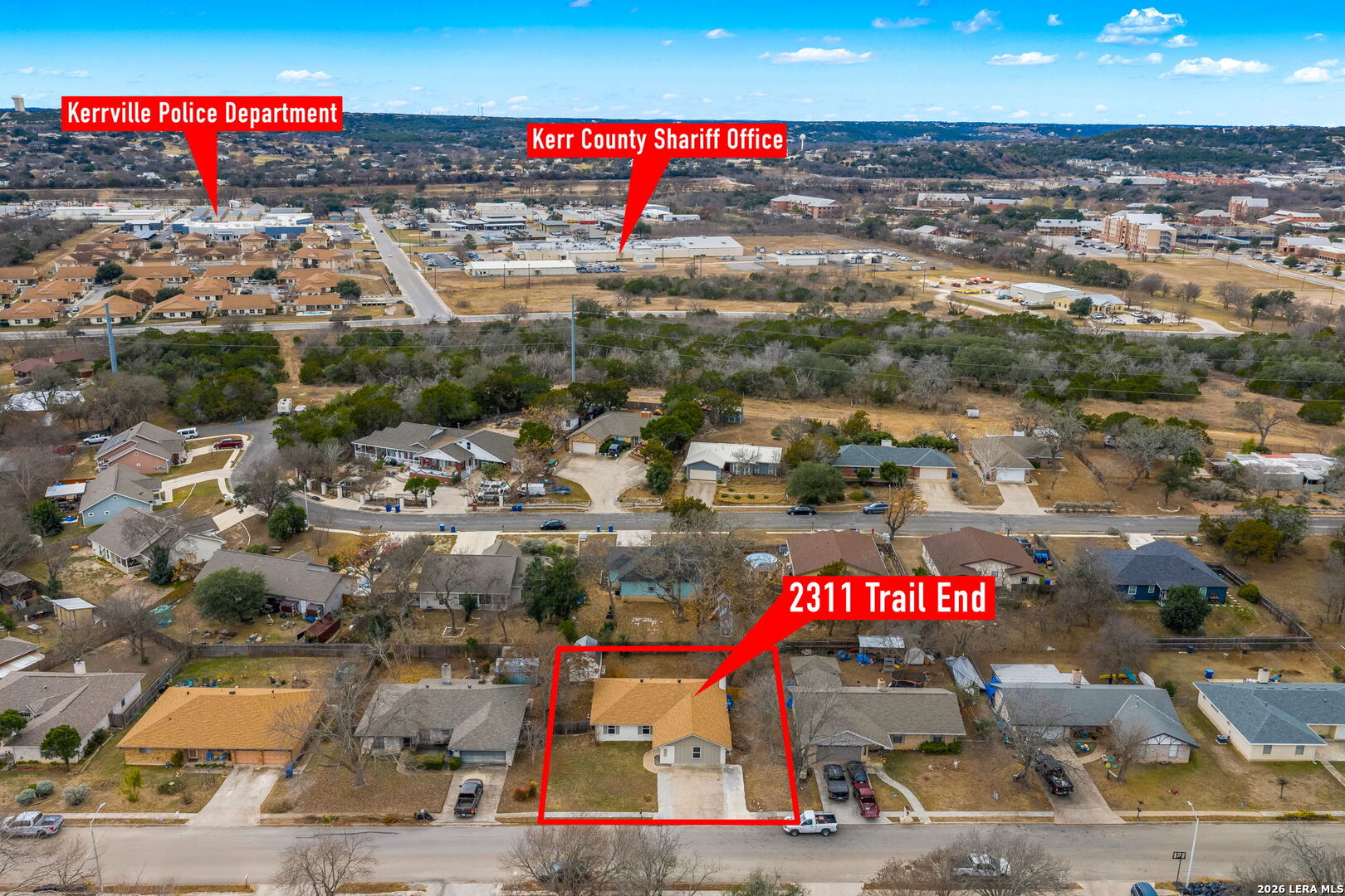 Welcome to 2311 Trails End in Kerrville, a thoughtfully remodeled four-bedroom, three-bath home offering 1,744 square feet of comfortable, functional living in a location that simply makes daily life easier. Built in 1980 and completely updated, this home blends classic neighborhood charm with modern improvements that matter. The interior has been fully refreshed with new flooring, new windows, new doors, upgraded insulation, and underground utilities. These updates create a home that feels clean, efficient, and ready for everyday living. The living area is warm and inviting, anchored by a fireplace that gives the space character and a natural place to gather. The kitchen has been completely remodeled with new cabinetry and new appliances, offering a fresh, practical layout that works for both quiet mornings and busy evenings. The finishes are clean and timeless, designed to age well and stay functional. The converted garage was done correctly and now serves as a true fourth bedroom with its own bathroom and a dedicated mini-split system, making it ideal for guests, extended family, a home office, or a private retreat. The laundry room is practical and well-designed, with generous cabinet storage that keeps everything organized and out of sight. Double-pane windows bring in natural light while improving energy efficiency, and a large storage shed in the backyard provides ample space for tools, equipment, or hobbies. This home is conveniently located near the Kerrville Olympic Pool, Tom Daniels Elementary, Peterson Middle School, and Tivy High School, with easy access to Loop 534 for quick trips across town. 2311 Trails End offers a full remodel, flexible living space, and a prime Kerrville location.