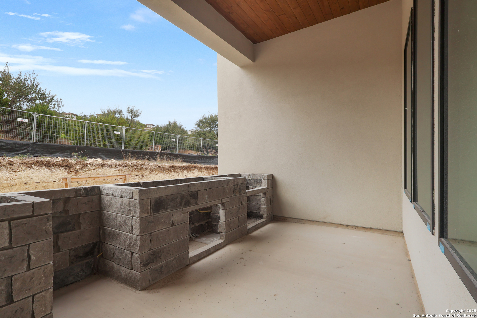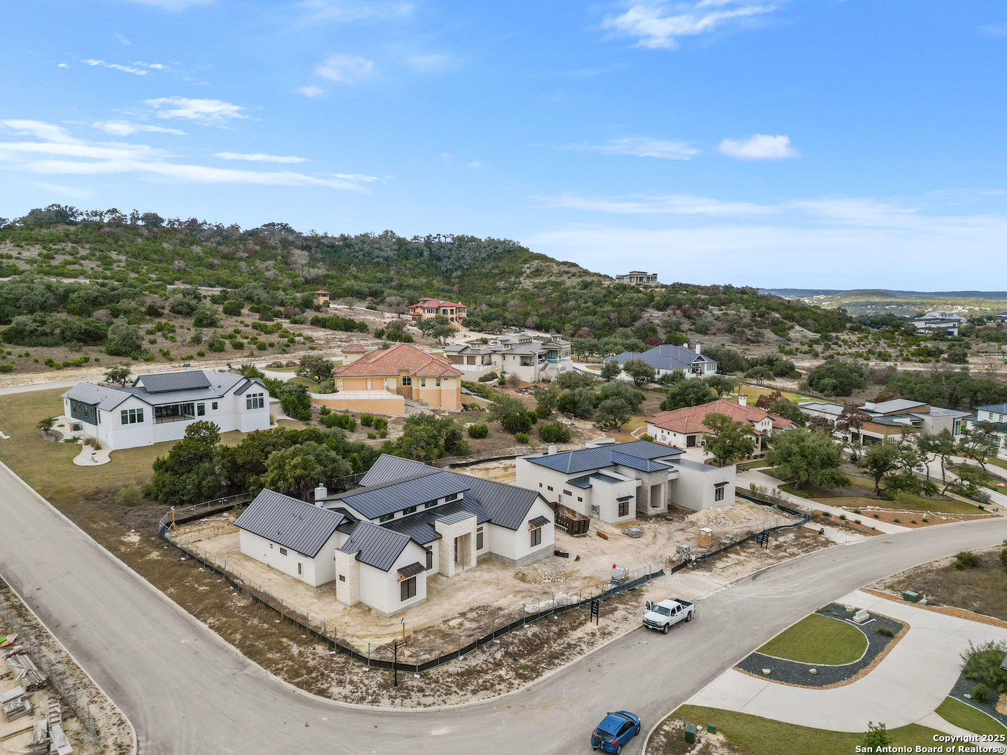 Experience refined Hill Country living in this newly constructed custom residence by Arantza Homes, where modern design and exceptional craftsmanship converge. Thoughtfully designed with a meticulous eye for detail, this contemporary home features elevated finishes, clean architectural lines, and curated materials that create a sophisticated yet inviting atmosphere throughout. The chef's kitchen anchors the home with professional-grade stainless steel appliances, custom cabinetry, and an expansive island that seamlessly connects to the great room. Soaring ceilings and walls of natural light enhance the open-concept layout, making the space ideal for both entertaining and everyday living. The primary suite offers a private retreat, highlighted by a spa-inspired bath with premium finishes and an oversized walk-in closet. Three additional guest suites each include their own en-suite baths, providing comfort and privacy for family and guests alike. A dedicated media room adds flexibility for entertainment, relaxation, or work-from-home needs. Outdoor living is equally well-appointed, featuring a covered patio, full outdoor kitchen, and extensive hardscaping-perfect for enjoying peaceful Hill Country evenings year-round. Situated in the exclusive gated community of The Canyons at Scenic Loop, this exceptional home delivers contemporary luxury, superior craftsmanship, and a prime location just minutes from shopping, dining, and highly regarded schools.