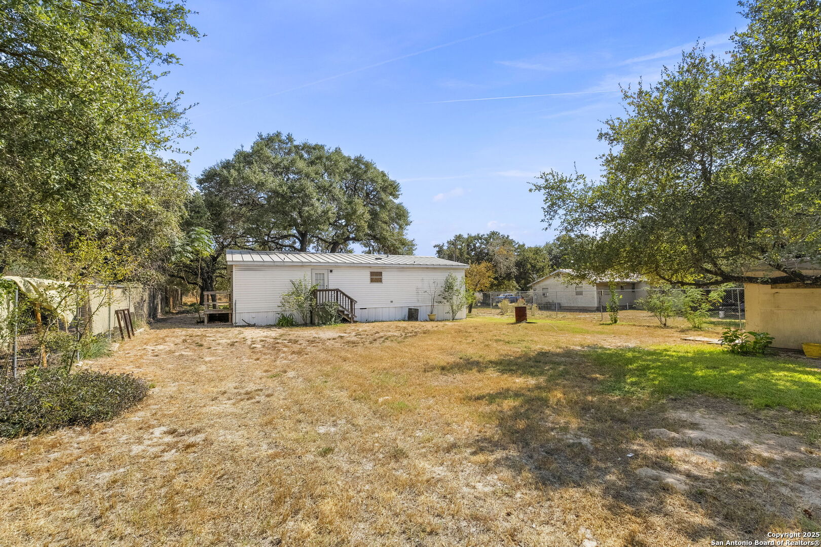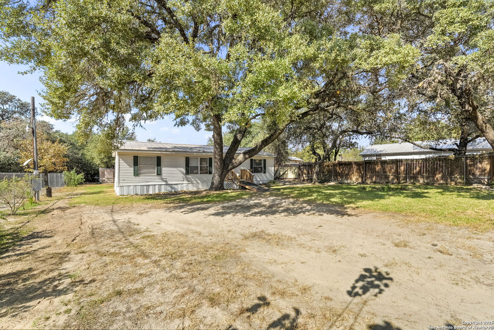 Welcome to this charming, move-in-ready double-wide mobile home, perfect for first-time homebuyers or investors! This 3-bedroom, 2-bath home offers a spacious and functional layout, complete with an indoor laundry room for added convenience. Situated on a 1/4-acre lot with mature trees and a sturdy chain-link fence, this property provides ample outdoor space, ideal for pets, gardening, or relaxing in the fresh country air. Located just off of Loop 1604, south of 281, you'll enjoy the peaceful feel of country living while being only a 30-minute drive to downtown San Antonio. Embrace a balanced lifestyle with easy access to city amenities and serene rural surroundings. This property is a fantastic opportunity-don't miss out! *HOME QUALIFIES FOR ZERO MONEY DOWN ** SELLER OFFERING TO COVER CLOSING COST AND WILL RETRO-FIT FOUNDATION TO MEET FHA REQUIREMENTS. ***IMPROVEMENTS INCLUDE: METAL ROOF, VINYL FLOORING THROUGHOUT/NO CARPET ** NO CITY TAXES OR HOA**