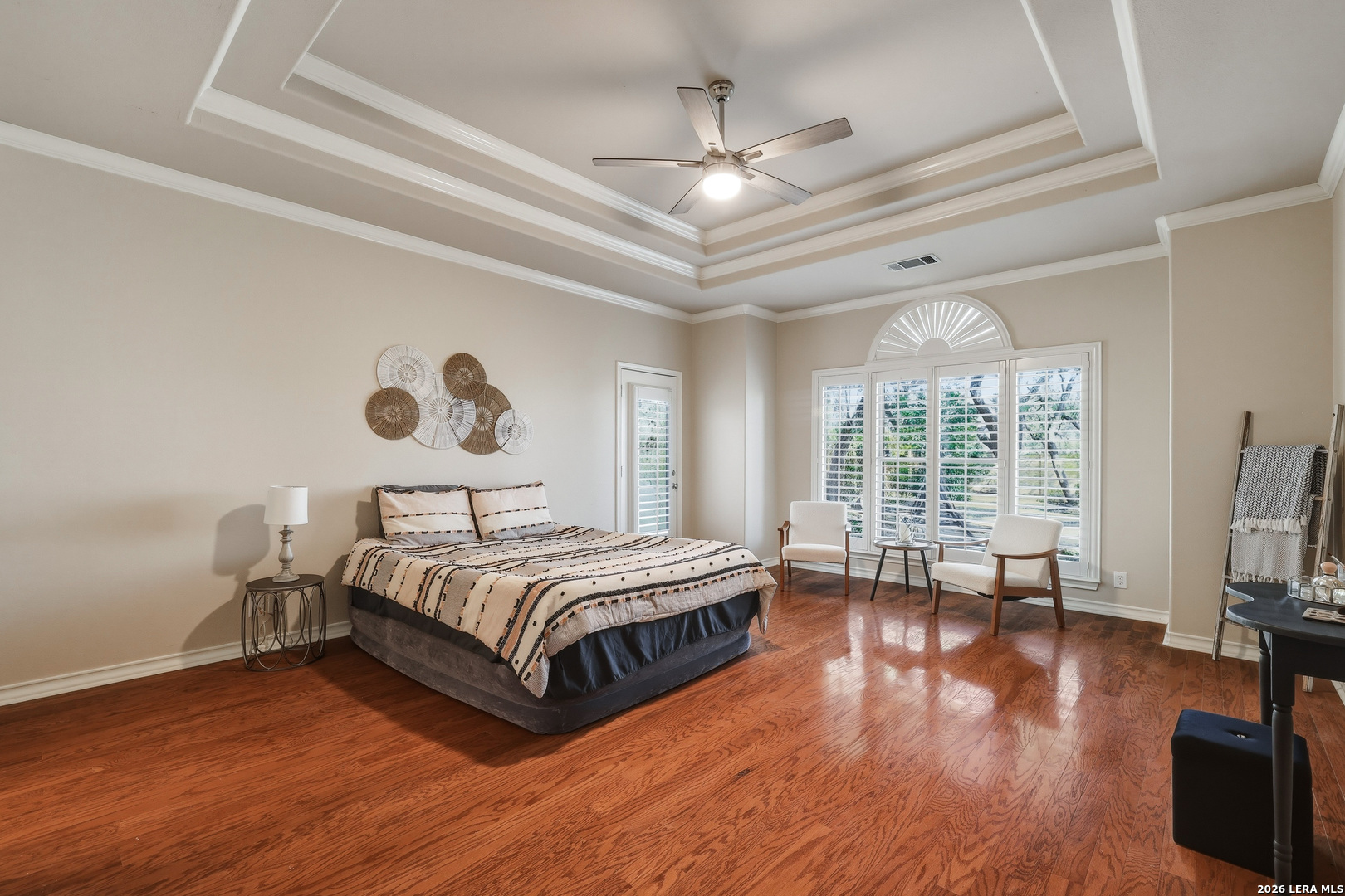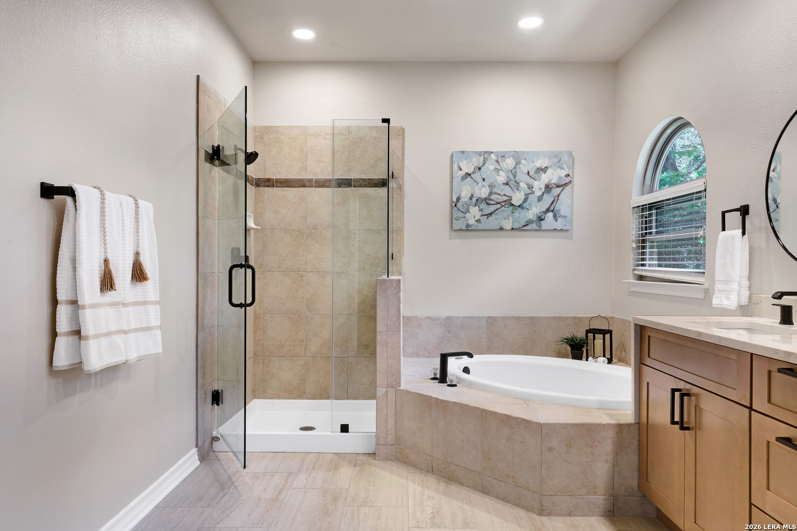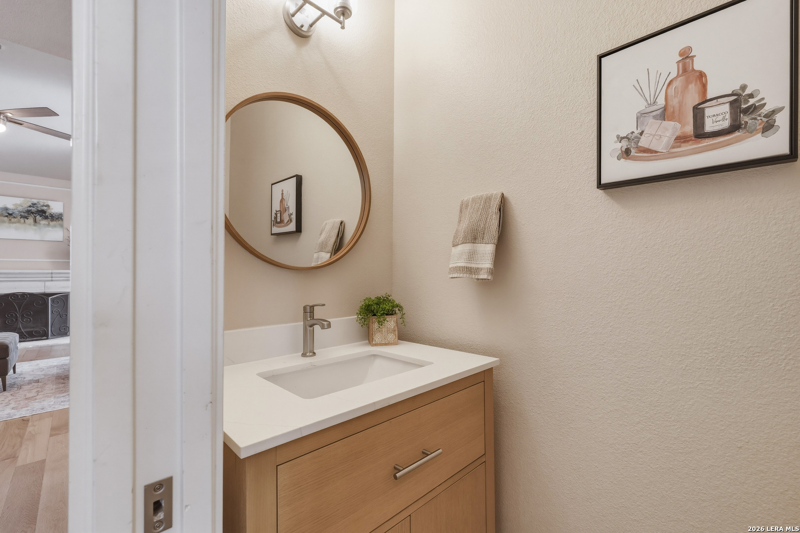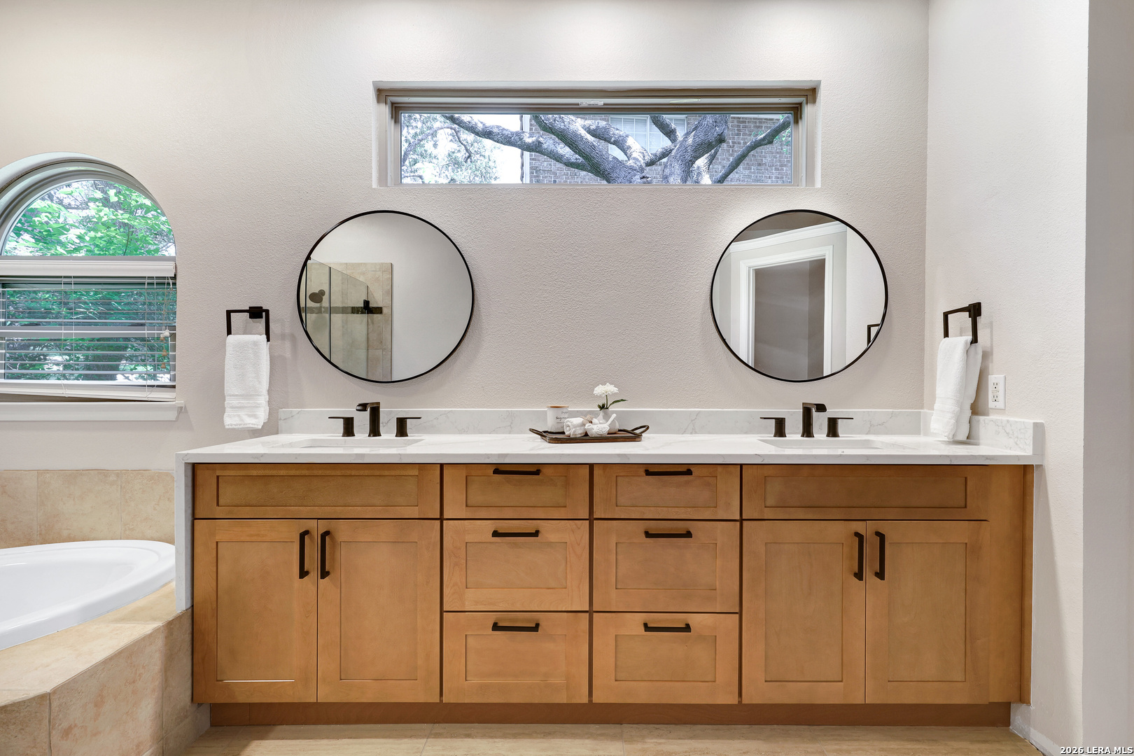 Exquisite Home in Sonterra - The Highlands with In-Ground Heated Swimming Pool! Discover luxury and security in this stunning 4-bedroom, 4.5-bathroom home. Step inside to find fresh interior paint and elegant new engineered wood flooring throughout the living room, dining room, study, kitchen, and half bath. The primary bedroom is conveniently located on the main floor, featuring an updated, spa-like bathroom complete with a new vanity, framed mirrors, lighting, frameless glass shower door, stylish tile, and modern faucets. The kitchen is a chef's dream with white cabinets, stainless steel appliances, and a spacious laundry room offering a built-in sink and ample pantry storage. Adjacent to the garage, a unique Texas basement awaits perfect for extra storage or a private office space, tailored to fit your needs. Upstairs, you'll find three generously sized bedrooms along with a Game Room featuring built-in shelving, and direct access to a full bathroom. Two of the bedrooms boast private en-suite bathrooms, adding comfort and convenience. Step outside into your private backyard oasis, complete with a heated Gary-built Swimming pool, a sports court, and a spacious deck ideal for grilling and relaxation. Nestled within Sonterra Neighborhood providing you access to join a Country Club. The Club Offers Golf, Swimming Pool, Kids Club, Tennis, Social Activities and much more! This gated community ensures peace of mind with 24-hour guard patrol and a secure entry system. This home is the perfect blend of elegance, functionality, and security. Don't miss your chance to make it yours!