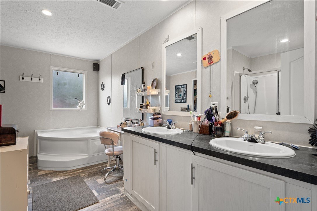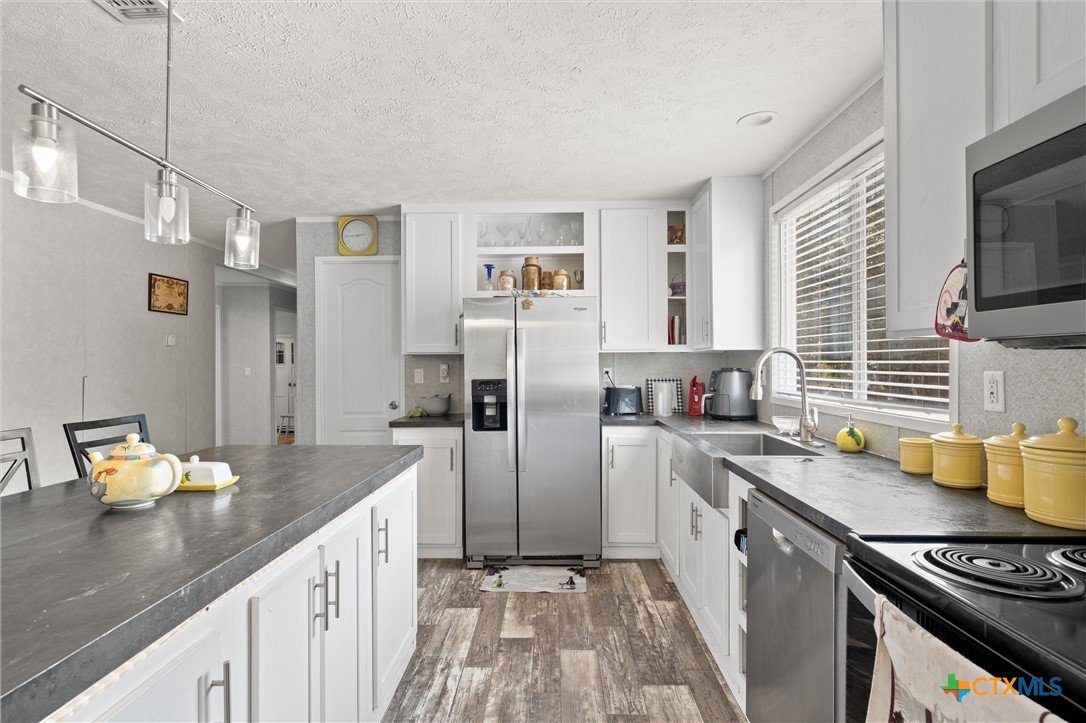 If you’ve been looking for space, freedom, and peace of mind, this 5-acre property in Bartlett with a charming mobile home is just the spot. With no HOA restrictions and a low tax rate, you can live the way you want—whether that means adding a workshop, raising animals, starting a garden, or just enjoying wide-open Texas skies away from the hustle and bustle. The mobile home offers a practical open floor plan with durable luxury vinyl plank flooring and plenty of natural light. The spacious kitchen includes an island with bar seating, bright white cabinetry with pull-out drawers, and a pantry for storage. The primary suite features an ensuite bath with dual sinks, soaking tub, separate shower, and a walk-in closet. Two more bedrooms share a full bath, and a flex space gives you room for an office or hobby space. Outside, there’s room to spread out and make the property your own—whether you’re looking for a simple homestead or a project to build on. Plus, it’s walking distance to Isbell Ranch Airport. This property is the perfect blend of practicality, freedom, and affordability in a country setting.