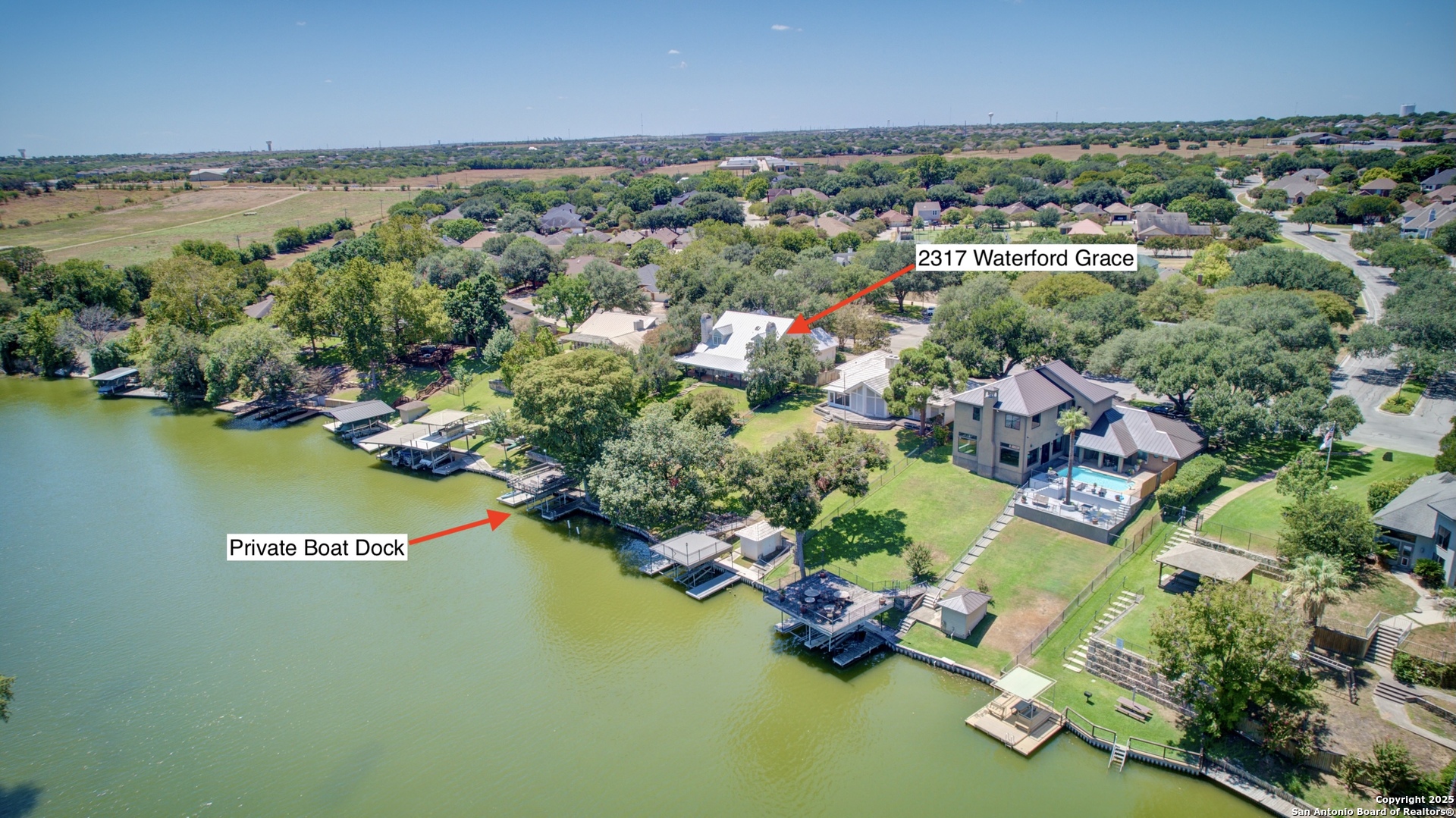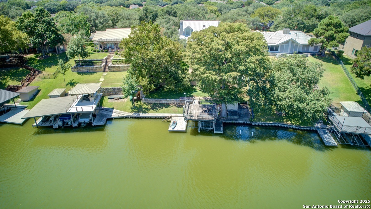 WATERFRONT***NEVER FLOODED. Rare Southbank dream property! Private dock and lift with access to Lake Dunlap. 4 bedrooms and 4 1/2 bath allows for guest privacy and/or family retreat zones! 3003 SQFT of multi-use flexible living. Beautifully kept property that has never been a rental and is well maintained. 3 zone HVAC for downstairs, primary and upstairs(upstairs 2021) areas. Double pane windows, outside lighting, metal roof (2013). Dock and bulkhead work done 2017 with the left lift widened for pontoon boat. Additional paved and fenced side parking for RV or trailers. Excellent HOA and neighborhood amenities with generational living.
