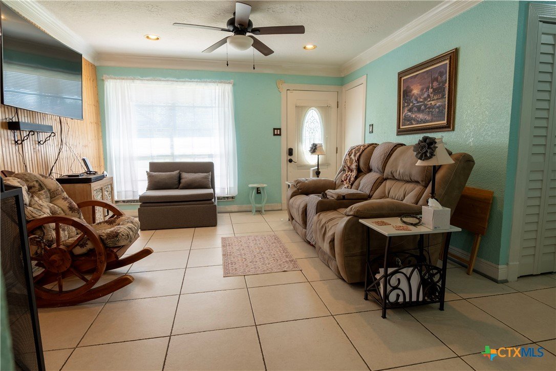 Single story 3 bedroom, 2 bathroom home with functional layout and natural light throughout the main living areas. The living room connects to the dining area and kitchen creating an open common space suitable for everyday living. The kitchen offers cabinet storage, XL farmhouse sink, countertop workspace, and access to the main living area. SALE INCLUDES whole home generator, refrigerator, upright freezer, the tv mounted on the living room wall and the fireplace accessories The exterior includes a driveway for off street parking and a backyard with space for outdoor use, gardening, or recreation. The property sits on a residential lot within an established neighborhood in Highlands with access to nearby roadways connecting to Baytown, Channelview, and Houston. Buyer to verify all measurements, schools, and property details.