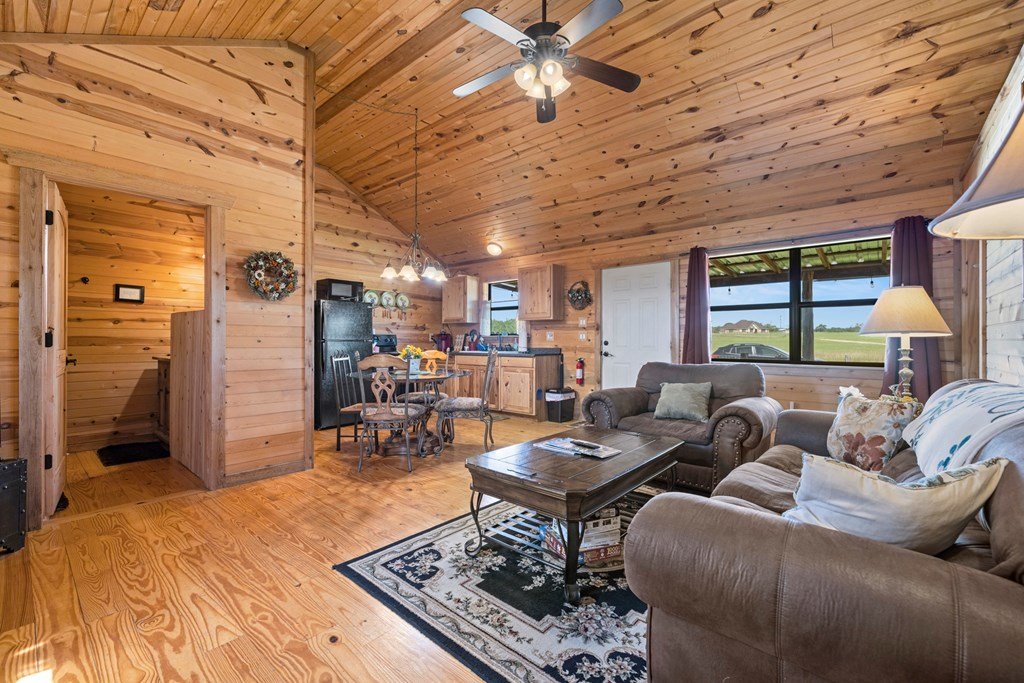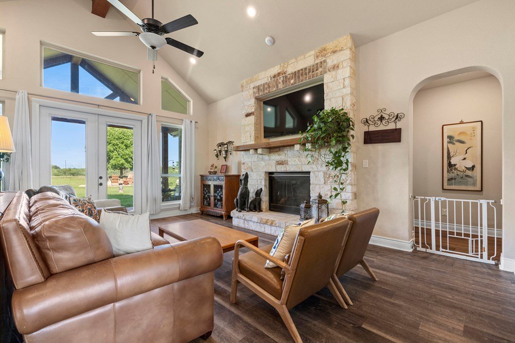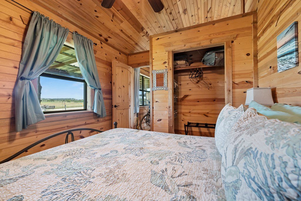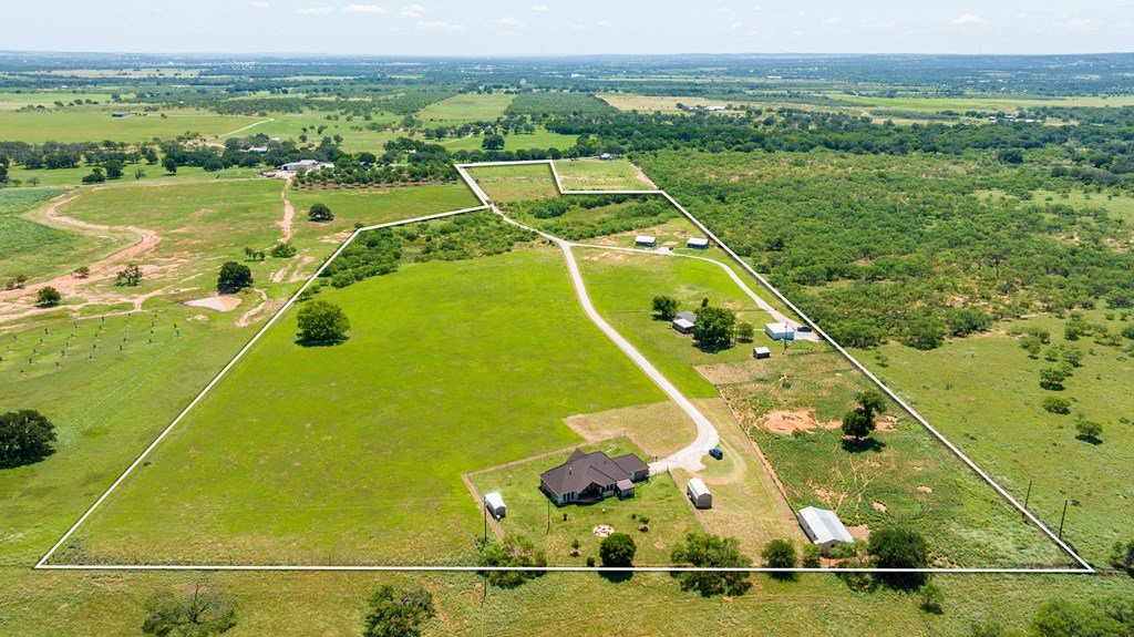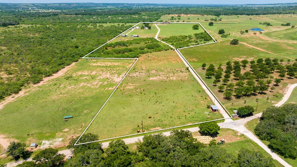 Beautiful income-producing 30 acre property with long-range views just 10.6 miles from downtown Fredericksburg and 17 miles to Kerrville. The main home, built in 2020, features 2,437 sq ft of living space with 3 bedrooms, 2.5 bathrooms, with granite countertops and modern finishes throughout. Two 680 sq ft guest cabins (2 bed / 1 bath each) offer excellent potential for rental income or multi-generational use. A 1,944 sq ft mobile home with 3 bed/3 bath and 500 sq ft screened porch adds even more flexibility. Additional improvements include a 576 sq ft barn, 140 sq ft workshop, and a 900 sq ft horse barn with stalls and feed room. The property is cross-fenced and currently used for cattle and hay production under an ag exemption. Great soils, long-range views, and functional layout make this a great opportunity for residential, rental, vineyard or small-scale agricultural use with one well at 100gpm and the 2nd at 200gpm. One well is grandfathered as an irrigation well which can be used as an orchard, vineyard or to use as a centerpivot on the improved grasses.