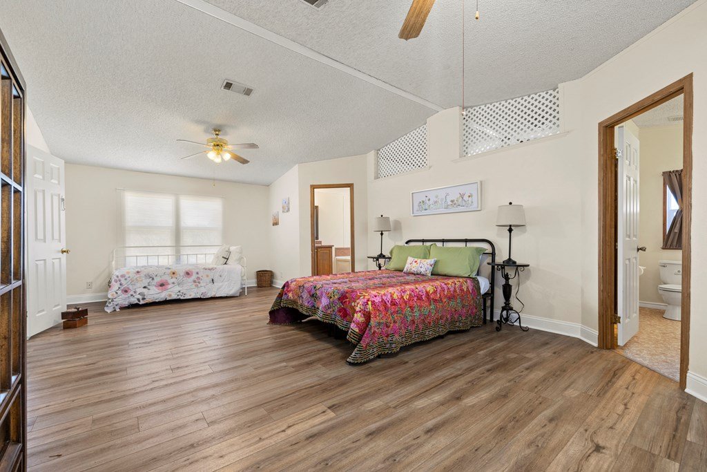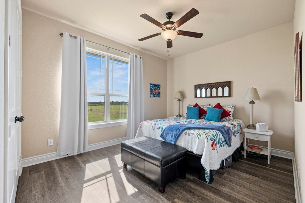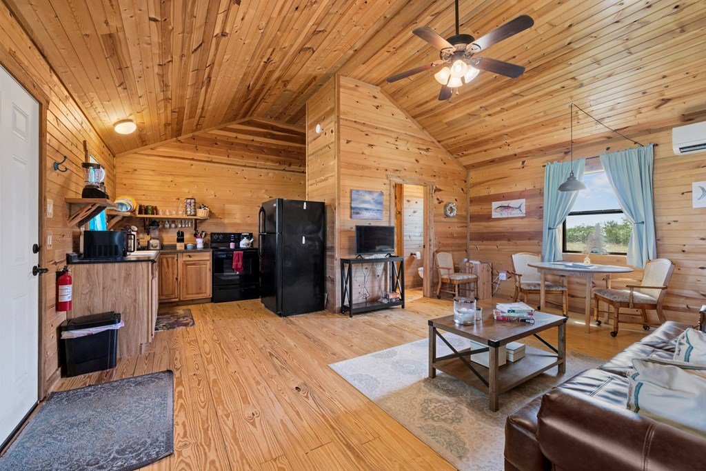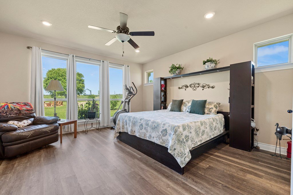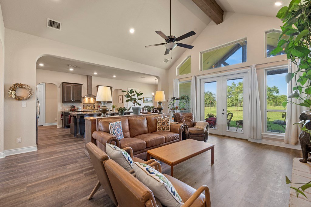 Beautiful income-producing 30 acre property with long-range views just 10.6 miles from downtown Fredericksburg and 17 miles to Kerrville. The main home, built in 2020, features 2,437 sq ft of living space with 3 bedrooms, 2.5 bathrooms, with granite countertops and modern finishes throughout. Two 680 sq ft guest cabins (2 bed / 1 bath each) offer excellent potential for rental income or multi-generational use. A 1,944 sq ft mobile home with 3 bed/3 bath and 500 sq ft screened porch adds even more flexibility. Additional improvements include a 576 sq ft barn, 140 sq ft workshop, and a 900 sq ft horse barn with stalls and feed room. The property is cross-fenced and currently used for cattle and hay production under an ag exemption. Great soils, long-range views, and functional layout make this a great opportunity for residential, rental, vineyard or small-scale agricultural use with one well at 100gpm and the 2nd at 200gpm. One well is grandfathered as an irrigation well which can be used as an orchard, vineyard or to use as a centerpivot on the improved grasses.