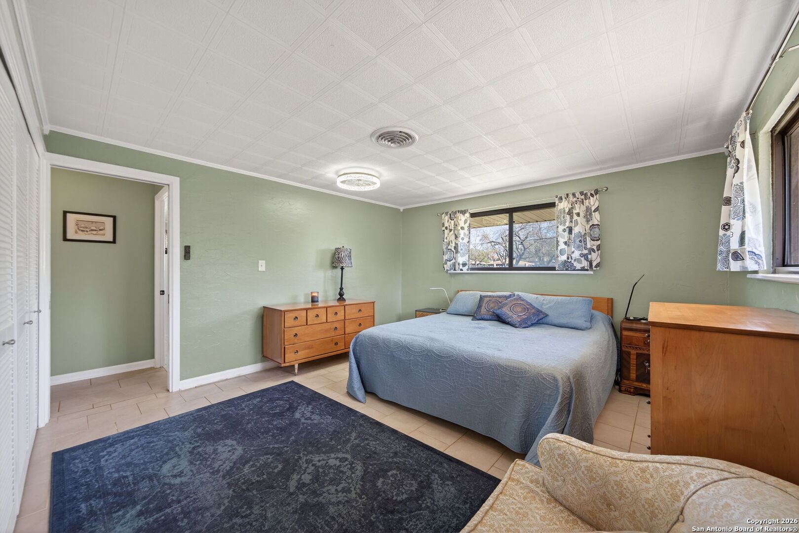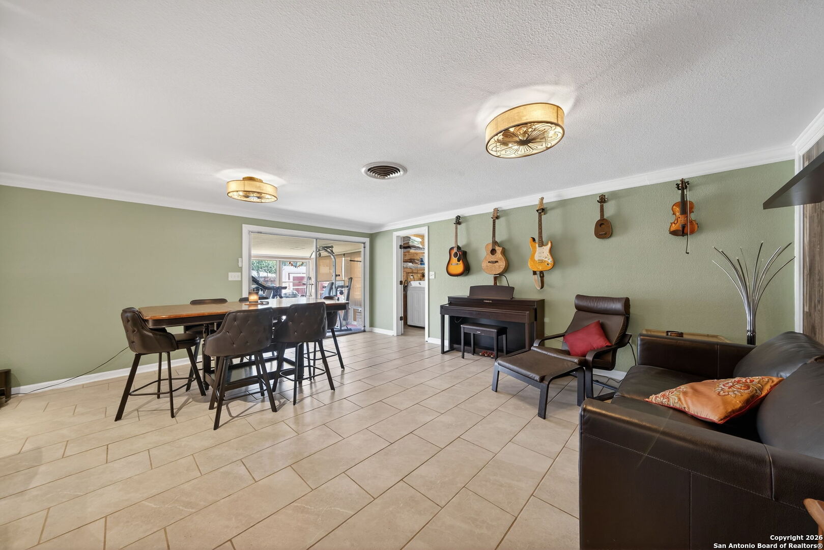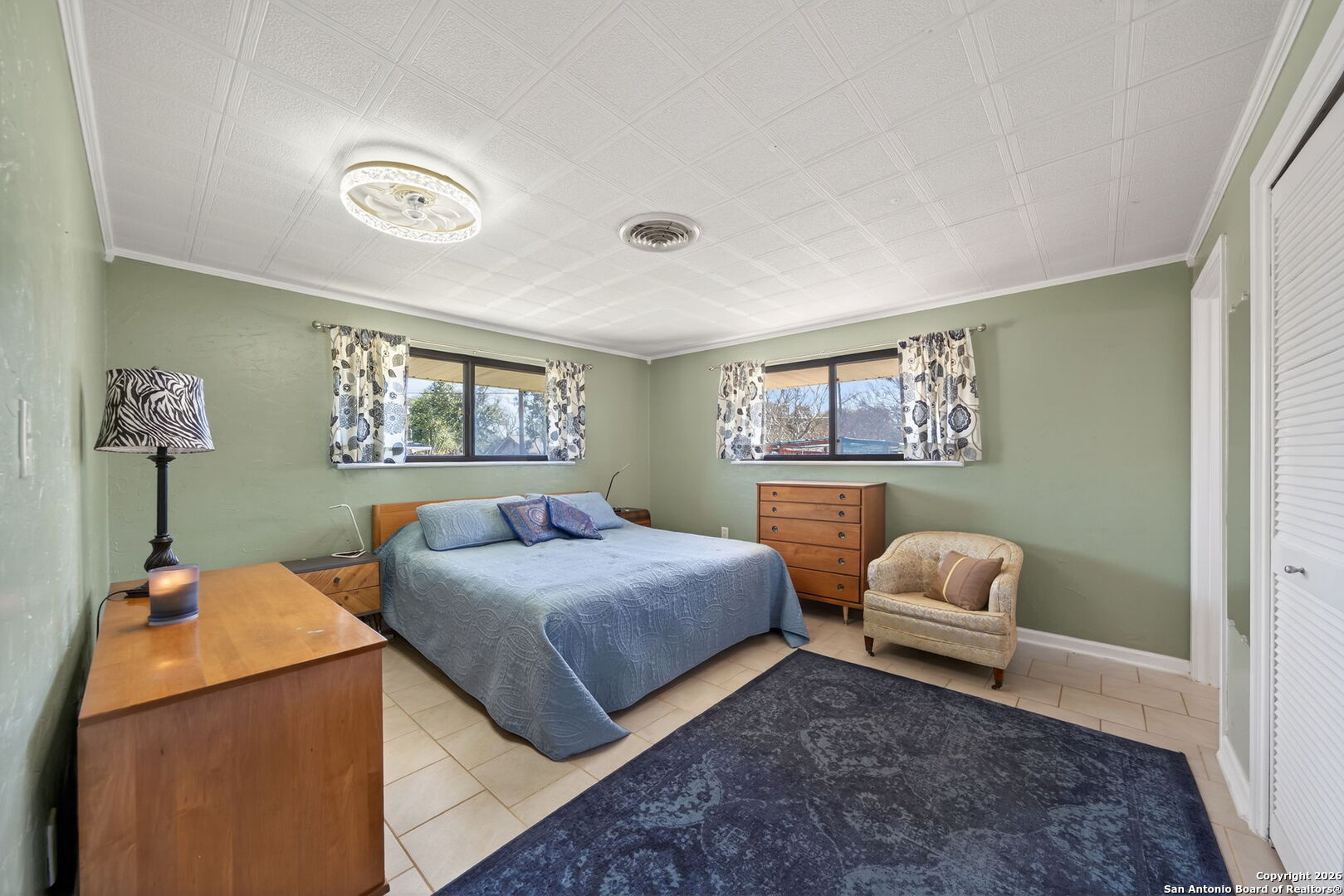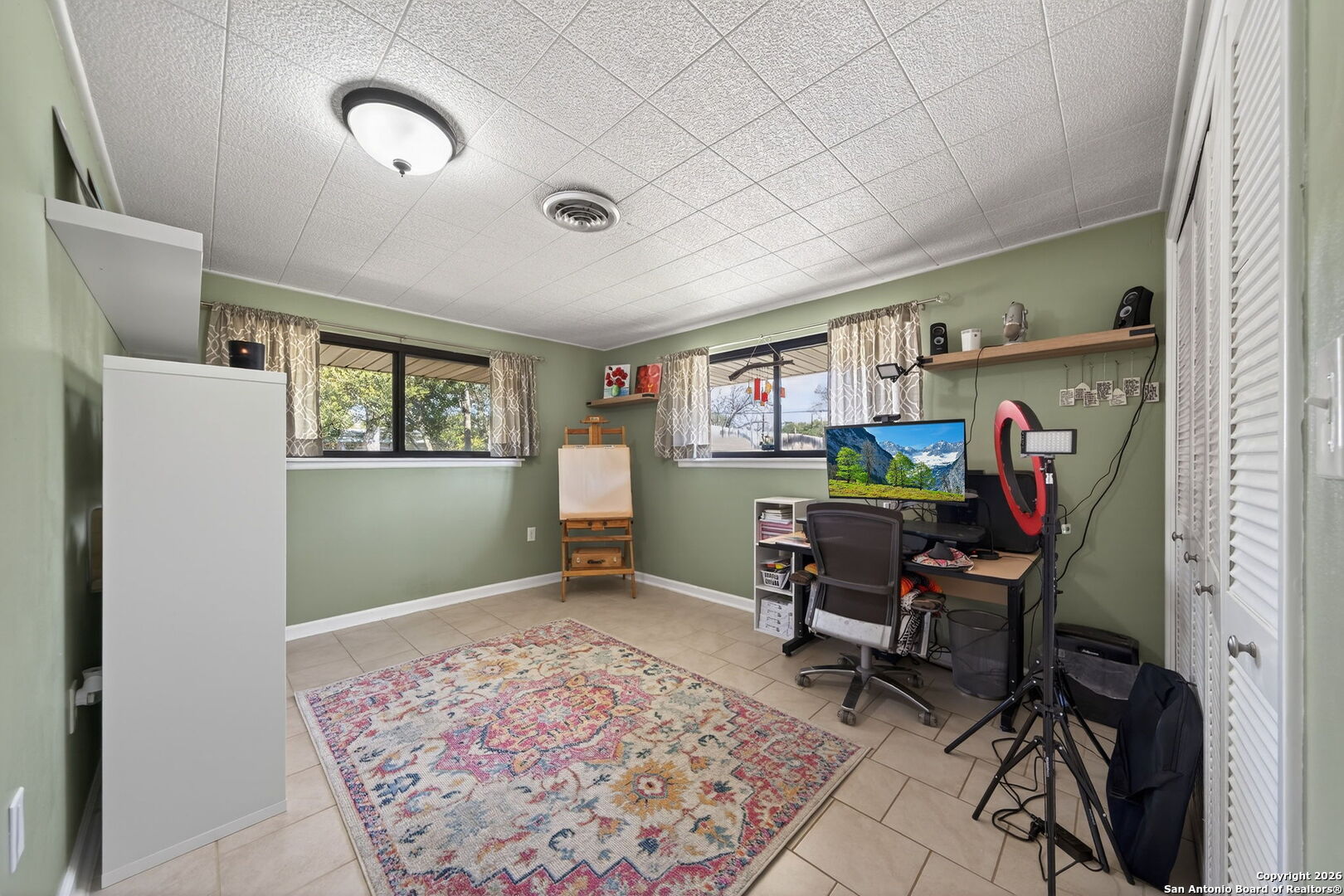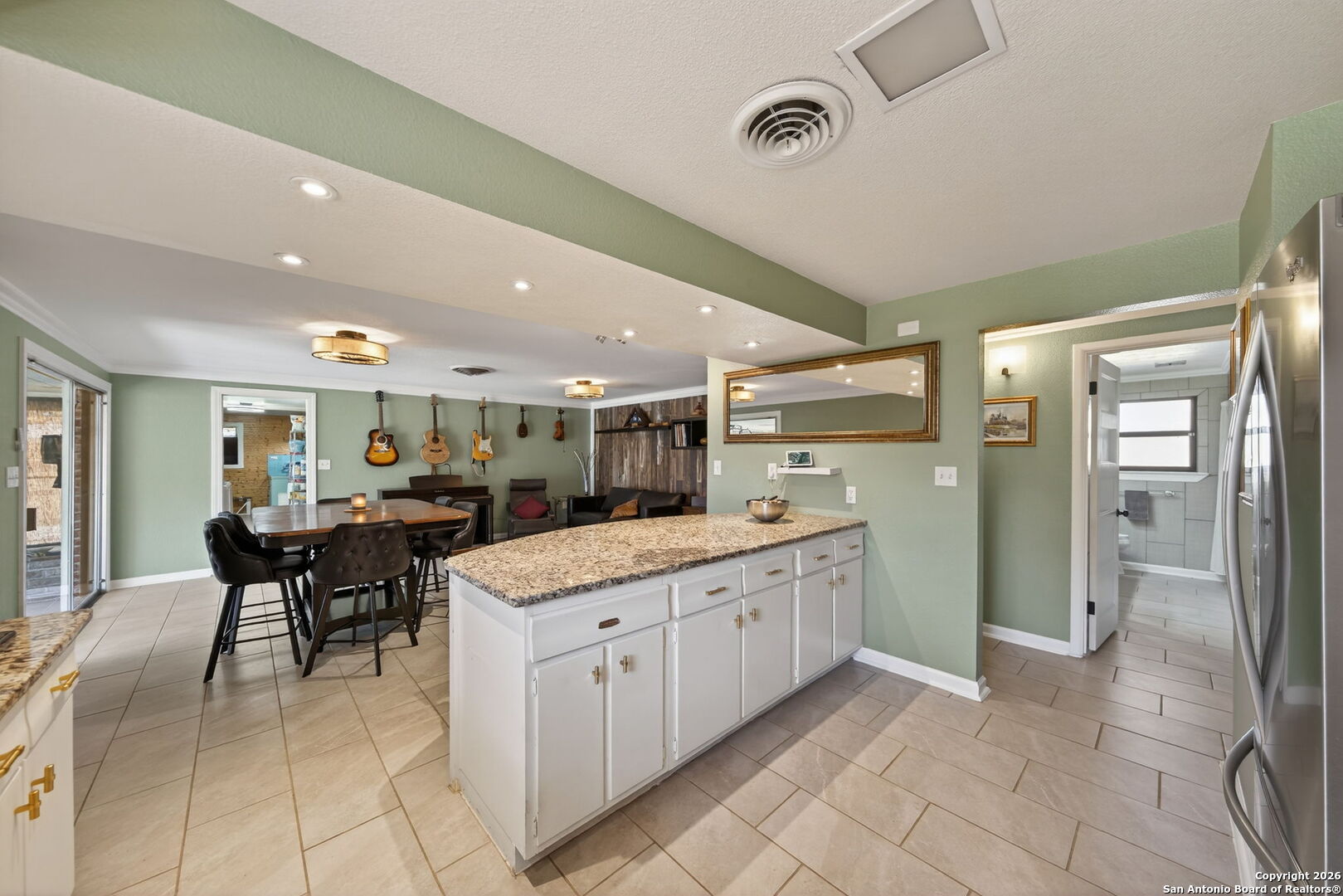 Welcome to this truly stylish single-story home located in one of San Antonio's most cherished communities, Windcrest. Situated on an oversized corner lot of +/- 0.377 acres, this property is surrounded by mature trees and lush landscaping, offering exceptional space, privacy, and a distinctive architectural style that truly sets it apart. Upon entry, you are welcomed by a bright, open floor plan with a front living area highlighted by a striking brick feature wall that creates a warm and inviting atmosphere. The thoughtfully designed kitchen features granite countertops, stainless steel appliances, a breakfast bar, and generous cabinet and counter space, making it ideal for both everyday living and entertaining. The primary bedroom offers a peaceful view of the backyard and includes a private, updated ensuite with a single vanity and walk-in shower. Two generously sized secondary bedrooms are complemented by an updated secondary bathroom with a tub & shower combination. A large utility room with a sink provides outstanding storage and added functionality. The enclosed sunroom currently serves as a home gym but easily functions as an additional living area, game room, or flexible space to suit your needs. Step outside to the expansive backyard where you will find a large patio, mature shade trees, a vegetable garden, and Tuff Shed, creating the perfect setting for outdoor relaxation or entertaining. This home offers a rare combination of lot size, character, and versatility within an established community. Enjoy nearby parks, walking trails, a top-rated golf course, and the quiet, welcoming atmosphere that makes Windcrest so special. Schedule your private showing today and experience everything this exceptional property has to offer.
